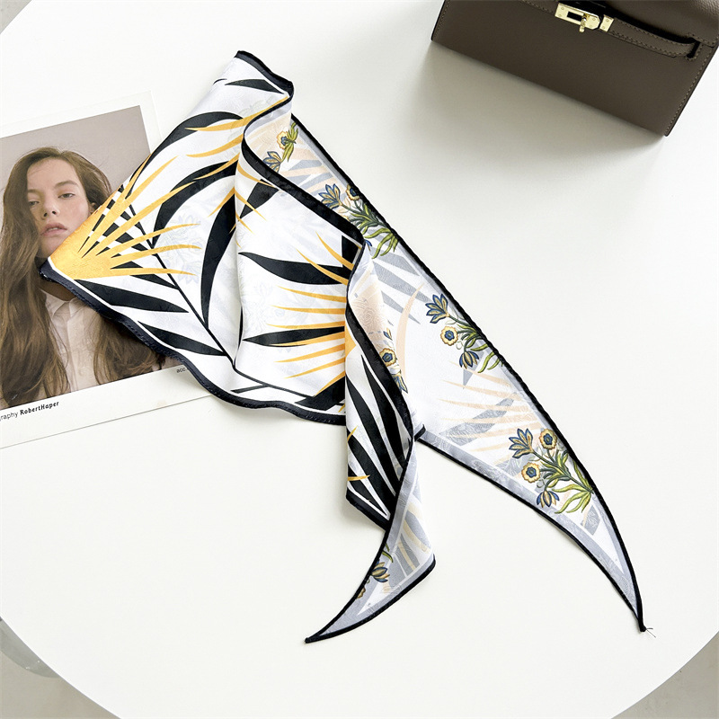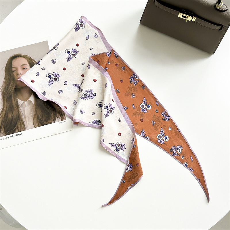 봄과 여름 목가적 스타일 꽃 다이아몬드 스카프 다크 패턴 자카드 실크 스카프 여성의 목 보호 기질 작은 스카프 타이 백