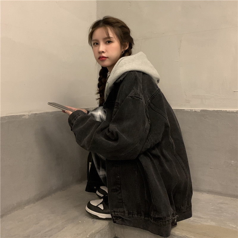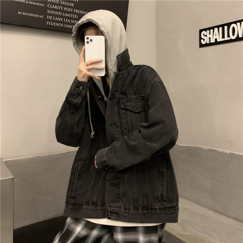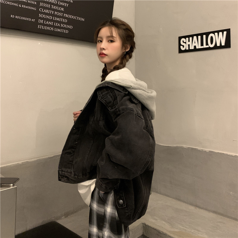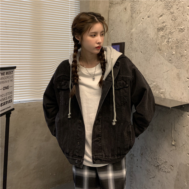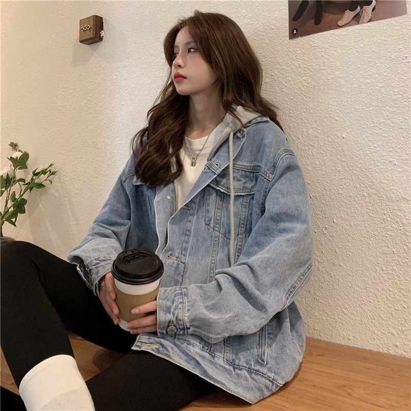 실제 촬영된 여성용 후드 데님 재킷, 2026년 봄/가을 신상, 밝은 색상, 한국 스타일, 루즈핏 캐주얼 재킷, 트렌디한 상의스토어 가기