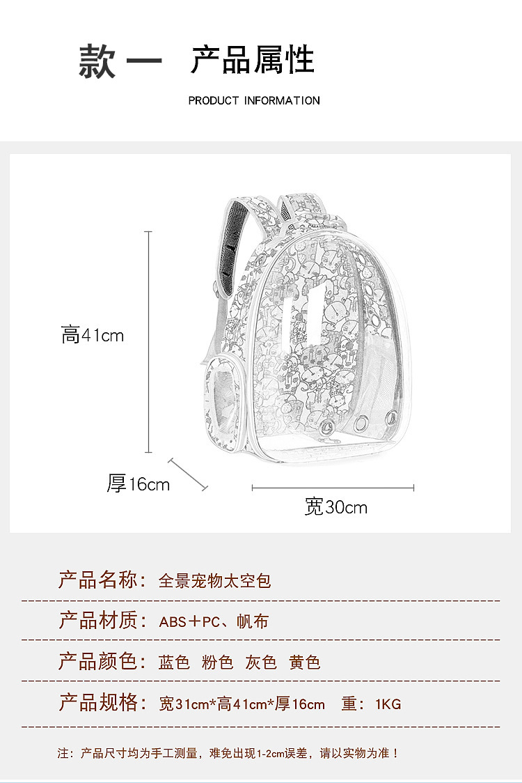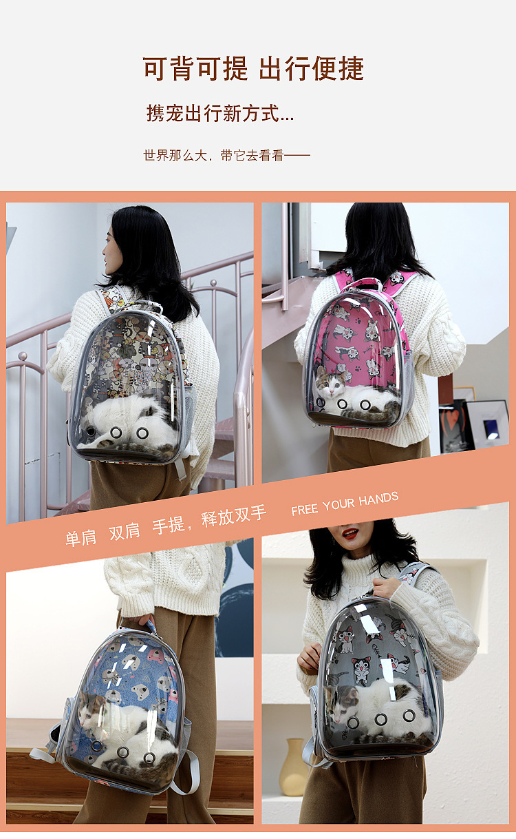고양이 가방 투명한 가방 애완 동물 가방 더블 어깨 고양이 가방 투명한 휴대용 공간 캡슐 통기성 개 휴대용 어깨