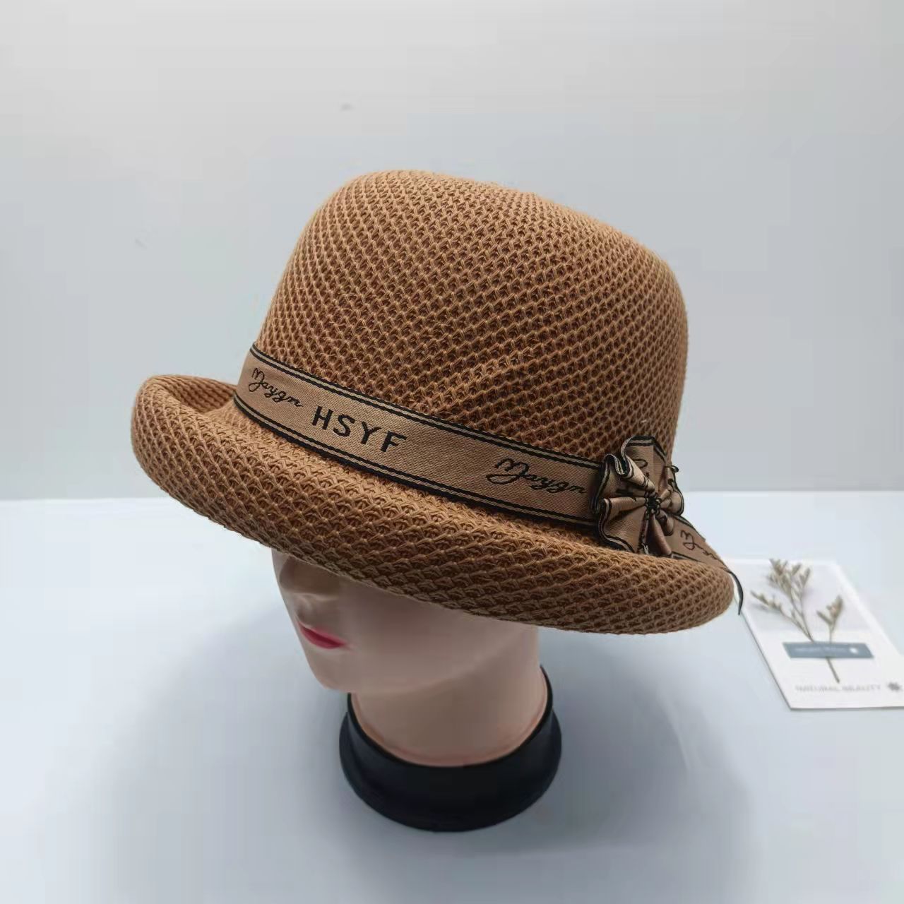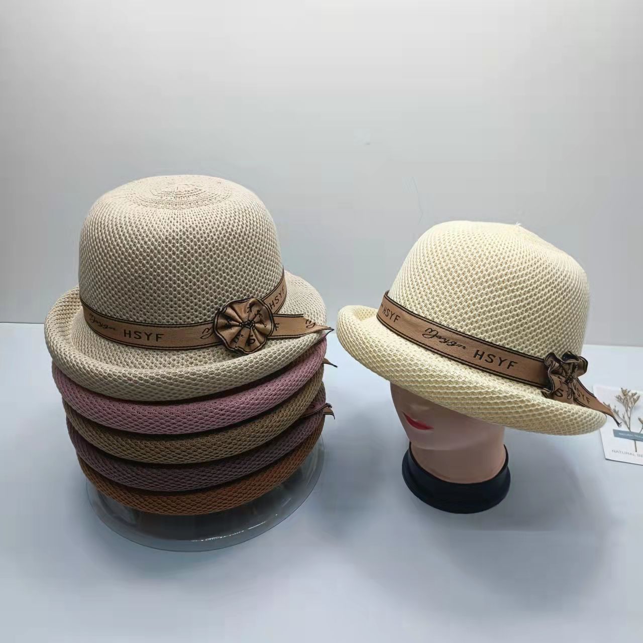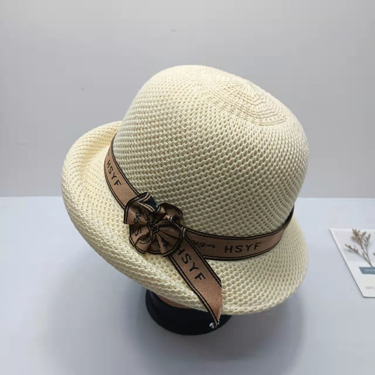봄과 여름 새로운 단색 니트 컬링 작은 탑 모자 세련된 모든 경기 여행 차양 자외선 차단제 어부 모자 통기성 분지 모자스토어 가기