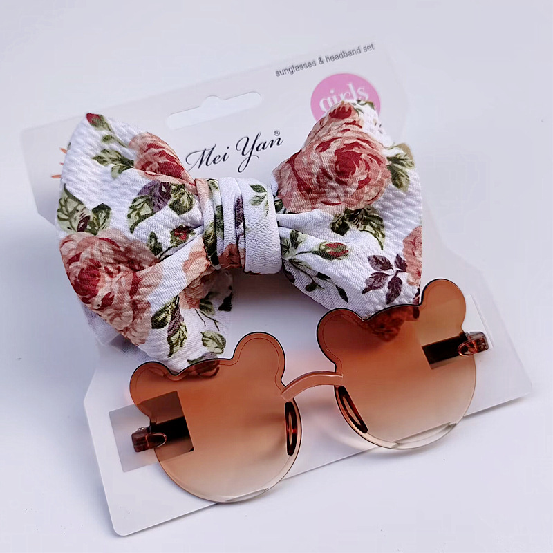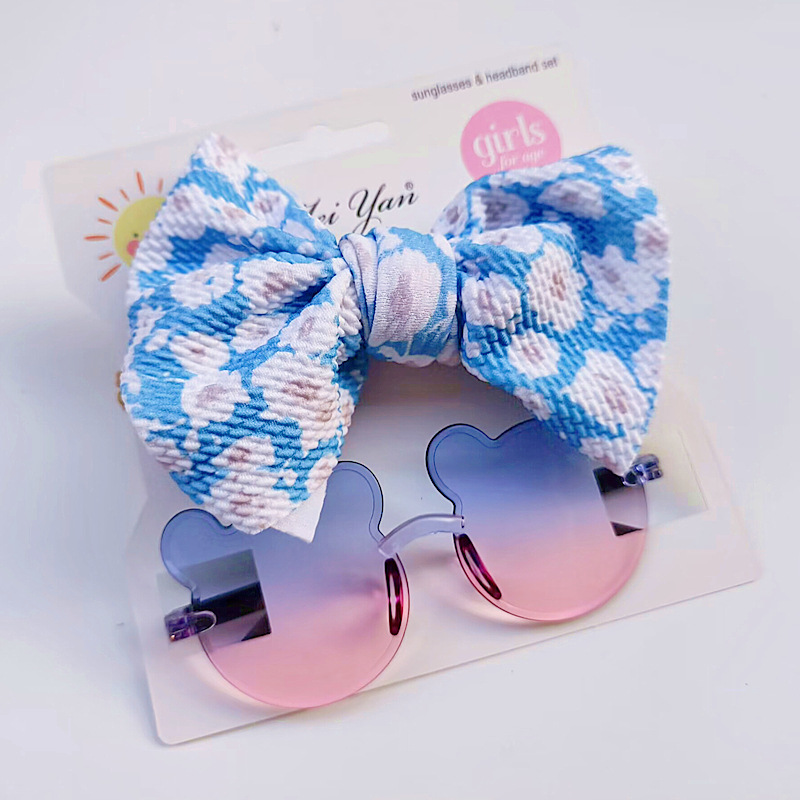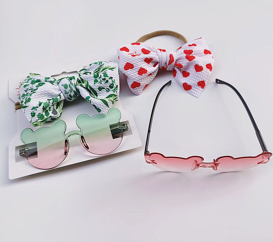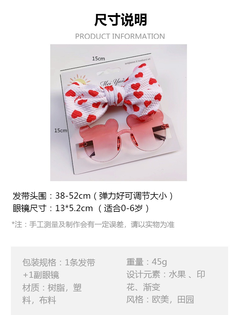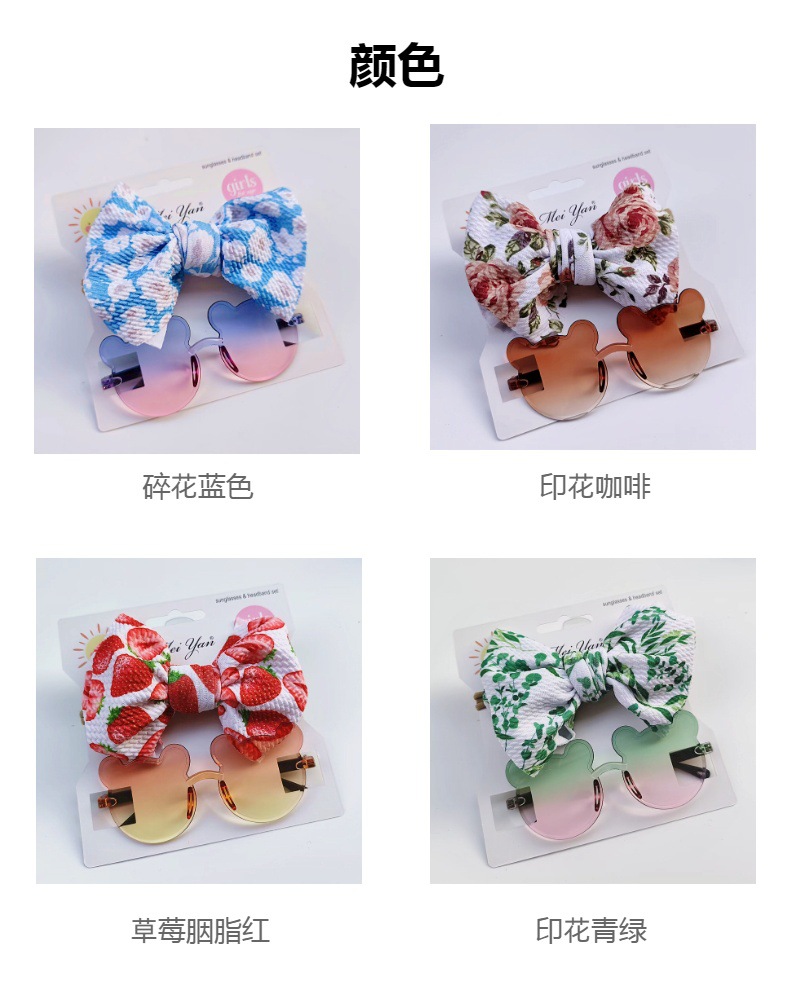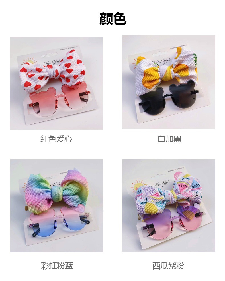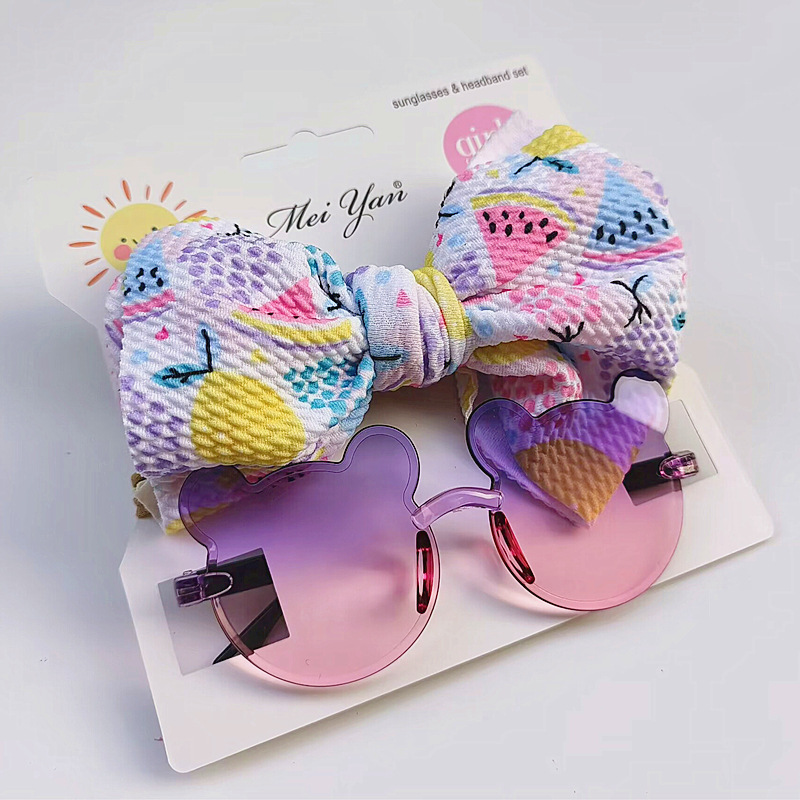 어린이 선글라스 과일 프린트 헤어 밴드 세트 어린이 선글라스 그라데이션 무테 만화 곰 프레임 안경
