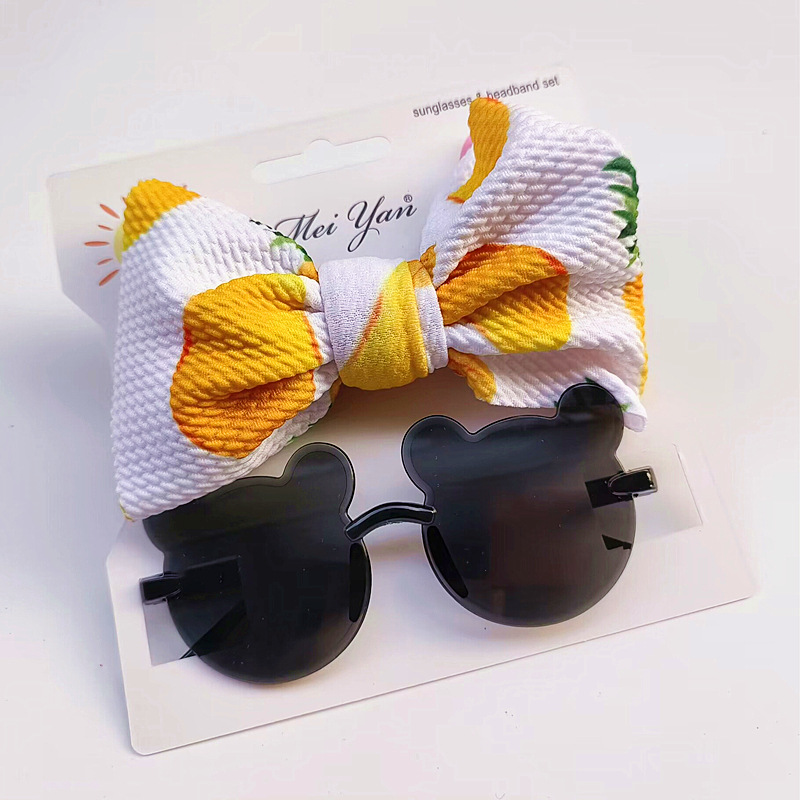 어린이 선글라스 과일 프린트 헤어 밴드 세트 어린이 선글라스 그라데이션 무테 만화 곰 프레임 안경스토어 가기