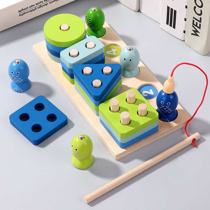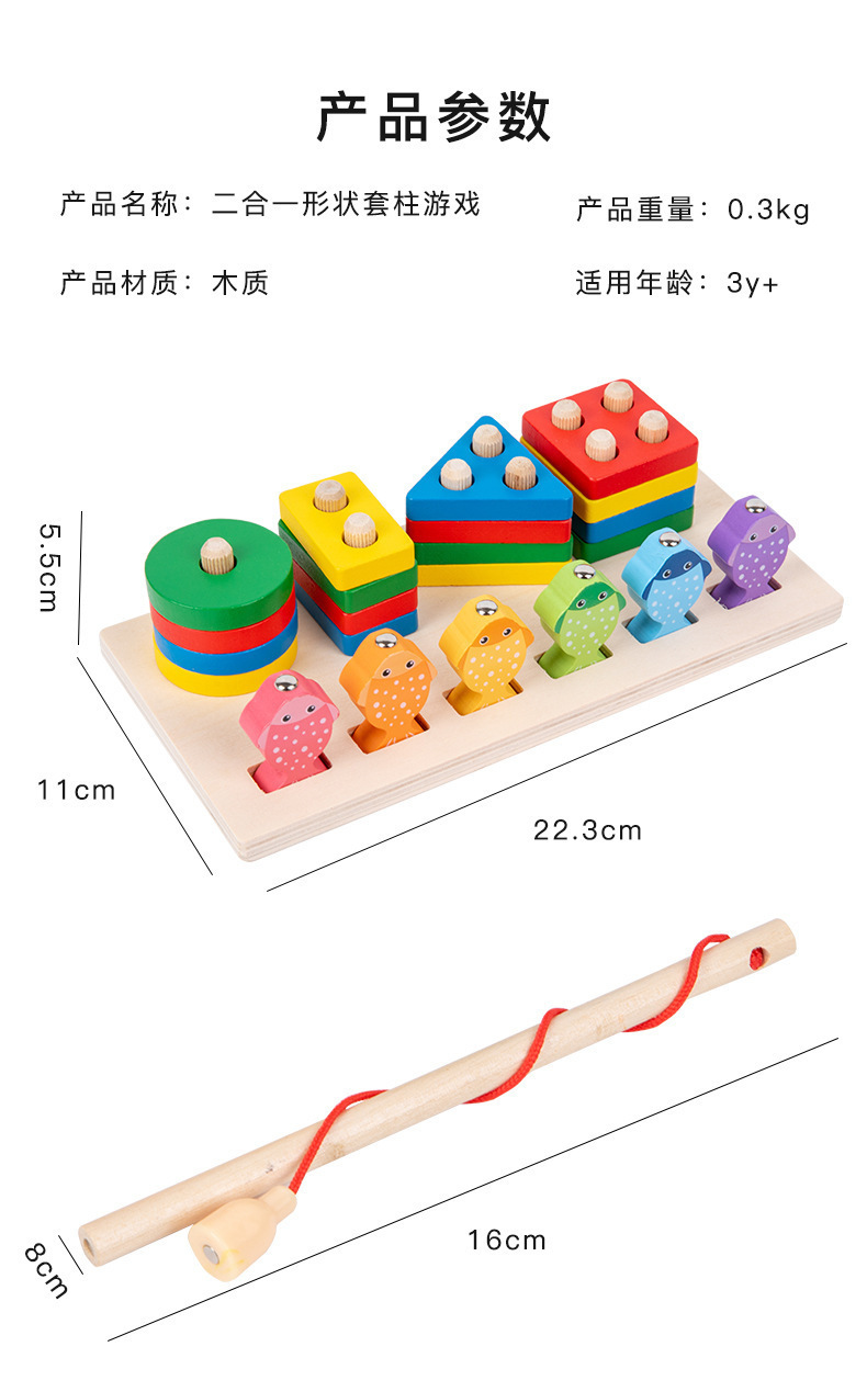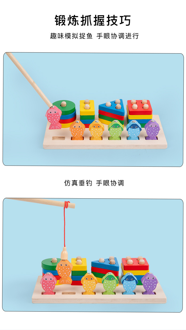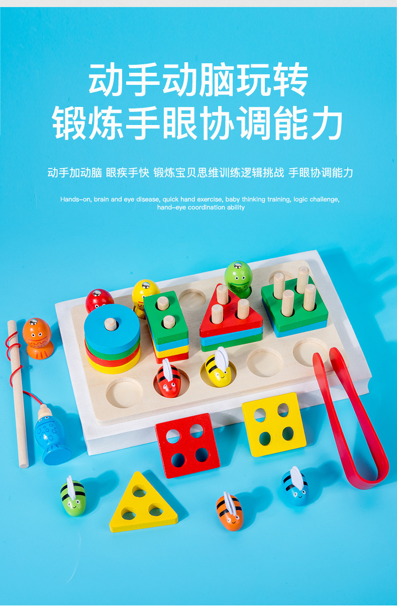 원목 장난감 모양 매칭 투인원 다기능 빌딩 블록 세트 란 자기 낚시 곤충 잡기 부모와 자식 조기 교육 장난감스토어 가기
