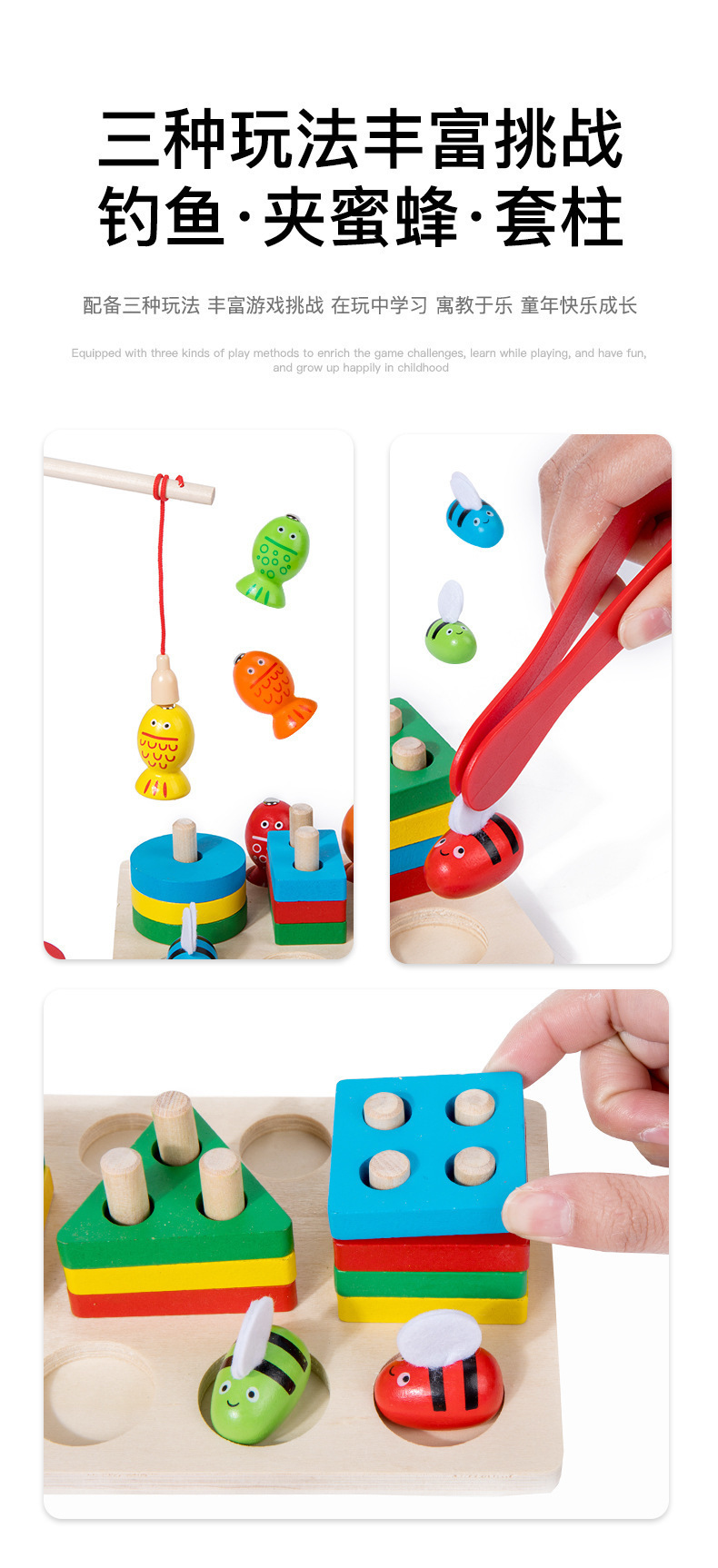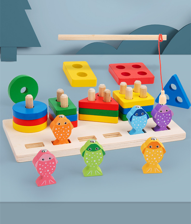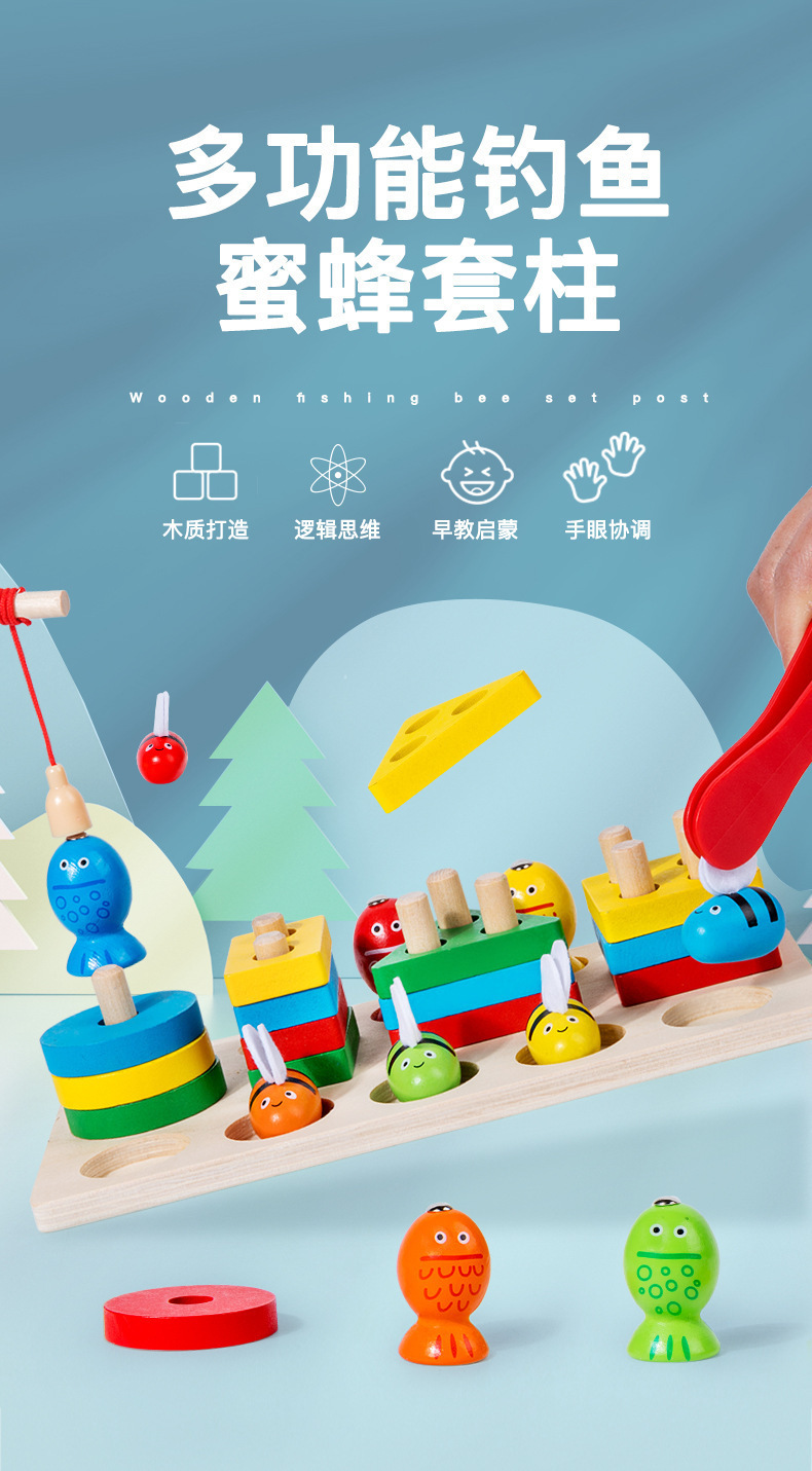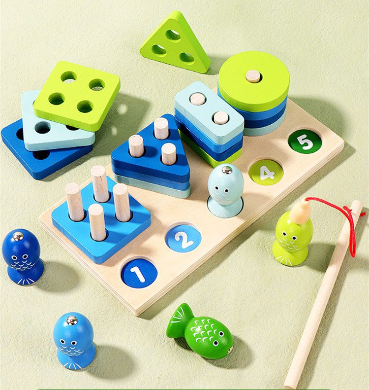 원목 장난감 모양 매칭 투인원 다기능 빌딩 블록 세트 란 자기 낚시 곤충 잡기 부모와 자식 조기 교육 장난감스토어 가기