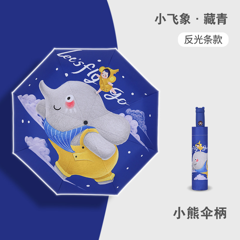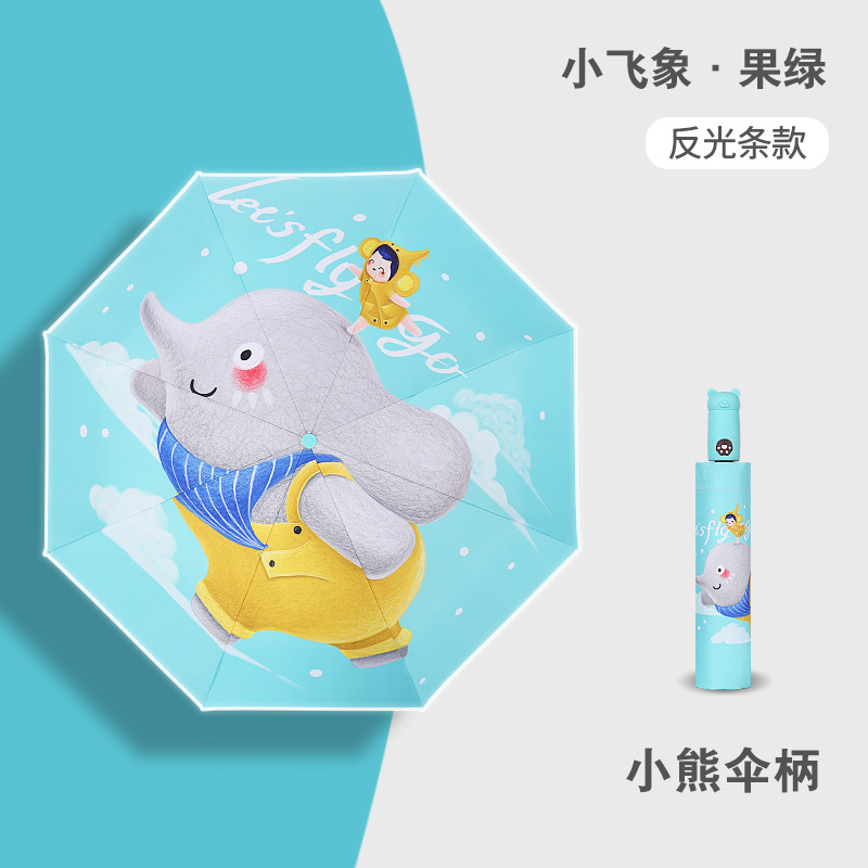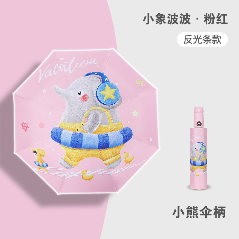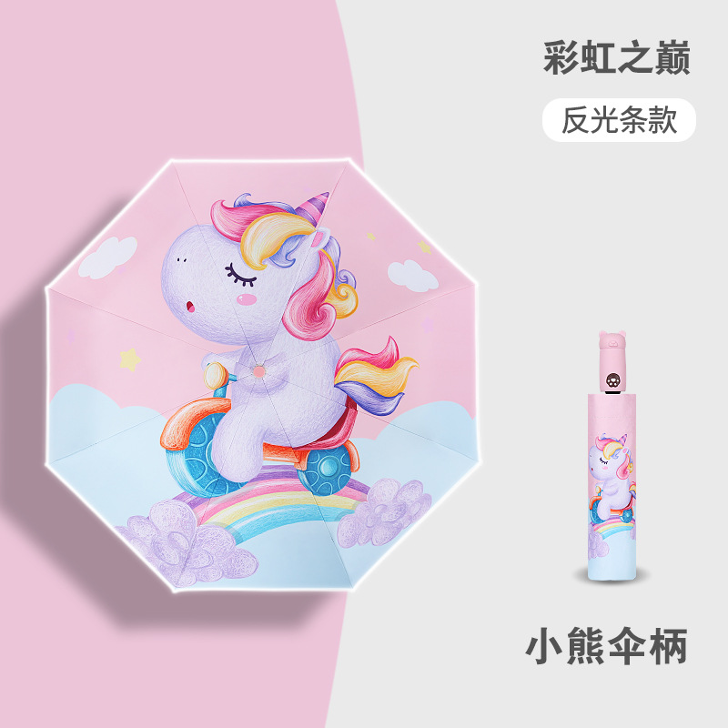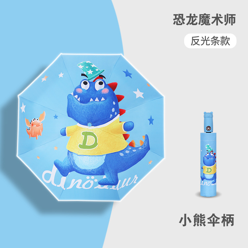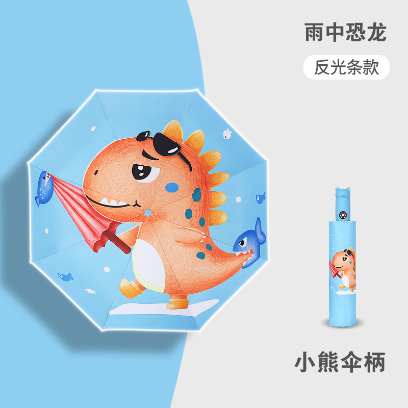 안티 리바운드 3 배 만화 자동 어린이 우산 블랙 고무 차양 안전 반사 맑은 우산 초등 및 중등 학생 휴대용