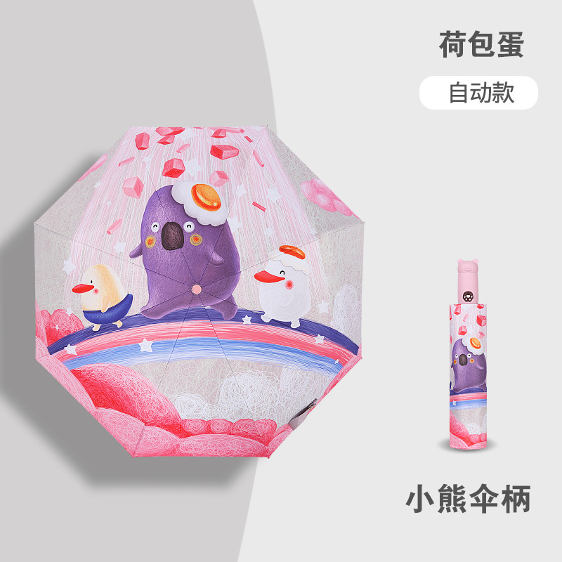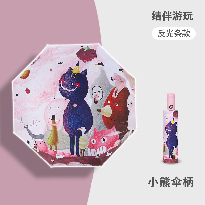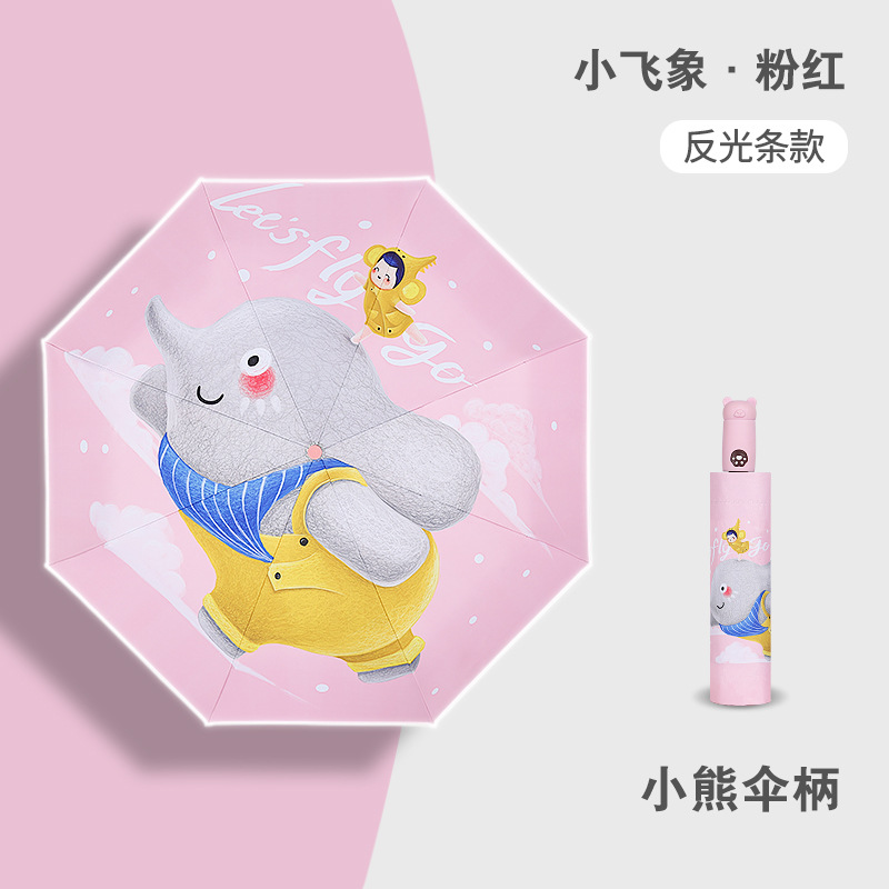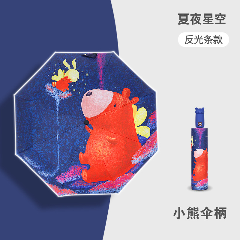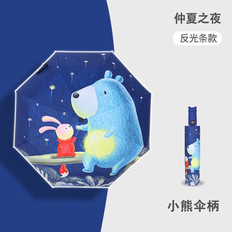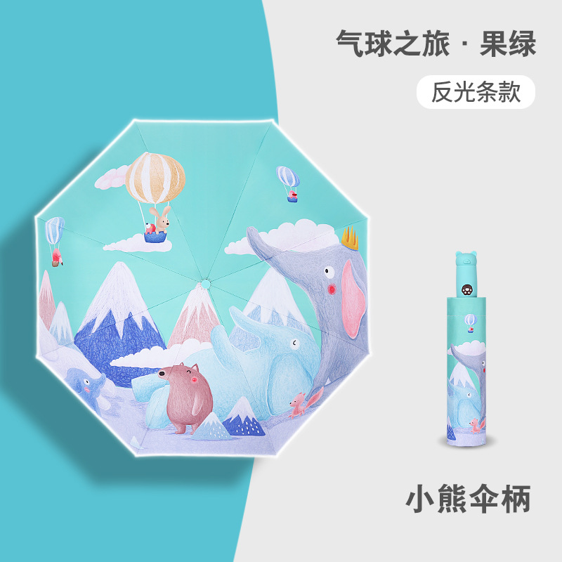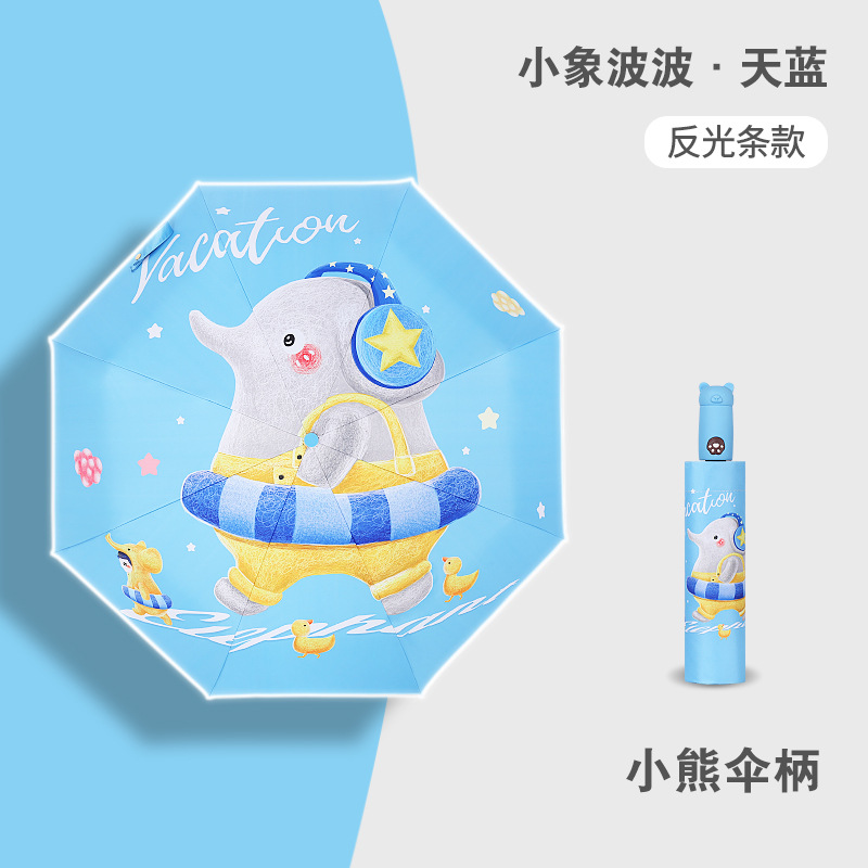 안티 리바운드 3 배 만화 자동 어린이 우산 블랙 고무 차양 안전 반사 맑은 우산 초등 및 중등 학생 휴대용