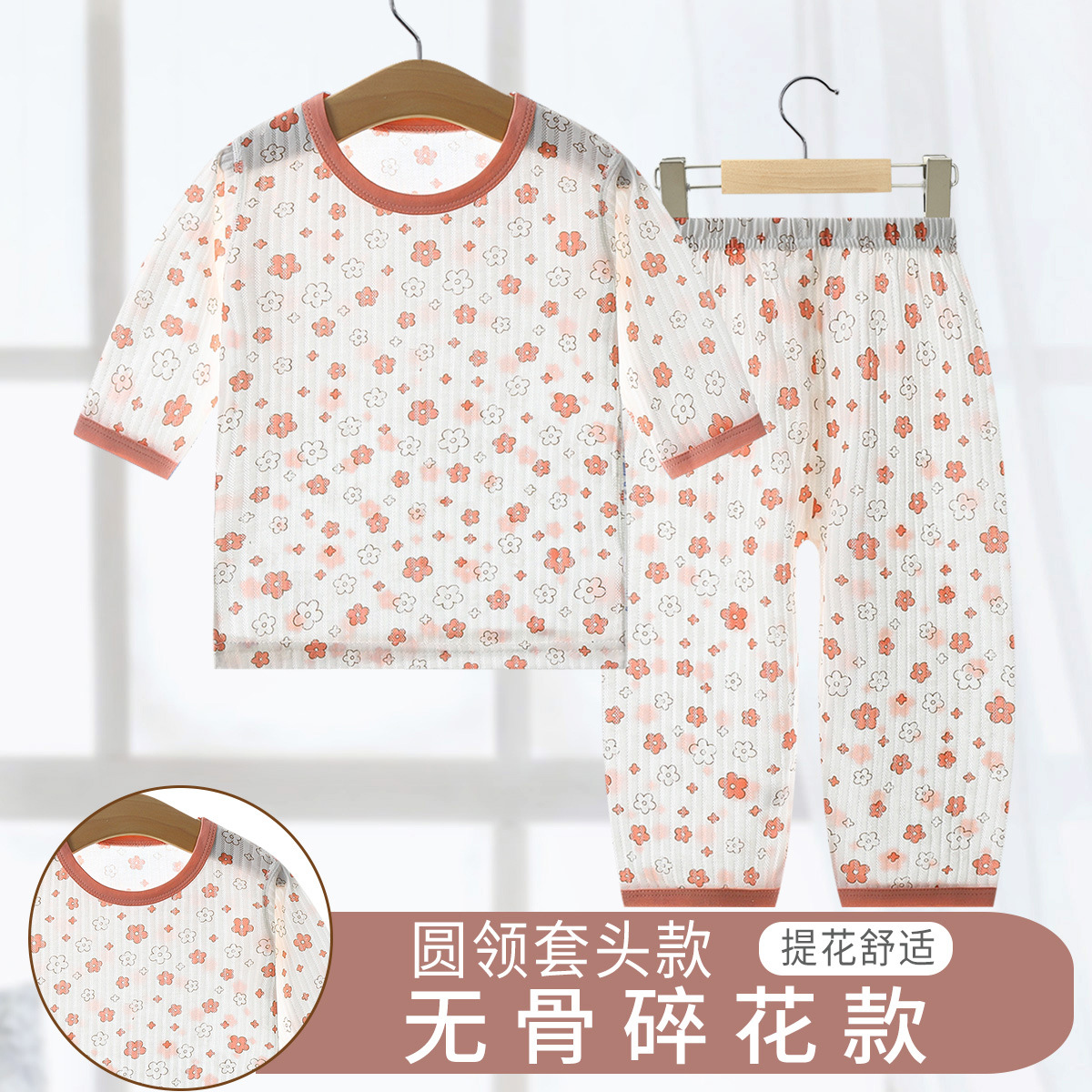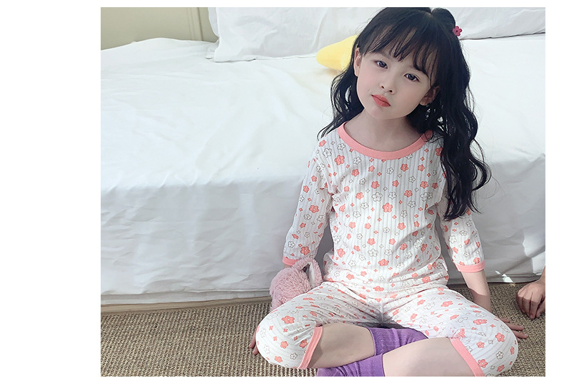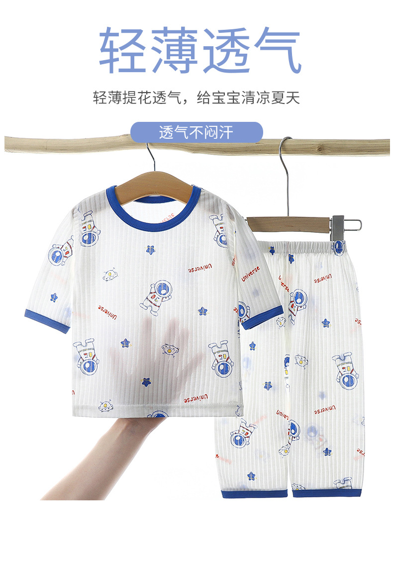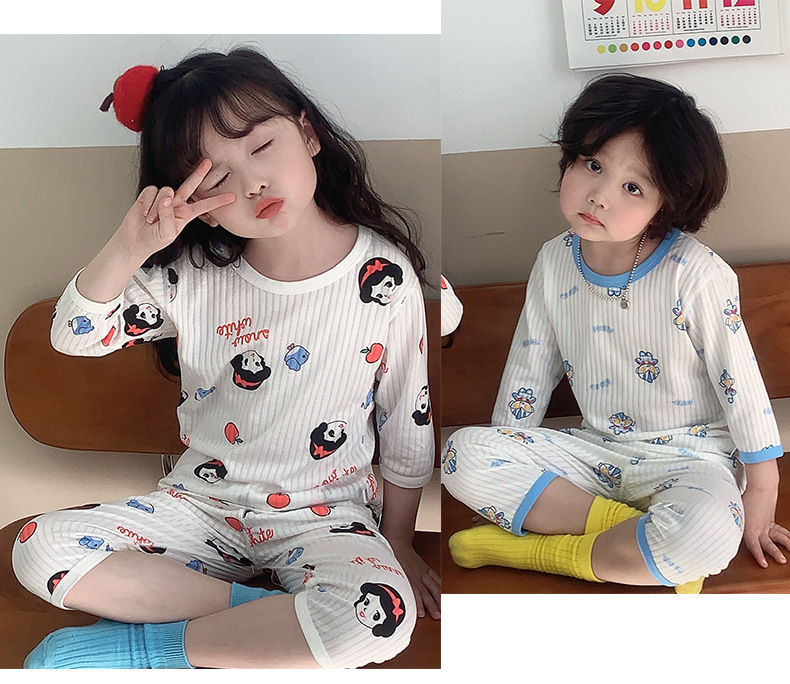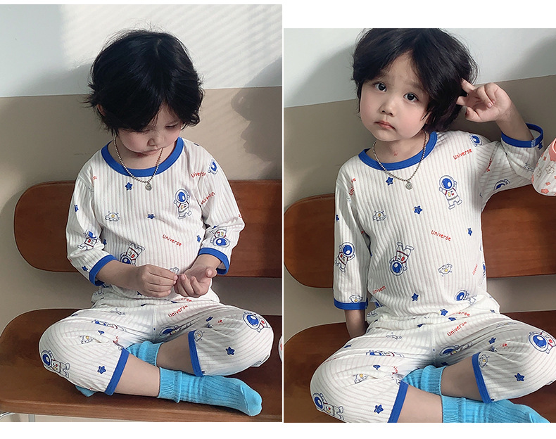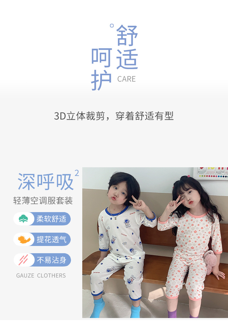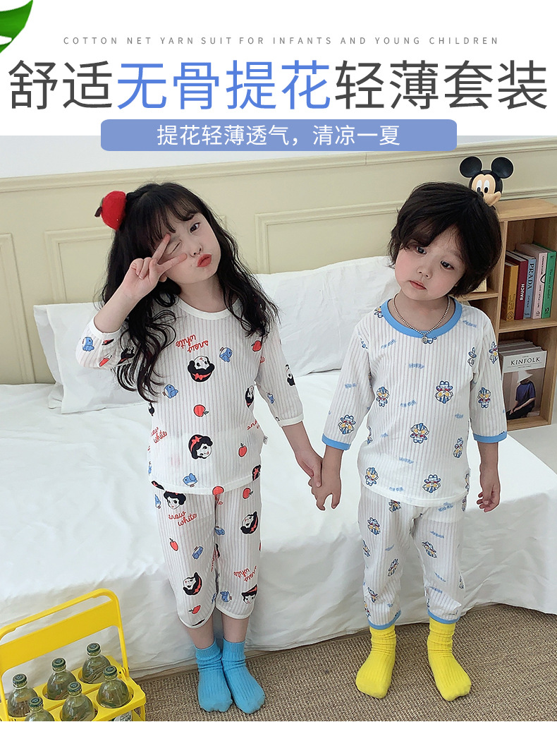 소년과 소녀를위한 어린이 에어컨 의류 7 소매 면 잠옷 만화 여름 세트 아기 얇은 가정 옷 세트