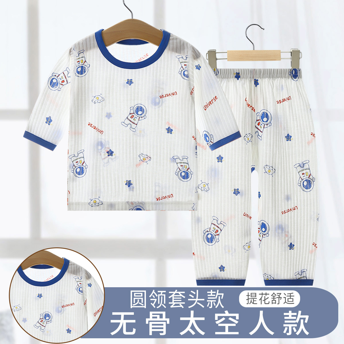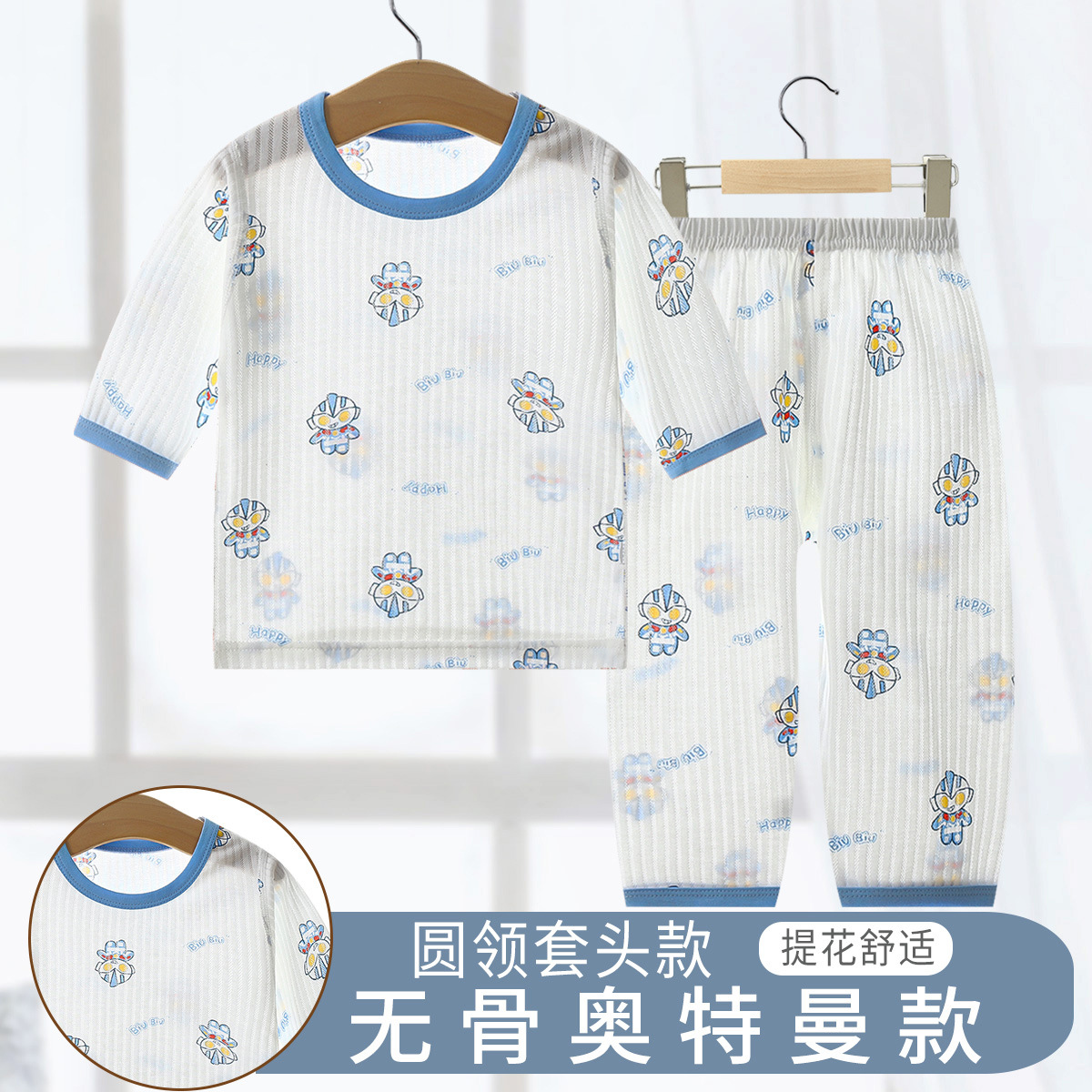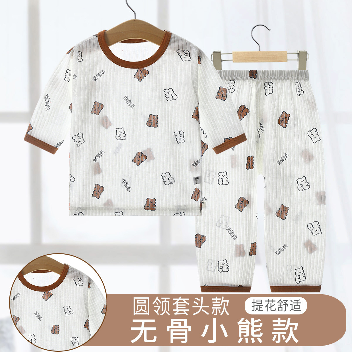 소년과 소녀를위한 어린이 에어컨 의류 7 소매 면 잠옷 만화 여름 세트 아기 얇은 가정 옷 세트스토어 가기