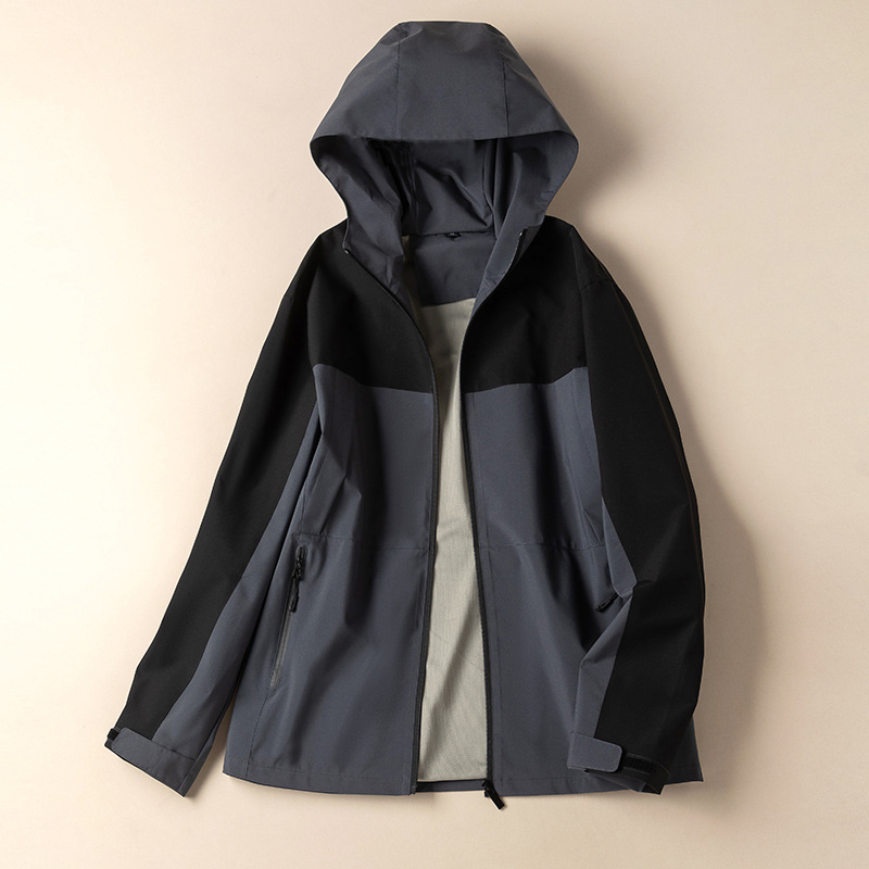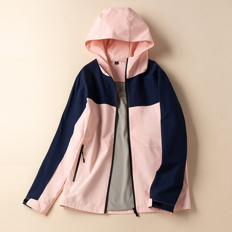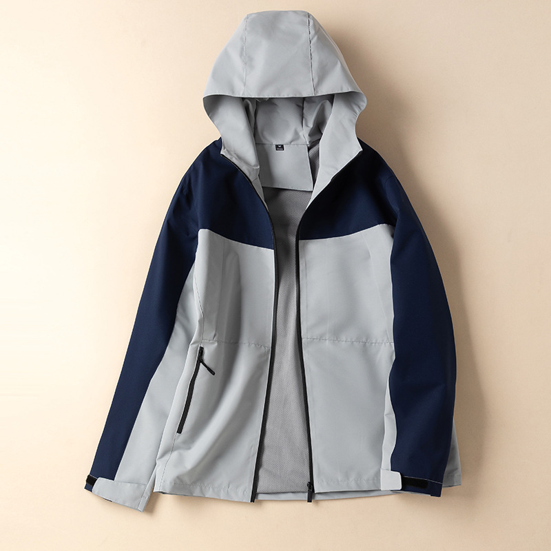 봄과 가을 야외 싱글 레이어 재킷 남성과 여성을위한 방풍 작업복 줄 지어 있음 메쉬 커플 로고 인쇄가있는 얇은 재킷