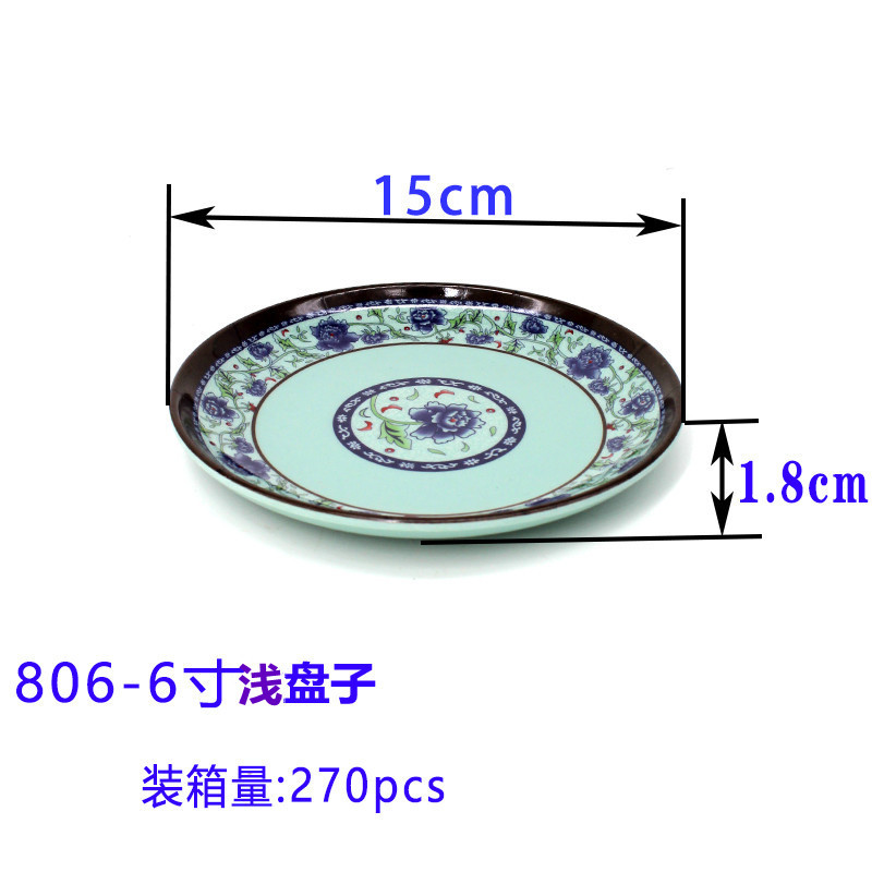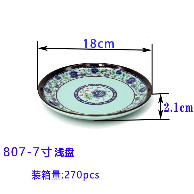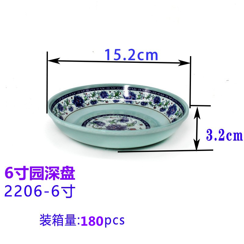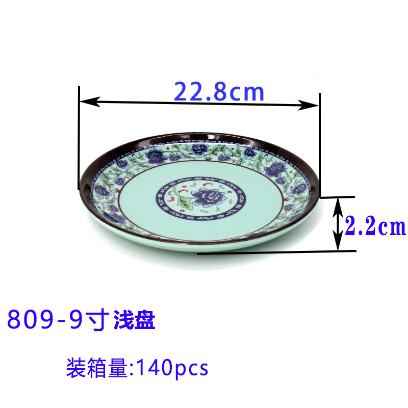 멜라민 파란색과 흰색 접시 모조 도자기 식기 원형 접시 얕은 접시 호텔 레스토랑 호텔 상업용 접시 파란색과 흰색 플라스틱 접시스토어 가기