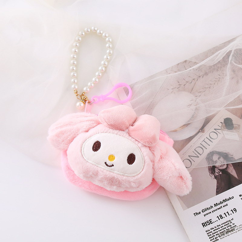 귀여운 스퀘어 플러시 산리오 동전 지갑 만화 옥 Gui 개 열쇠 고리 펜던트 여성 보관 가방 동전 가방스토어 가기