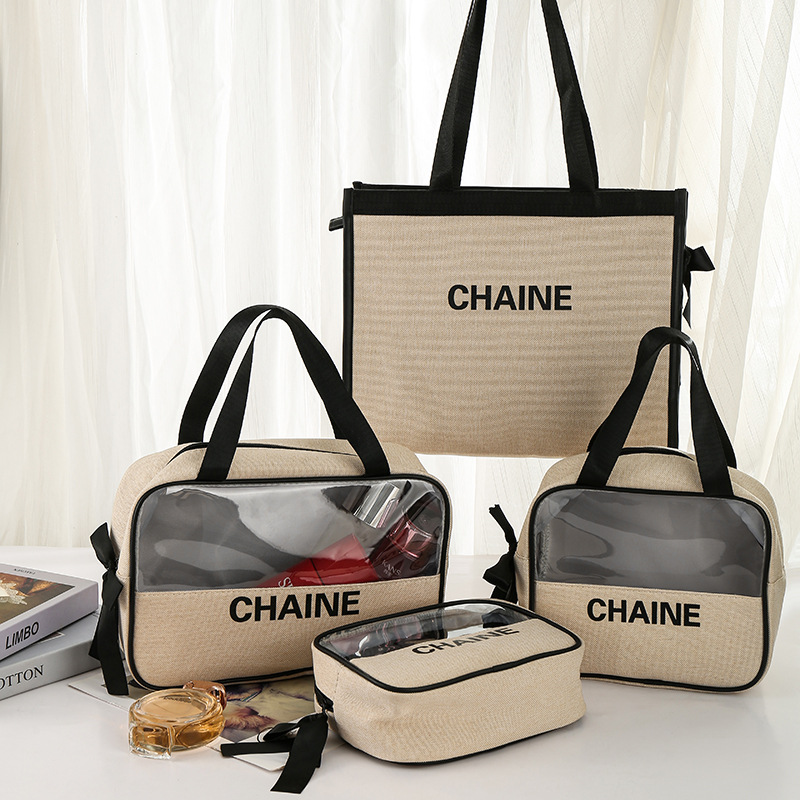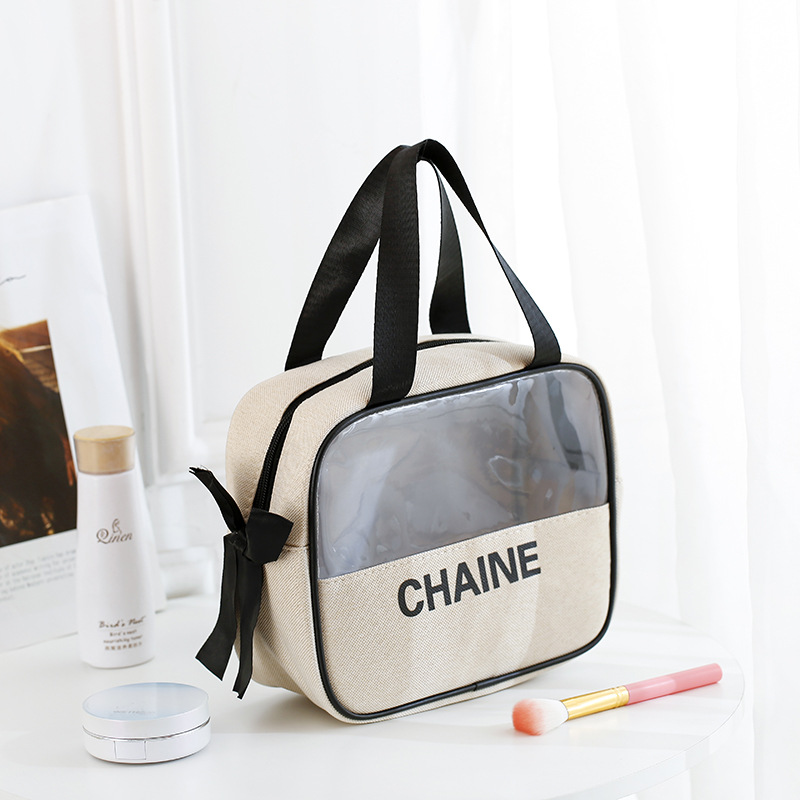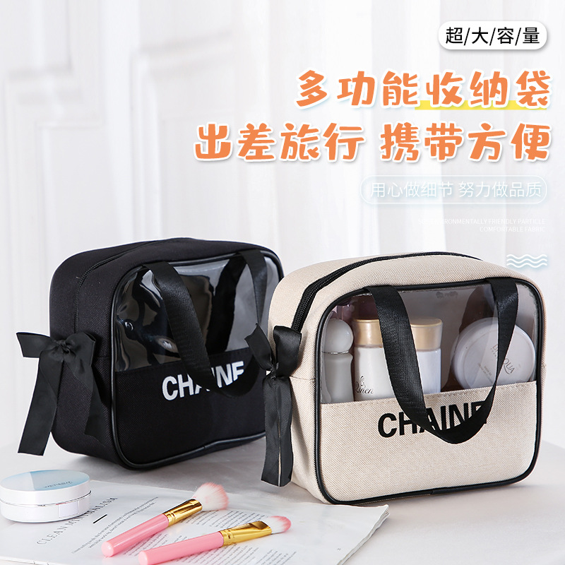 새로운 패션 원 숄더 캔버스 보우 메이크업 가방 휴대용 세면도구 가방 대용량 쇼핑백 미라 가방