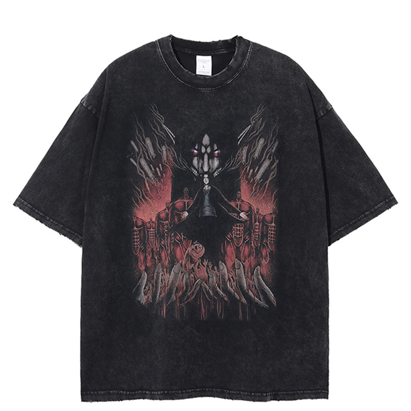 240g 무거운 더블 원사 씻어 올드 아메리칸 티셔츠 플러스 사이즈 하이 스트리트 유럽과 미국 여름 남성 탑 하라주쿠 스트리트