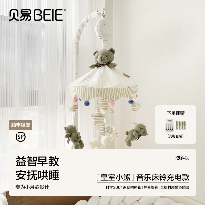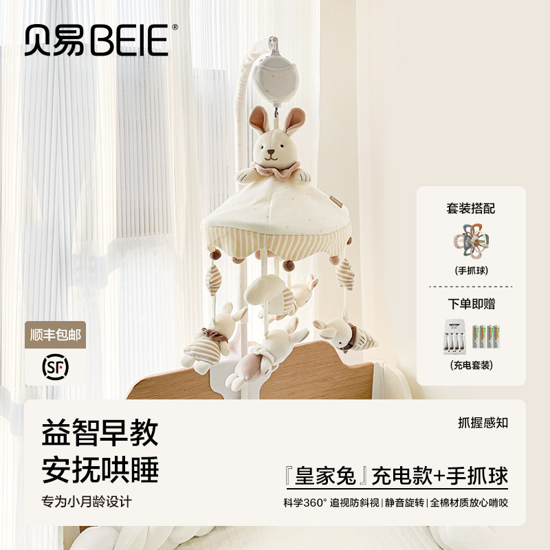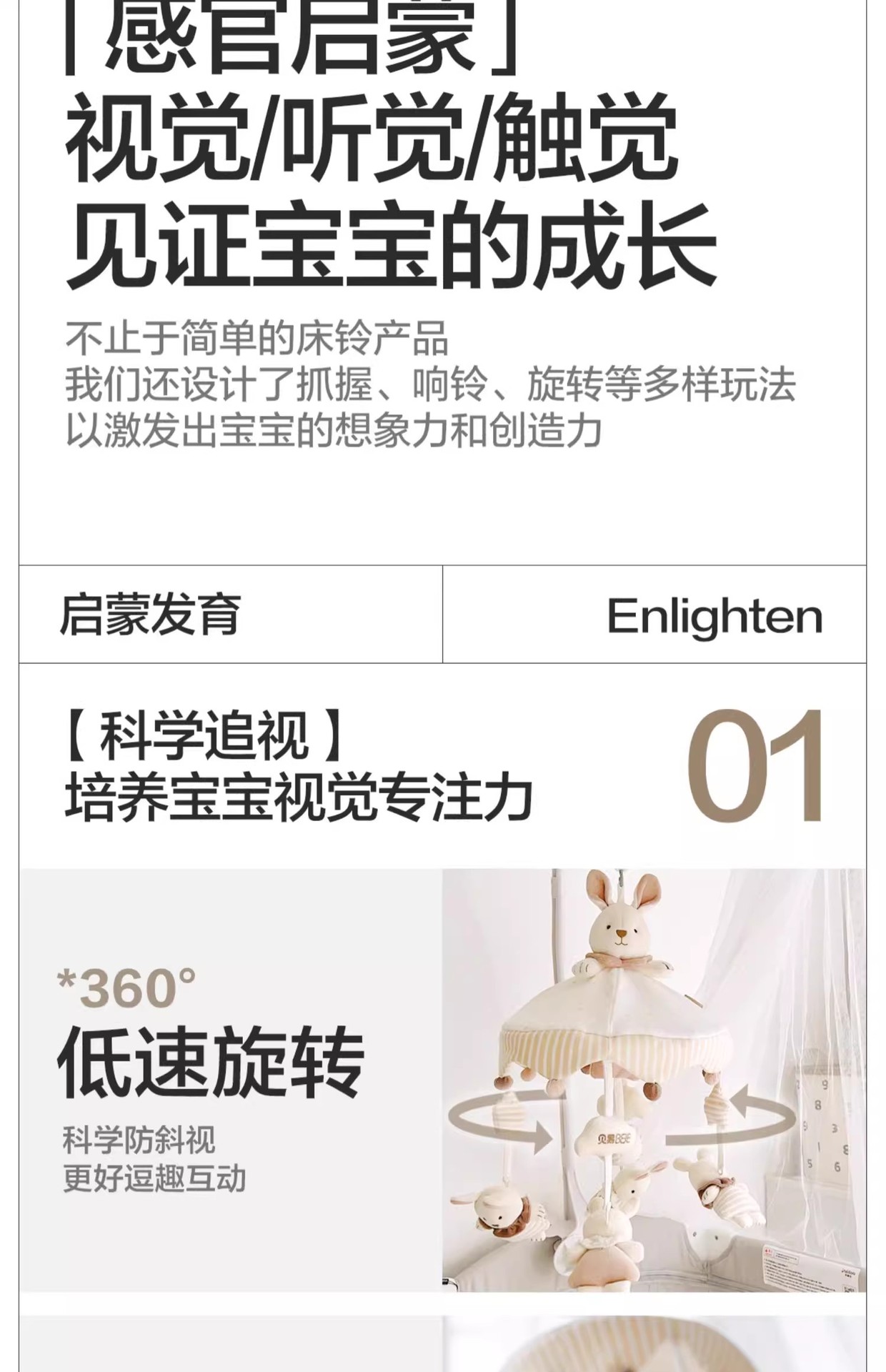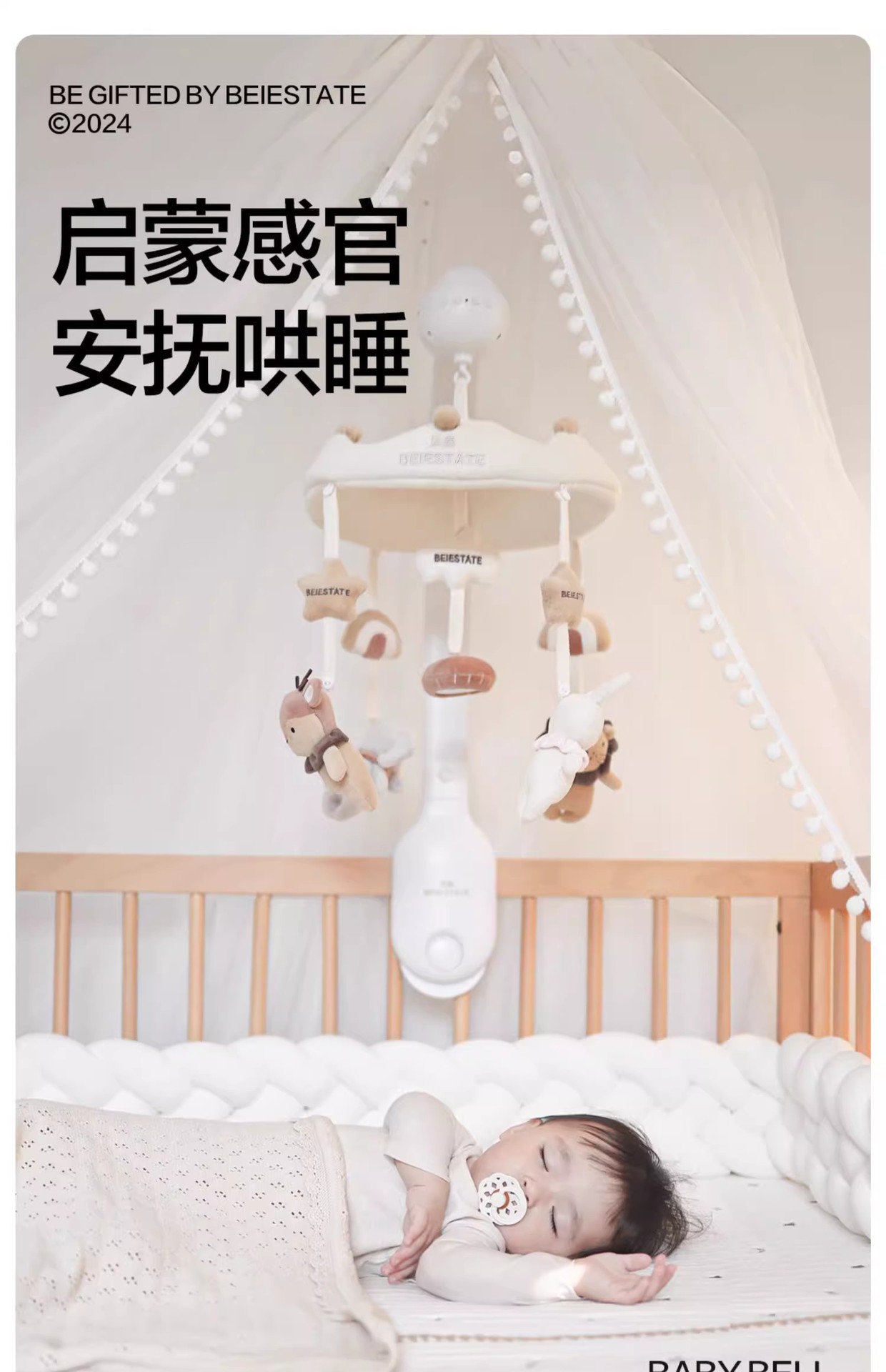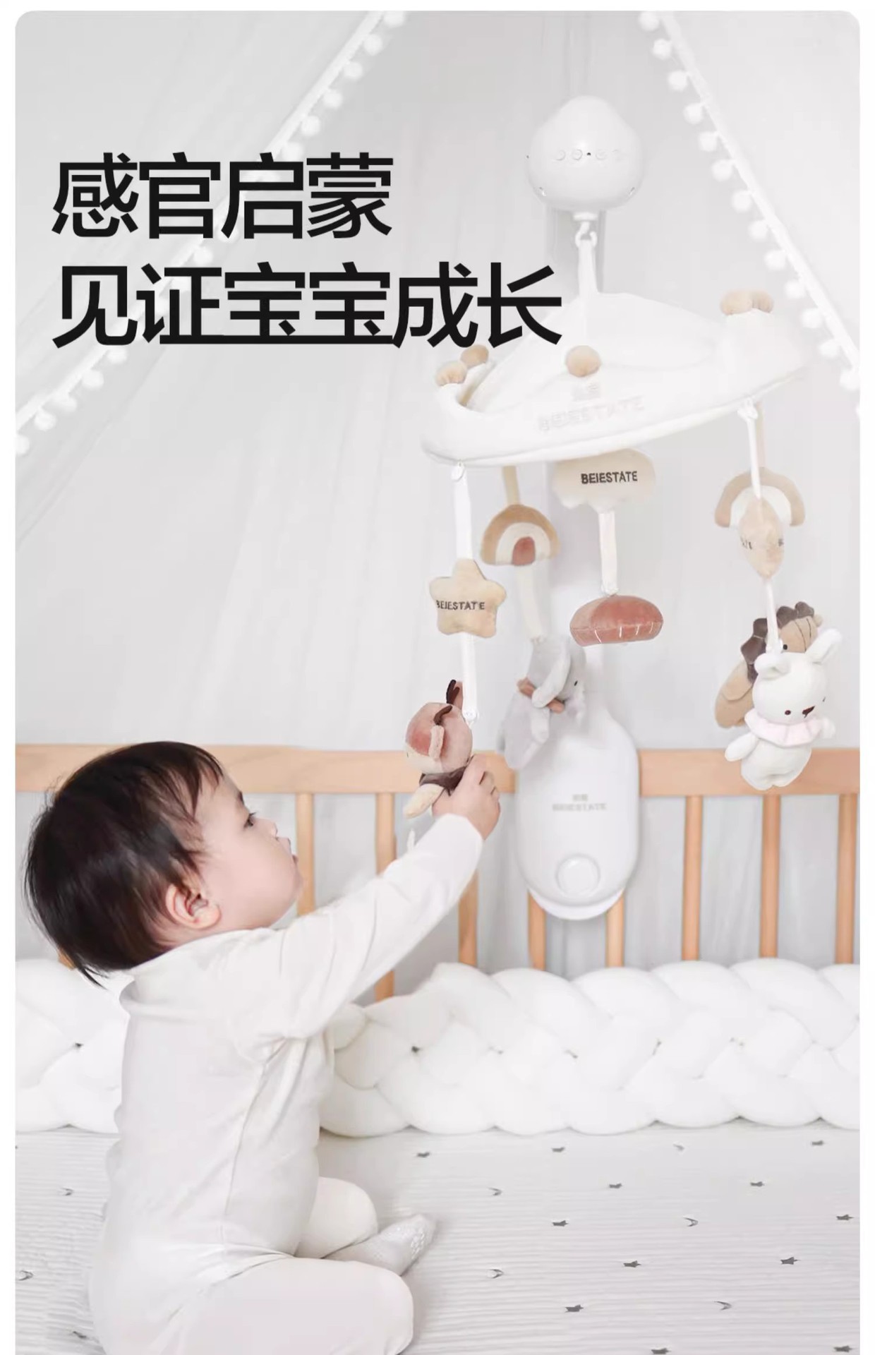 Beiyi 침대 벨 아기 침대 옆 음악 회전 침대 딸랑이 펜던트 신생아 아기 침대 패브릭 장난감 교수형스토어 가기
