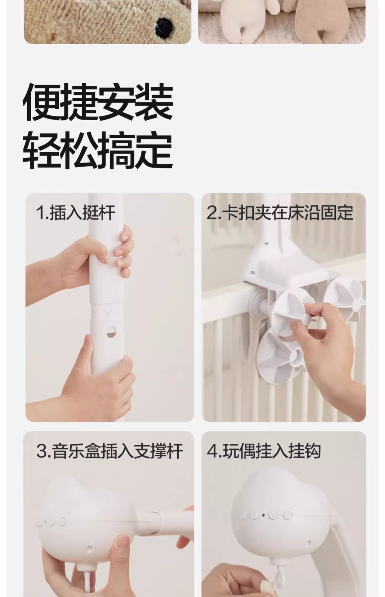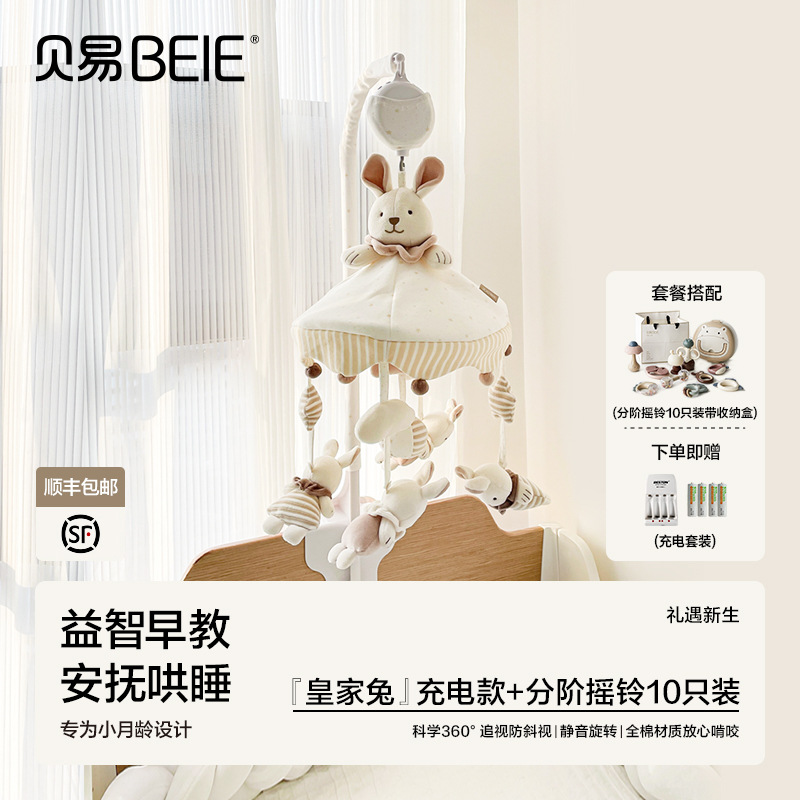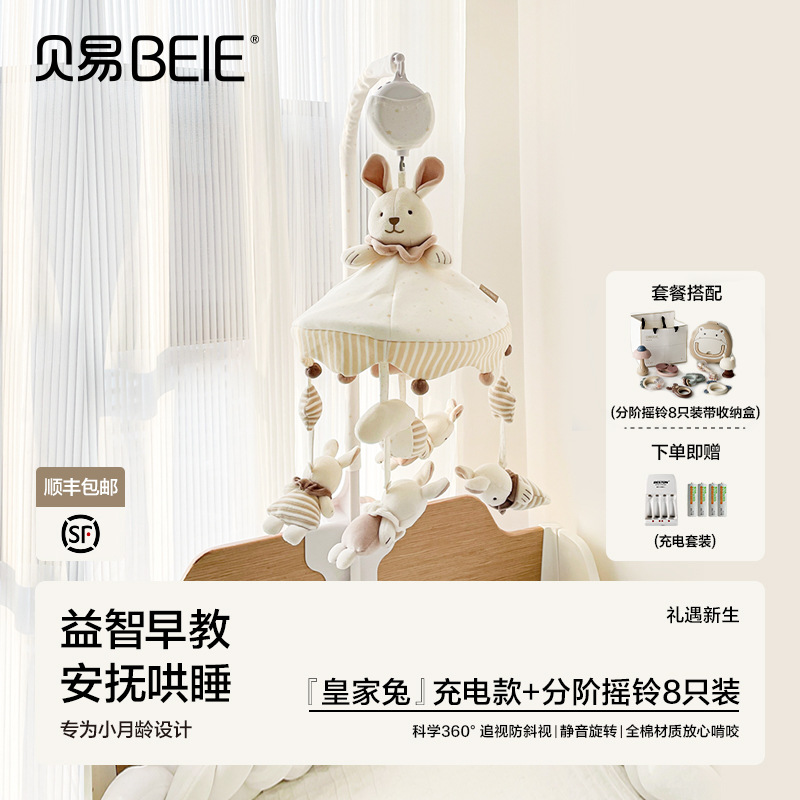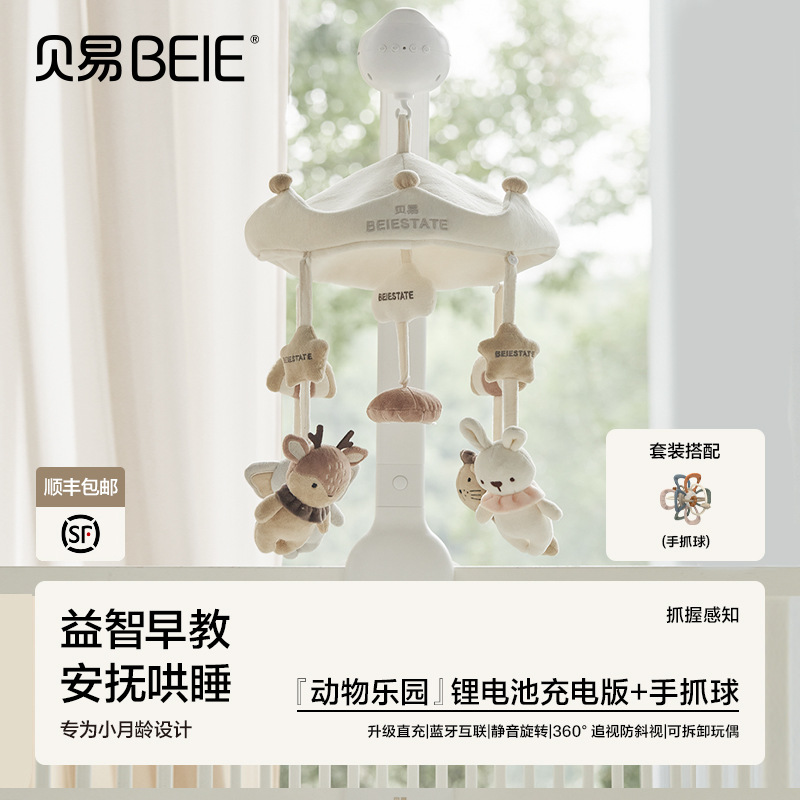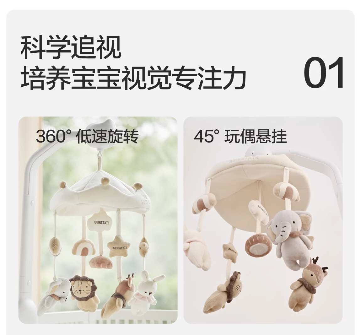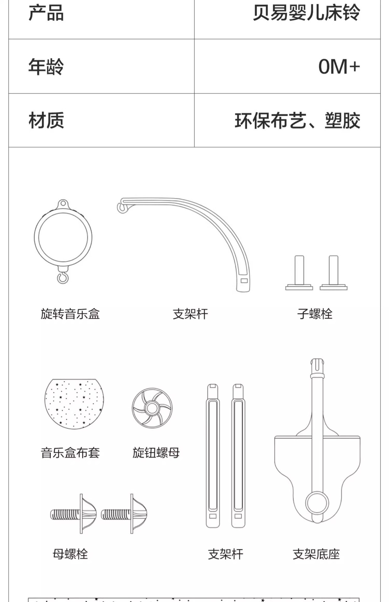Beiyi 침대 벨 아기 침대 옆 음악 회전 침대 딸랑이 펜던트 신생아 아기 침대 패브릭 장난감 교수형스토어 가기