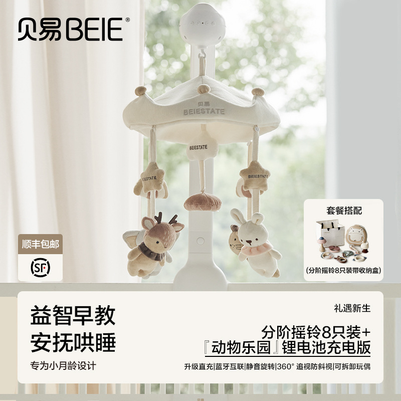 • [신입생을 위한 선물] 수납박스 포함 8단계 딸랑이 + 침대벨 (동물공원 충전모델)