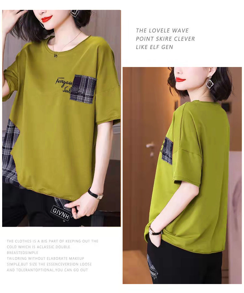 플러스 사이즈 반팔 가짜 투피스 탑 여성용 배꼽 덮기 슬리밍 모든 매치 라운드 넥 티셔츠 여름 얇은 지방 MMT 셔츠 8206스토어 가기