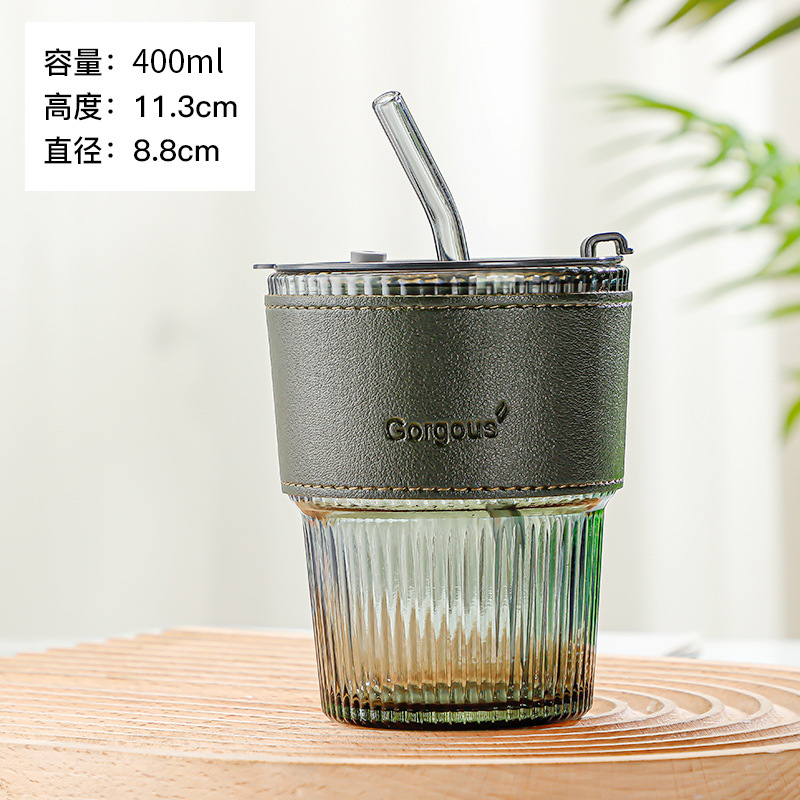 뚜껑이있는 새로운 스타일 수직 곡물 슬러브 컵 높은 색상 가치 밀짚 유리 컵 인터넷 연예인 선물 컵 사무실 커피 컵스토어 가기