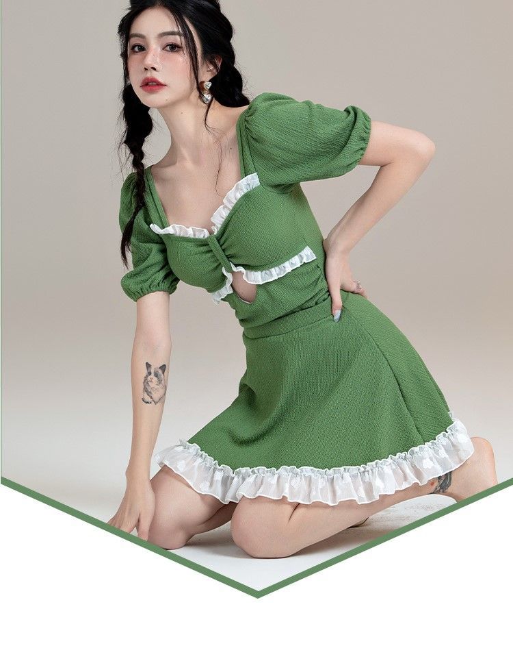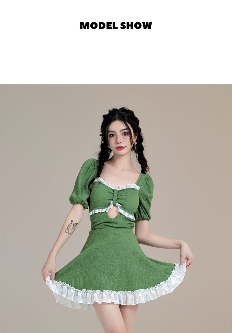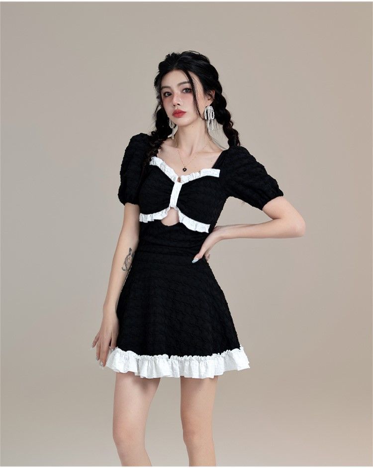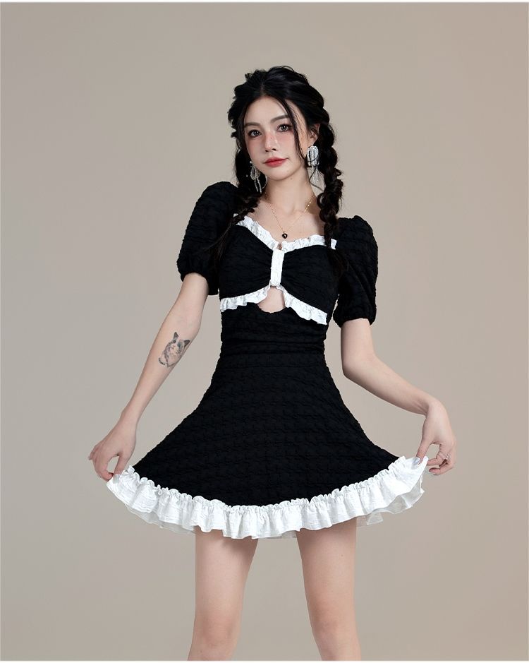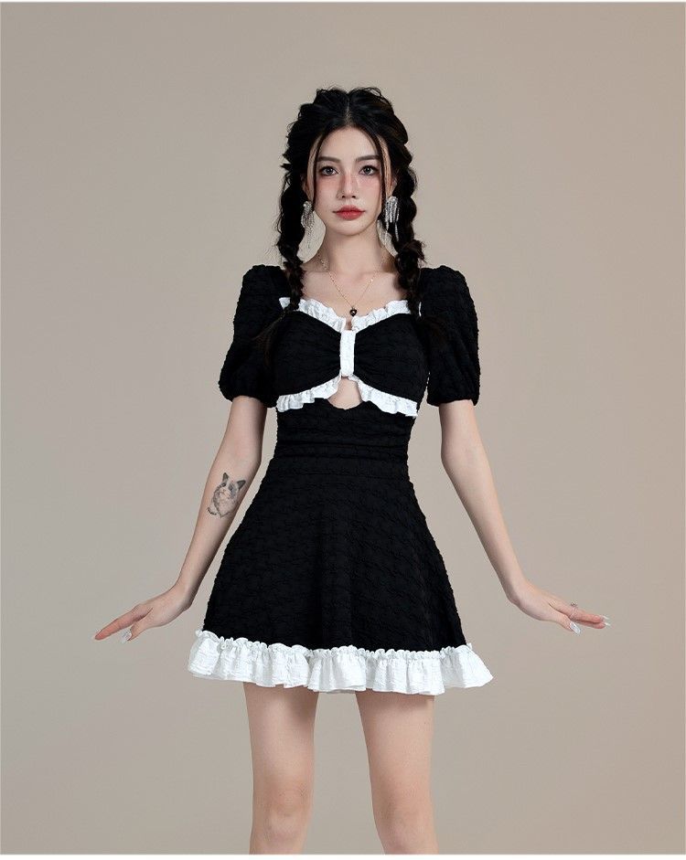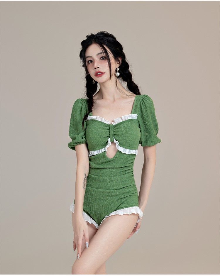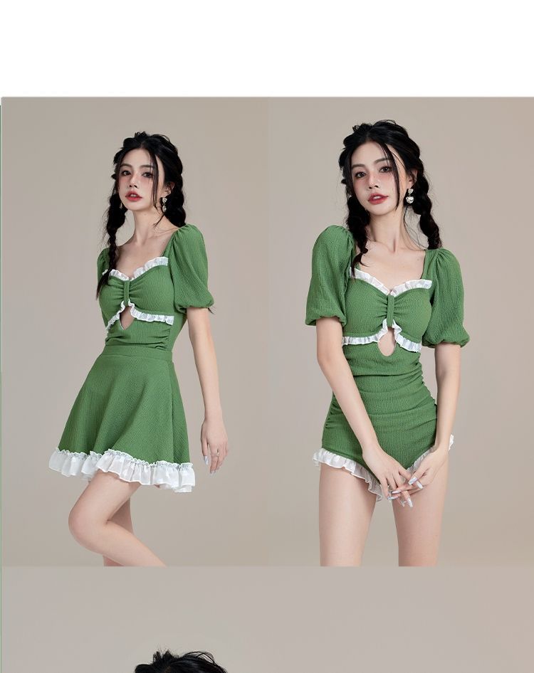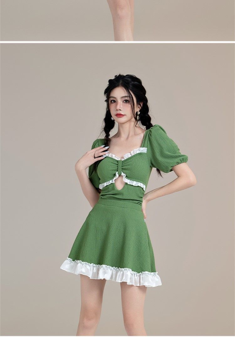 2024 새로운 수영복 여성 원피스 스커트 온천 보수적 인 배꼽 덮인 슬림 수영복 여성의 순수한 욕망 인 스타일 대외 무역스토어 가기