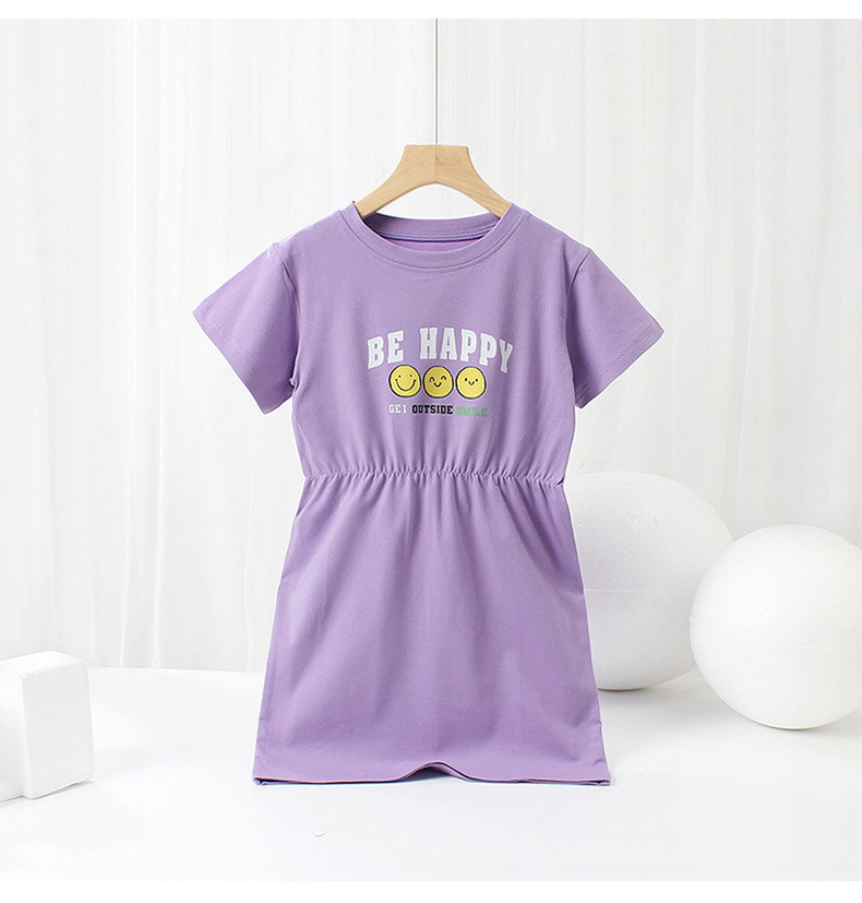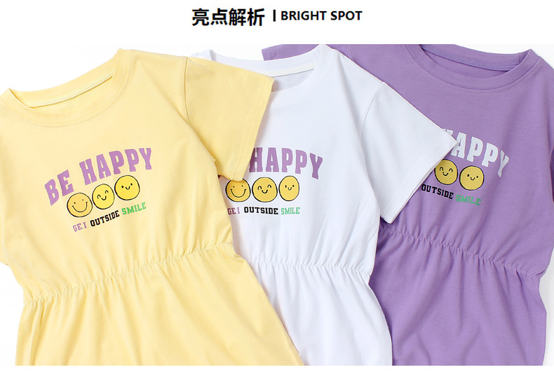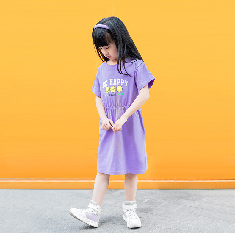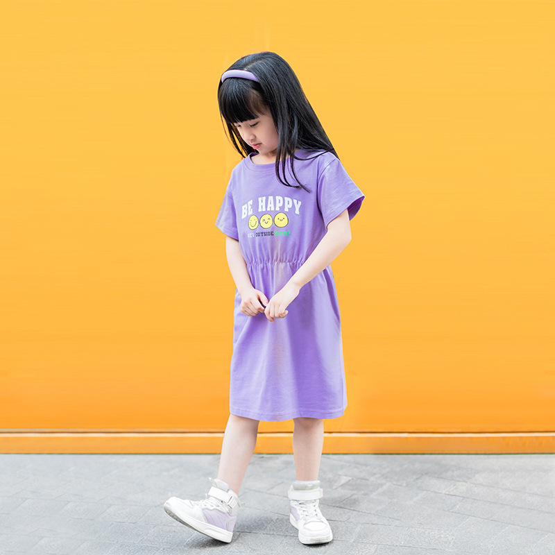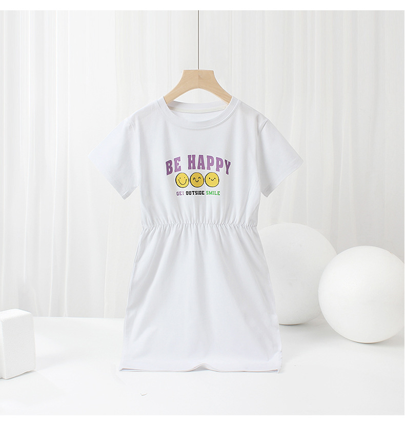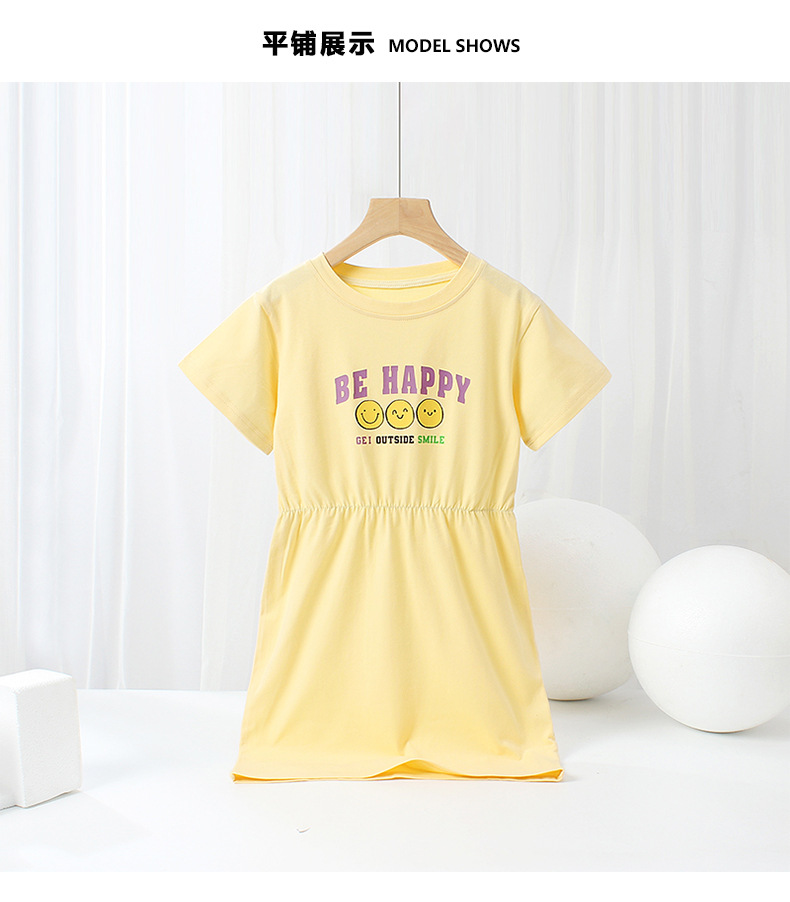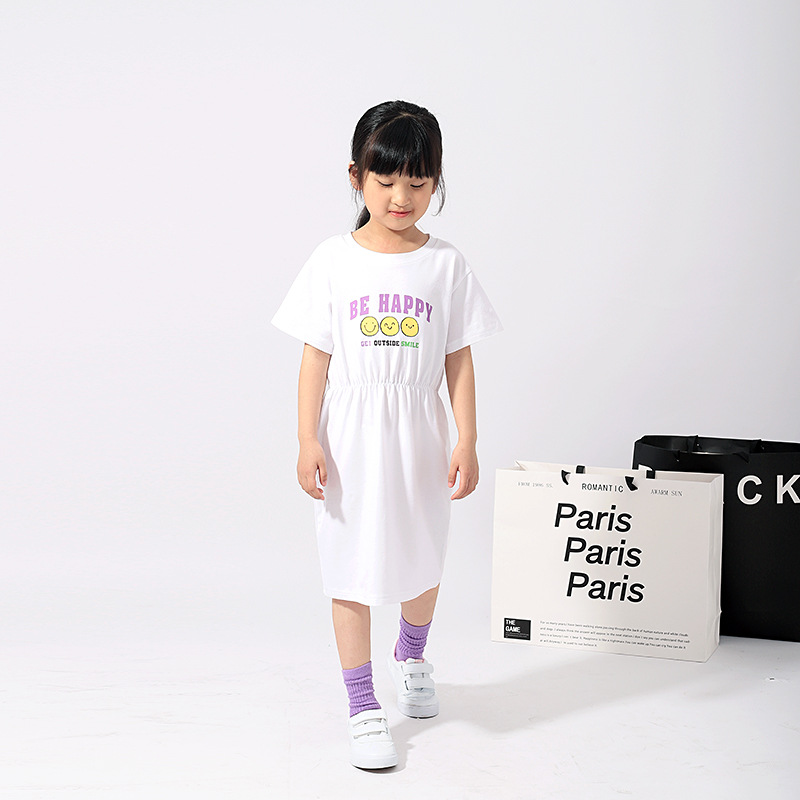 아동 스커트 여름 한국식 새 여아 원피스 대형 여아 허리 스마일 A 라인 스커트 여아 반팔 원피스스토어 가기