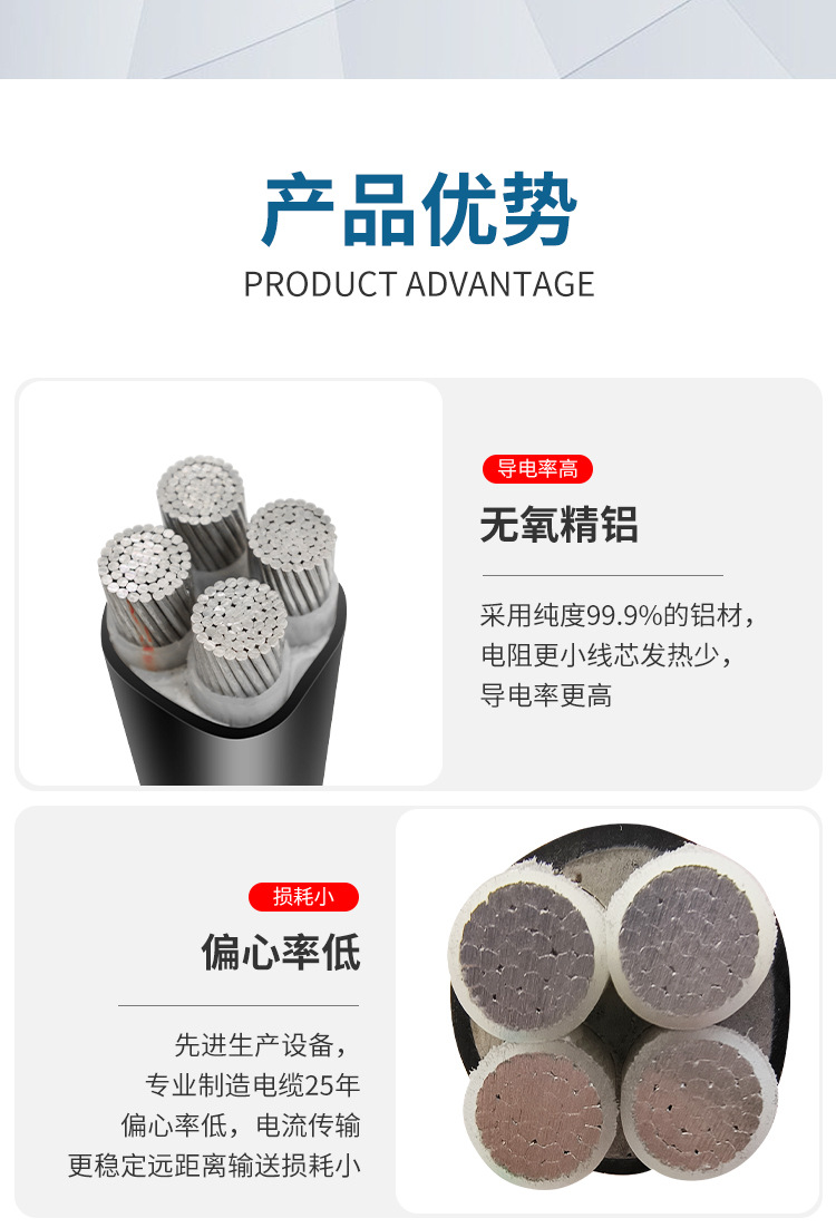 알루미늄 코어 케이블 YJLV22 4 3+1 코어 10 16 25 35 50 70 평방미터 공중용 강화 전력 케이블스토어 가기