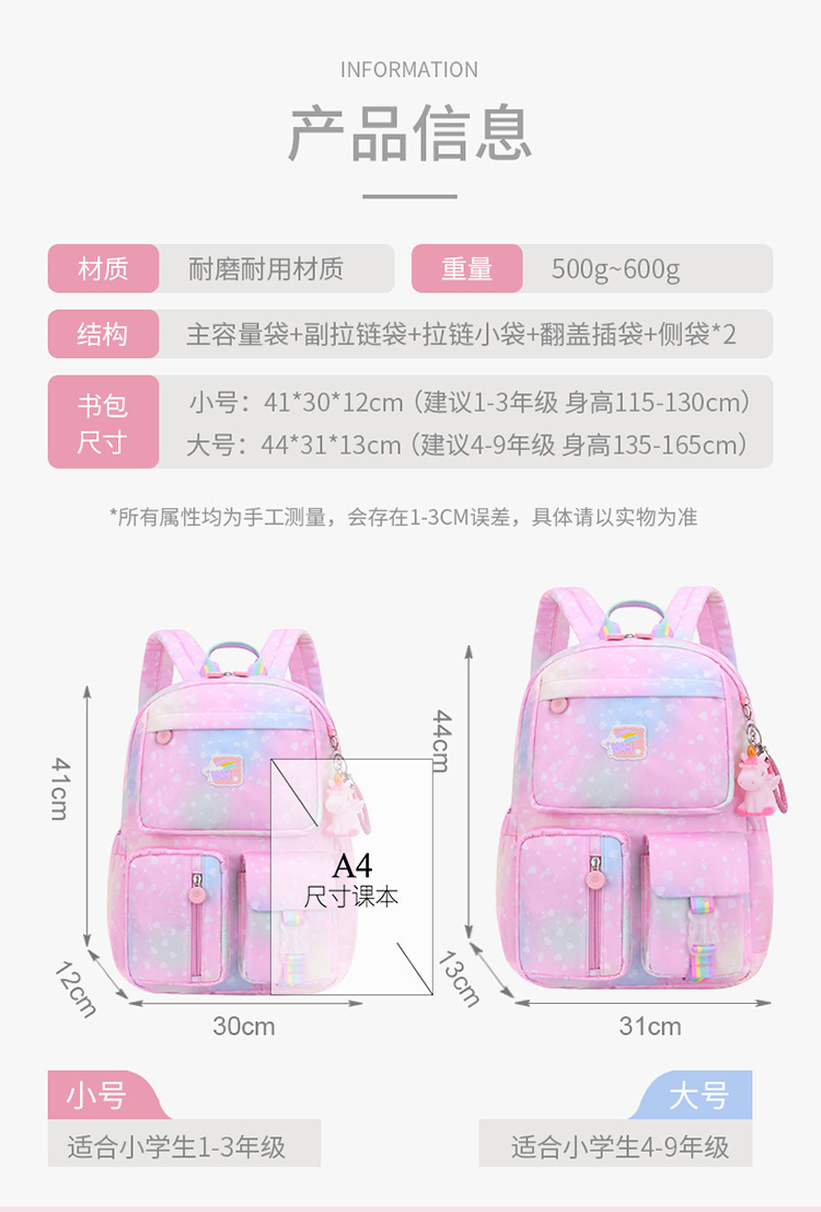 초등학생을위한 새로운 책가방 여성용 1-3-6 학년 만화 귀여운 어린이 배낭 학생을위한 경량 무게 감소 책가방스토어 가기