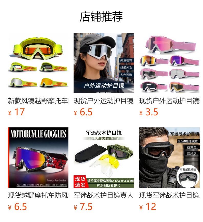 酷炫骷髅元素外观;高清大视野镜片,镜框内部可卡近视眼镜;护目镜面罩分体设计可拆卸;可适应越野摩托,公路骑行,真人CS等场景;防风/防尘/防紫外线/抗冲击 ;内衬柔软海绵透气舒适;