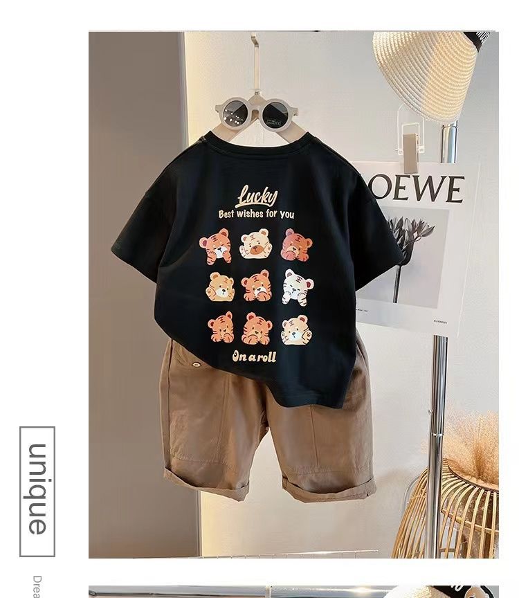 간단한 코튼 보이즈 반팔 티셔츠 2023 새로운 어린이 여름 한국 스타일 만화 프린트 티셔츠 여름 탑스토어 가기
