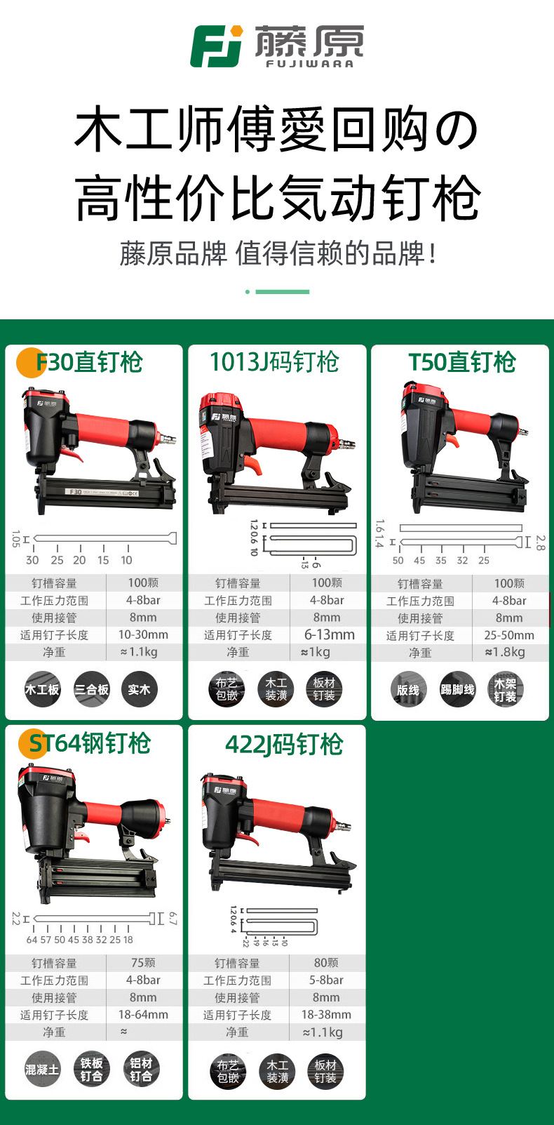 후지와라 에어 네일 건 f30 스트레이트 네일 건 t50 스트레이트 네일 건 st64 스틸 네일 건 422j 코드 네일 건 목공 공압 도구