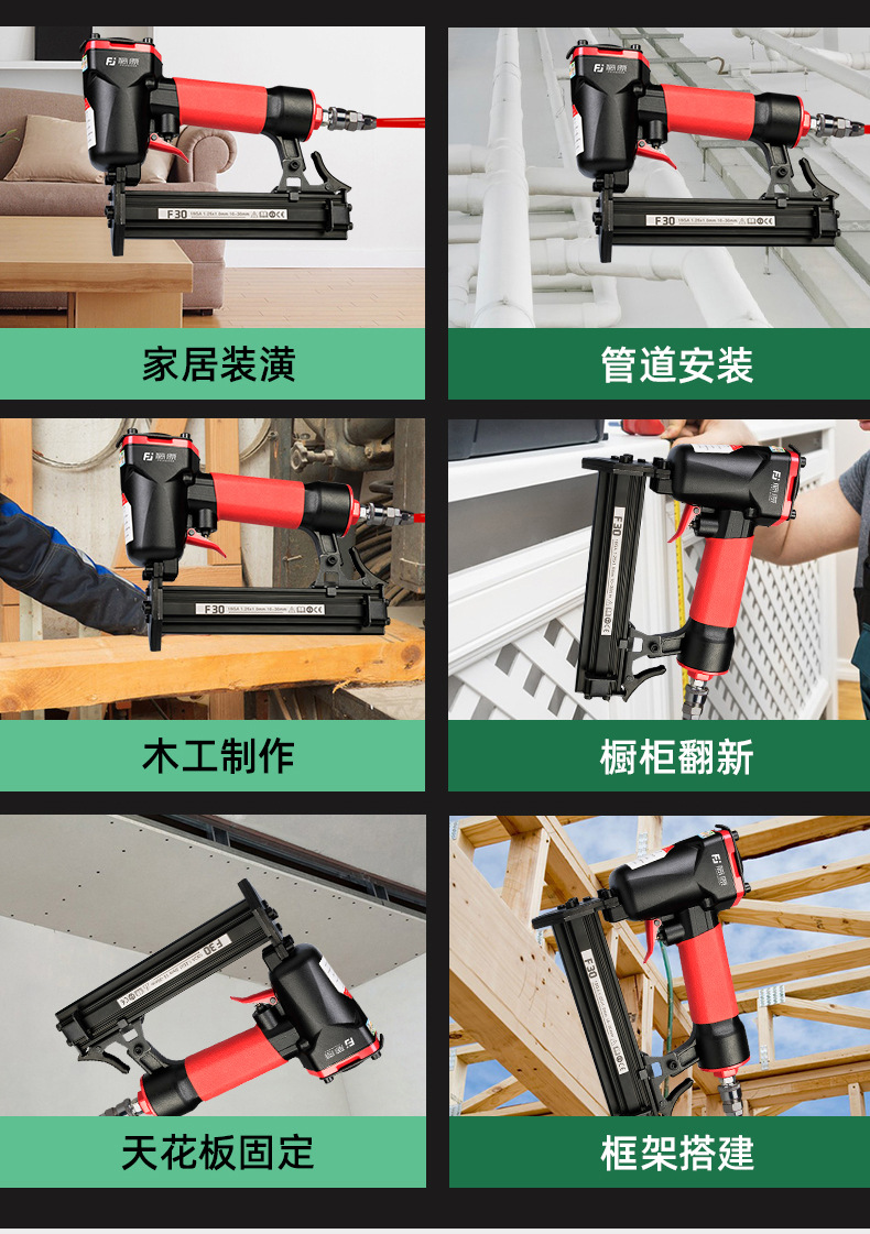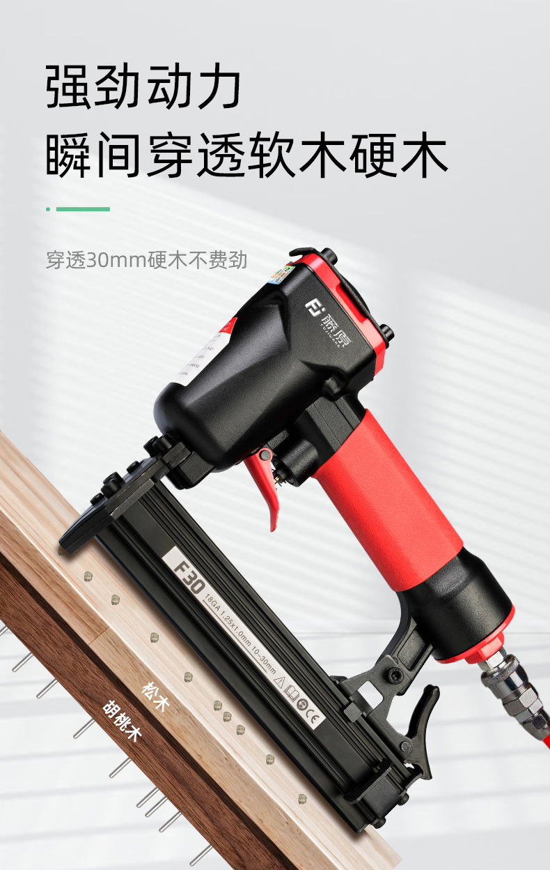 • [부티크] F30 스트레이트 네일 건 (스테이플 없음) 표준 설치: 육각 렌치 + 윤활유