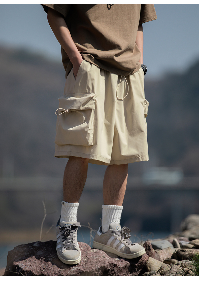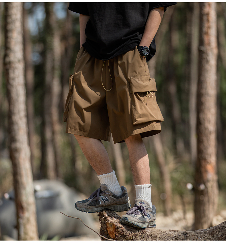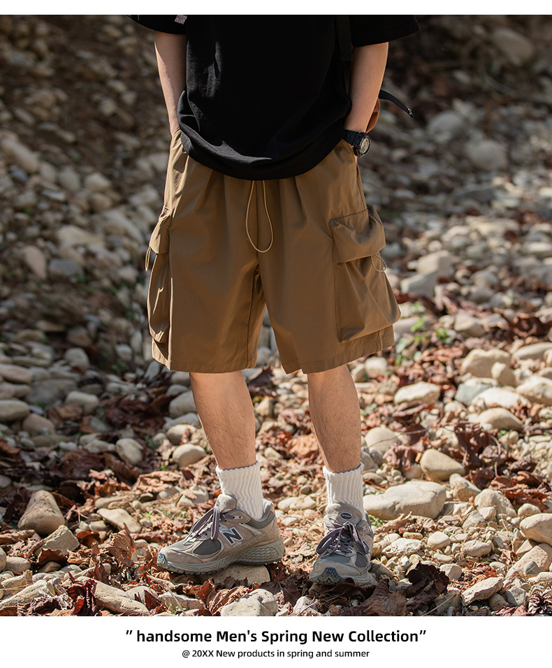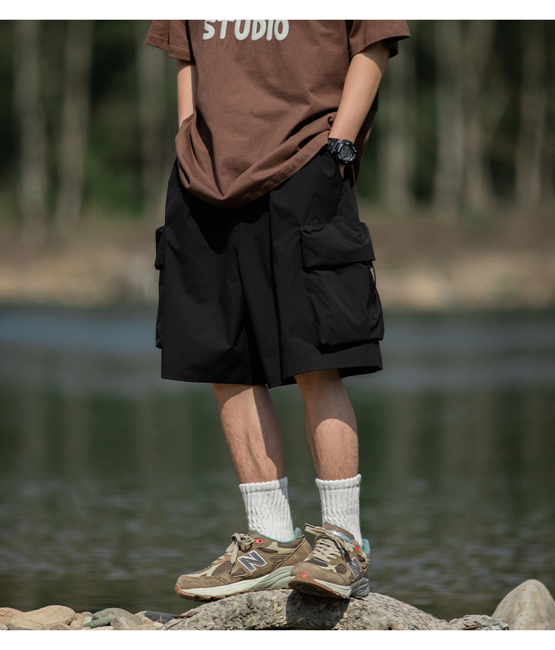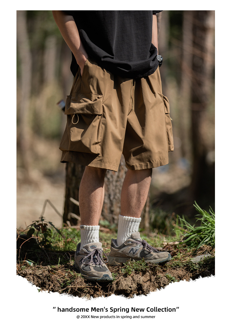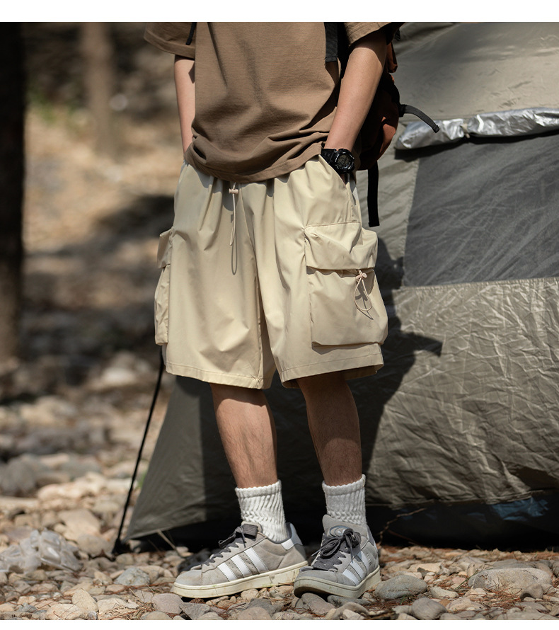 남성용 여름 캐주얼 루즈핏 워크웨어 반바지, 3D 대형 포켓, 신축성 있는 밴드, 스포츠 기능성, 일본 스타일 5부 바지스토어 가기