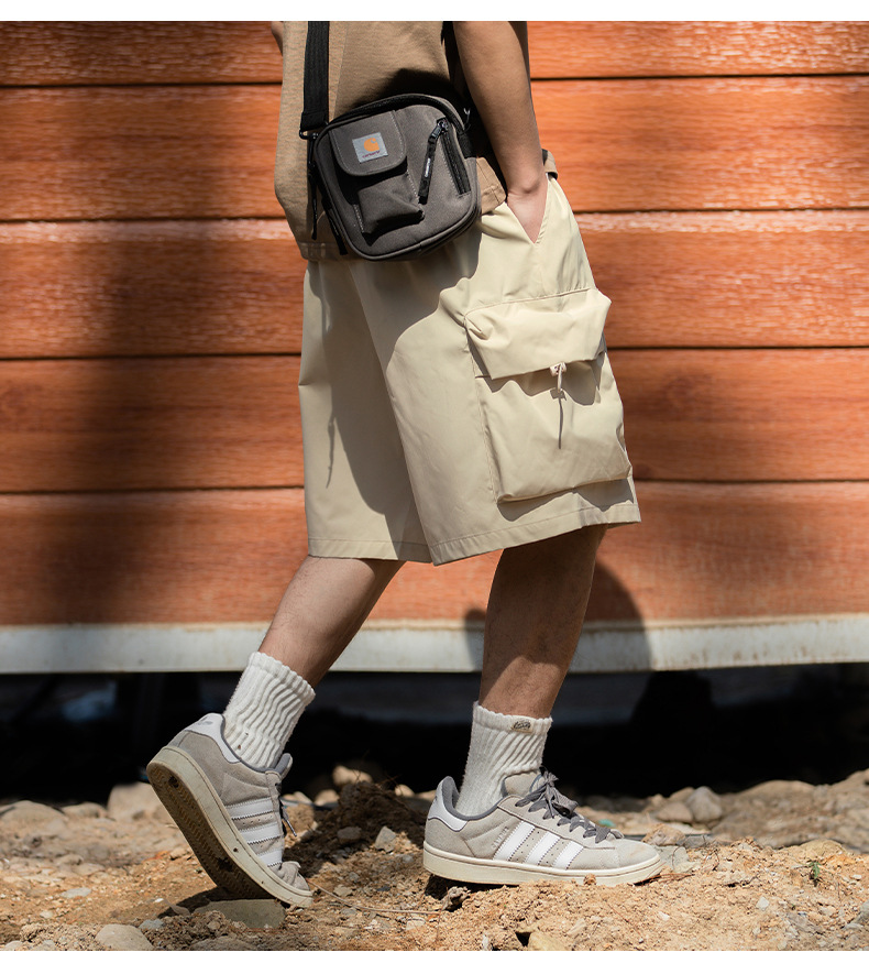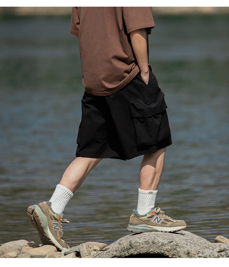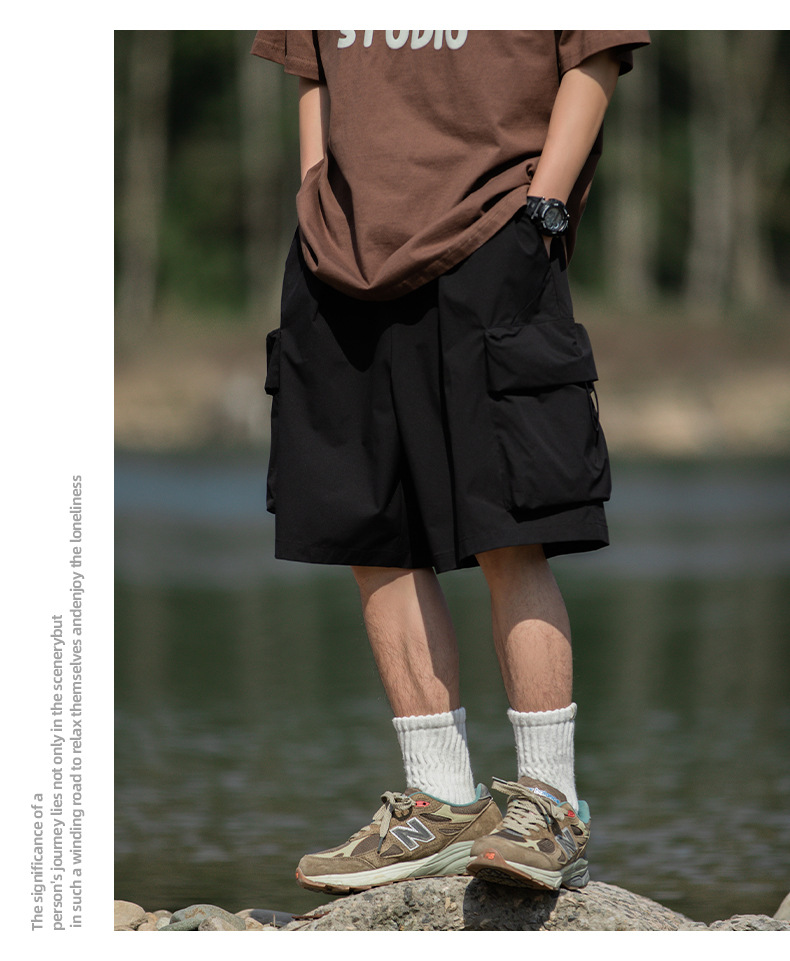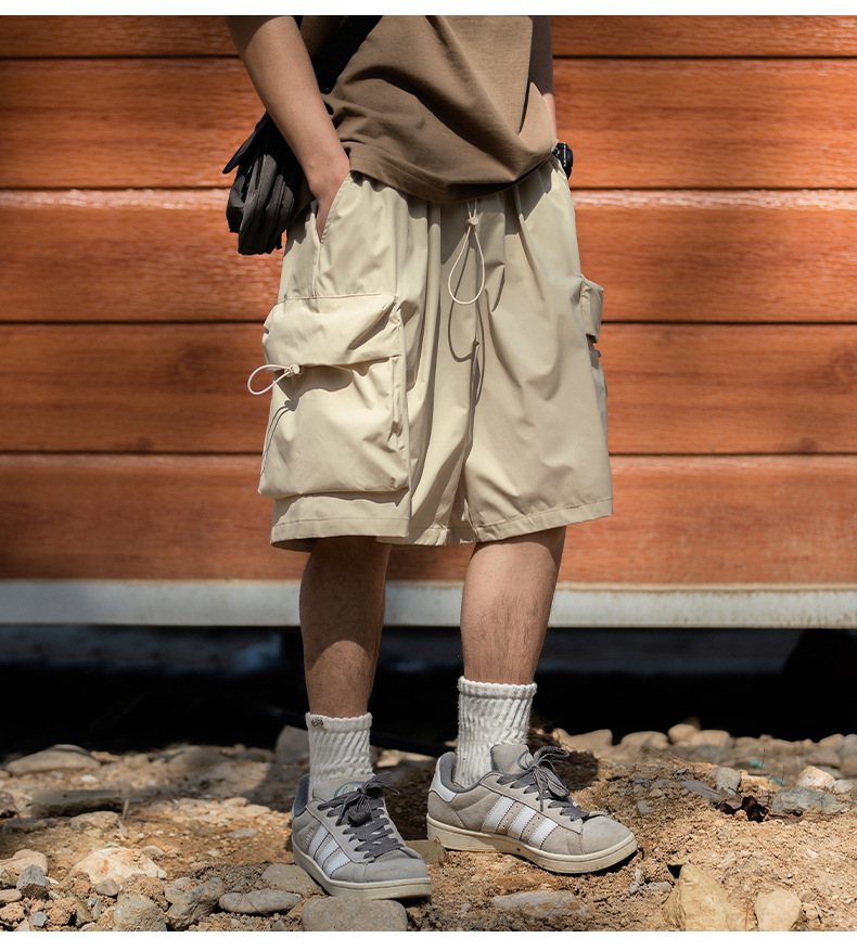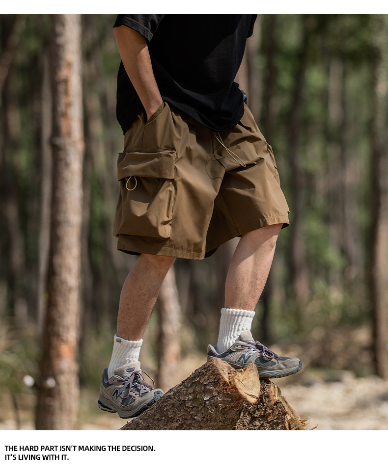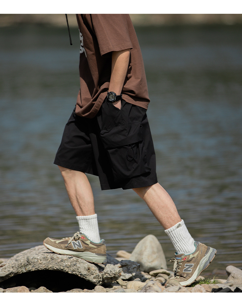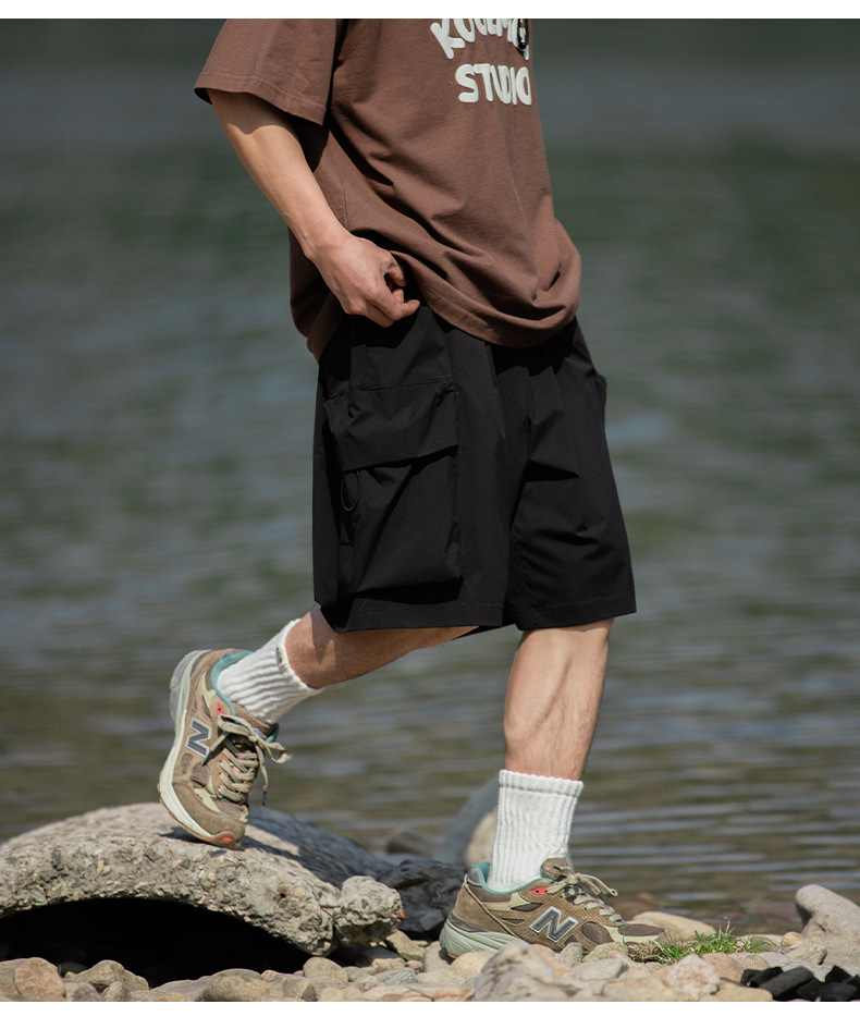남성용 여름 캐주얼 루즈핏 워크웨어 반바지, 3D 대형 포켓, 신축성 있는 밴드, 스포츠 기능성, 일본 스타일 5부 바지스토어 가기
