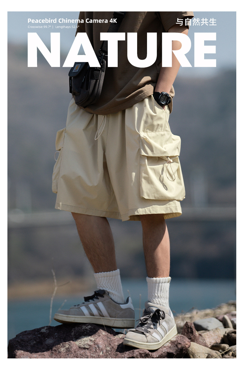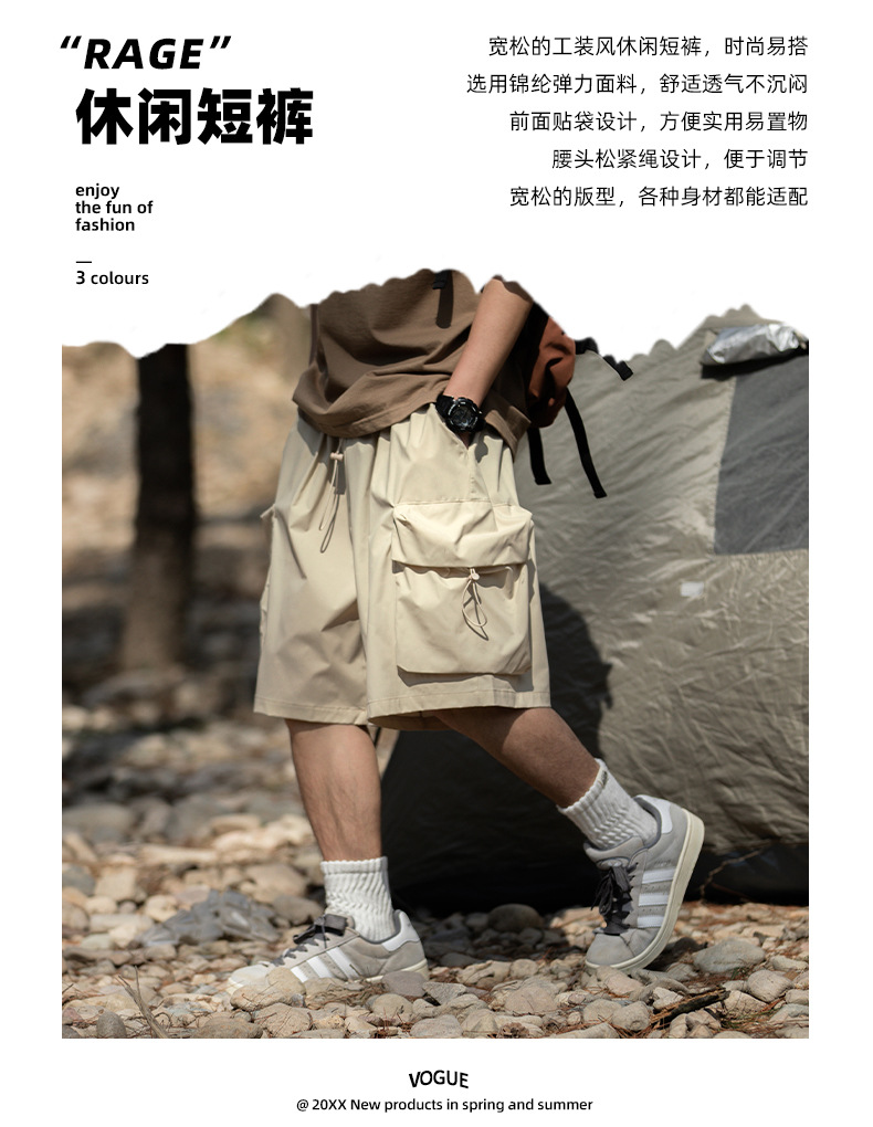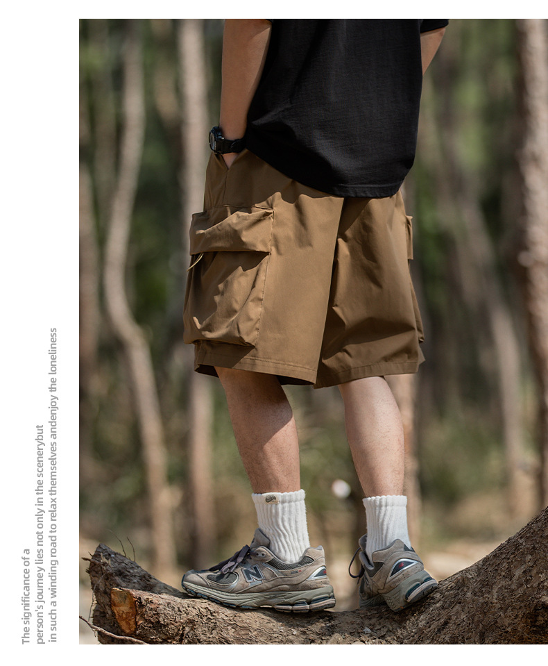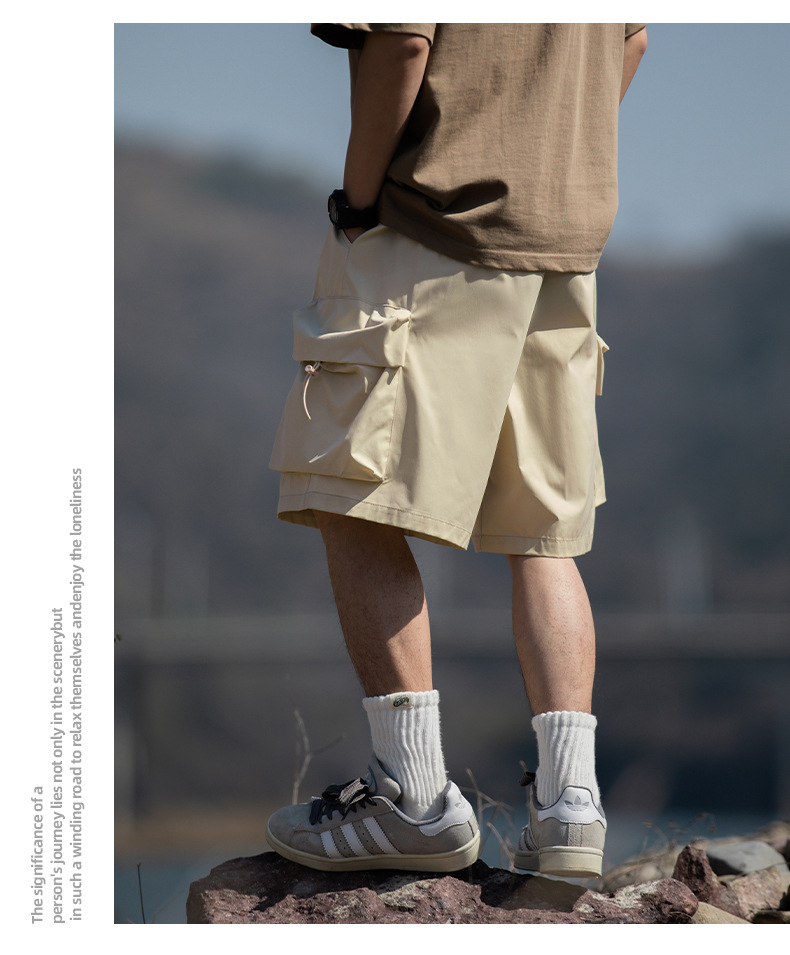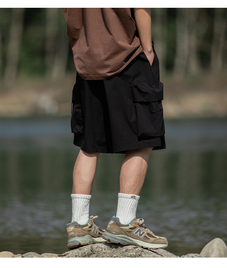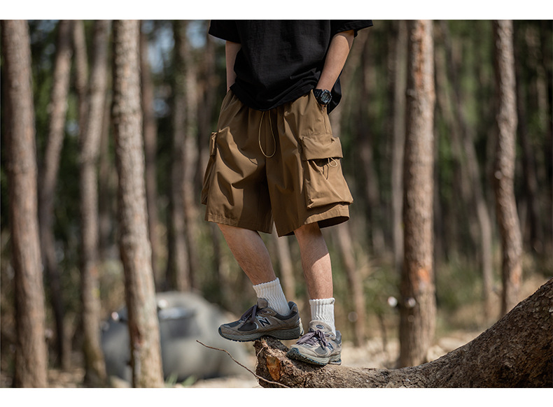 남성용 여름 캐주얼 루즈핏 워크웨어 반바지, 3D 대형 포켓, 신축성 있는 밴드, 스포츠 기능성, 일본 스타일 5부 바지스토어 가기