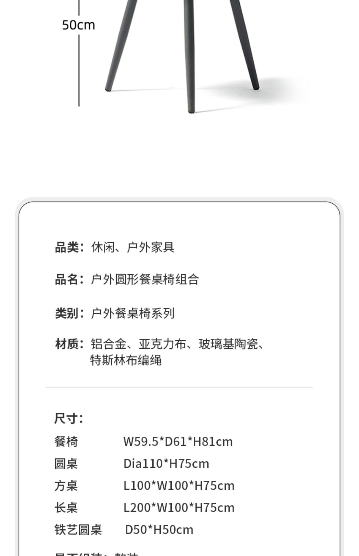 • 둥근 테이블 직경 110cm * 75cm (알루미늄 합금)