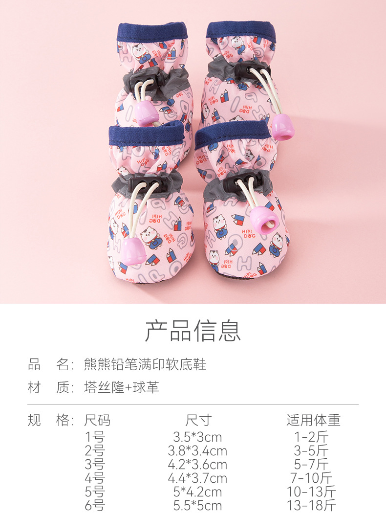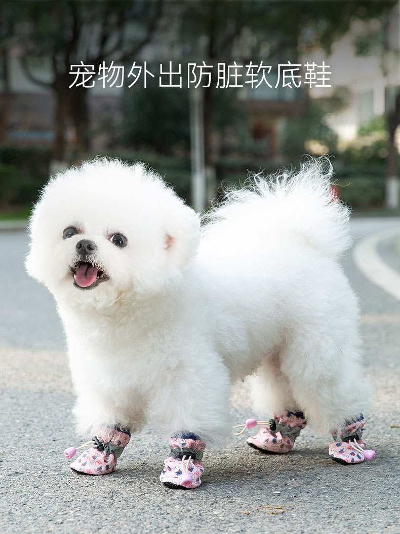 강아지용 부드러운 밑창 신발, 곰돌이 프린트, 사계절용, 중소형견용, 테디견 발보호대, 방수 및 미끄럼 방지 애완동물 신발스토어 가기
