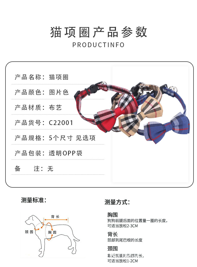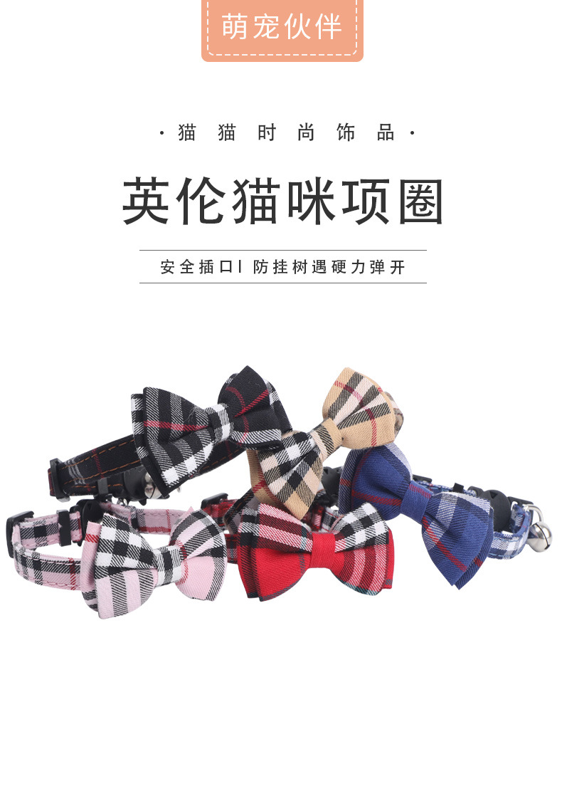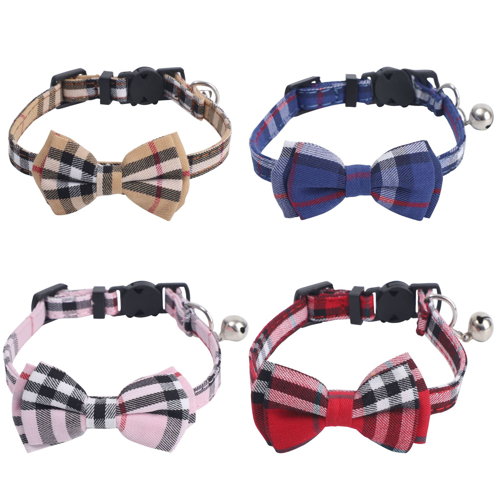 새로운 체크무늬 애완동물 목걸이, 리본 고양이 목걸이, 강아지 목걸이, 해외 인기 상품, 고양이 용품스토어 가기