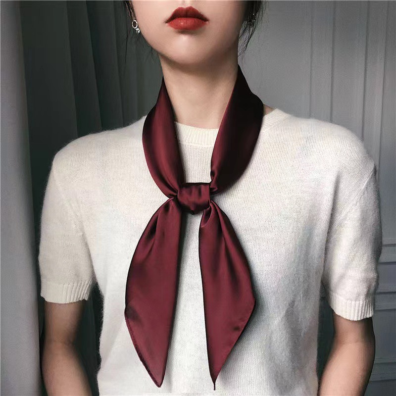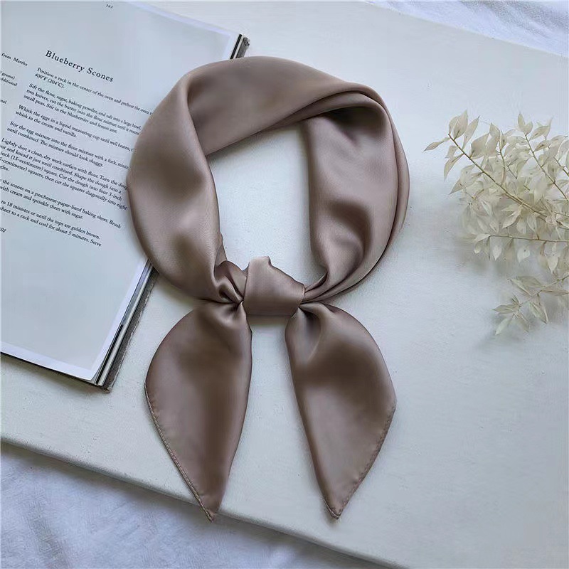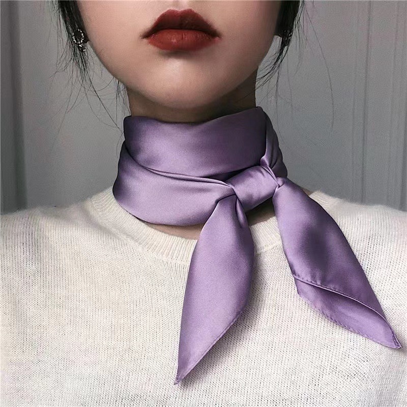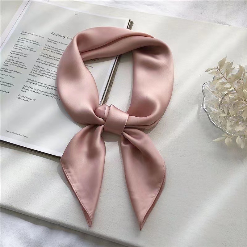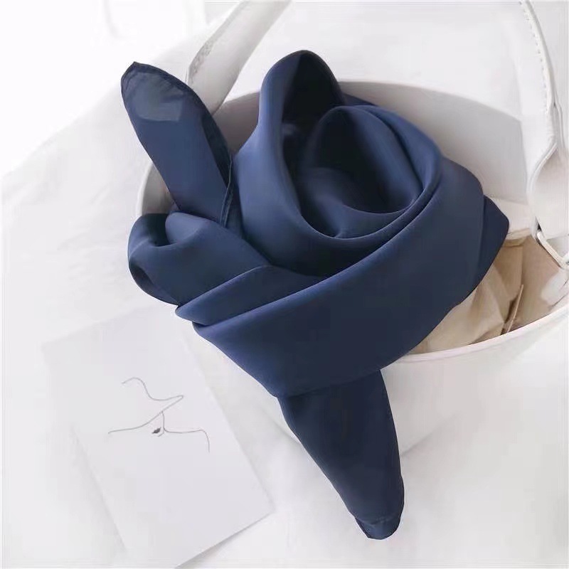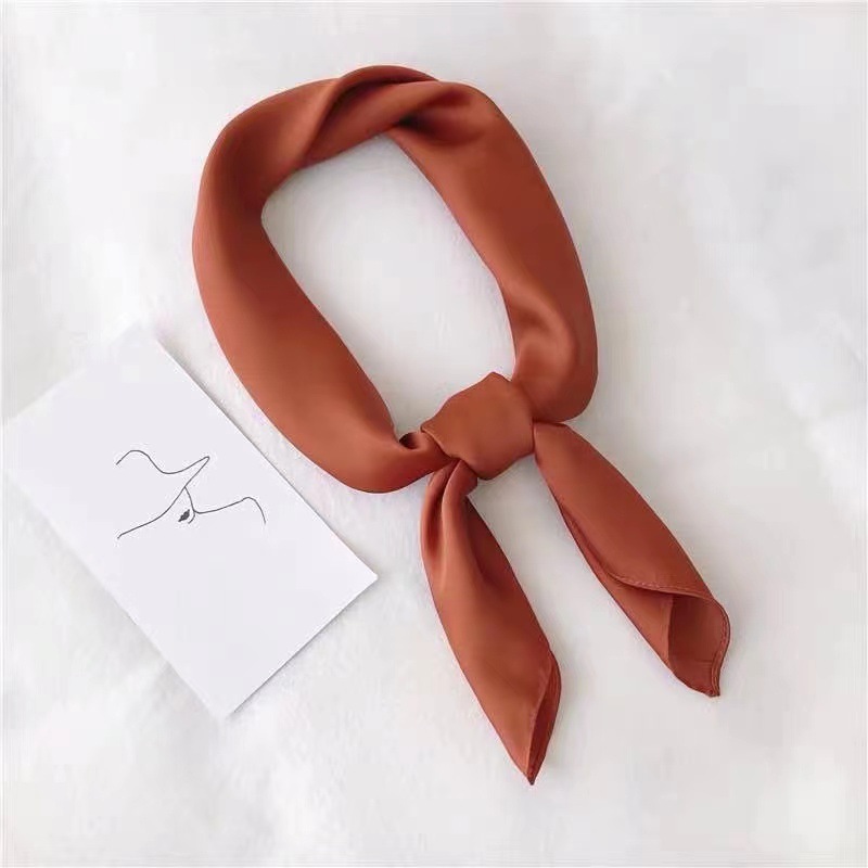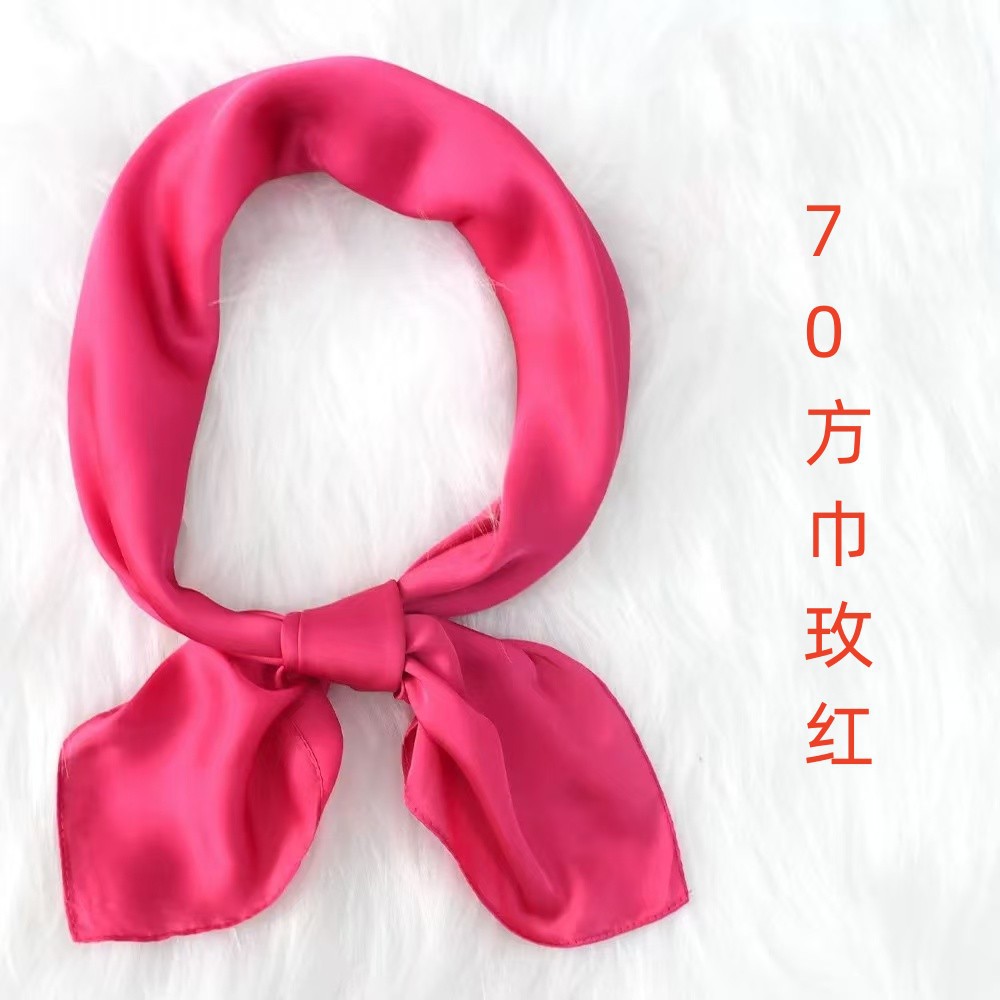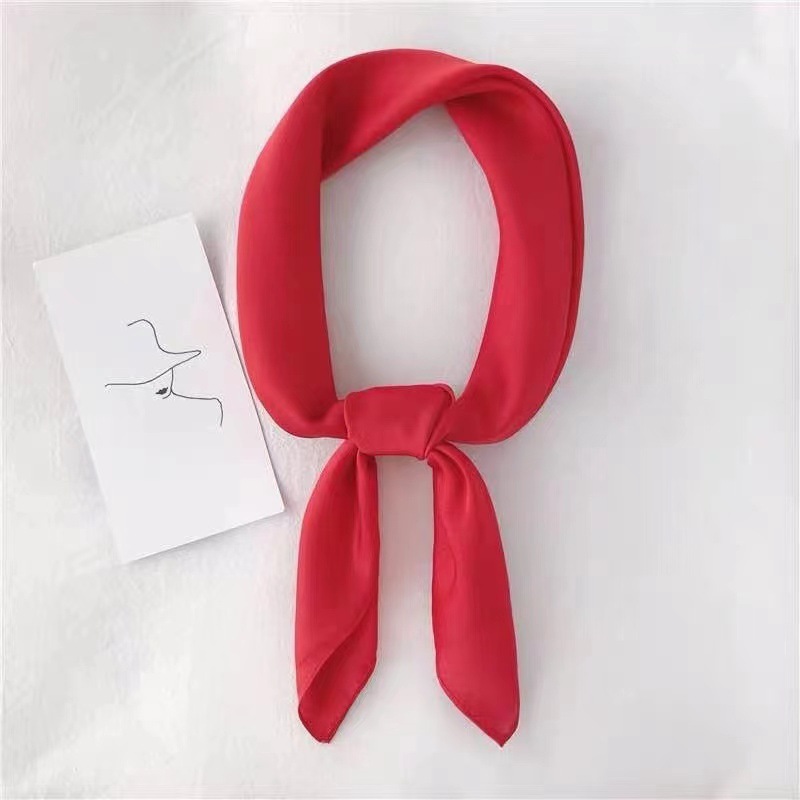 새로운 단색 실크 스카프 스퀘어 한국 시뮬레이션 실크 메쉬 빨간 스카프 크로스 보더 도매 여름 귀여운 이우 작은 광장