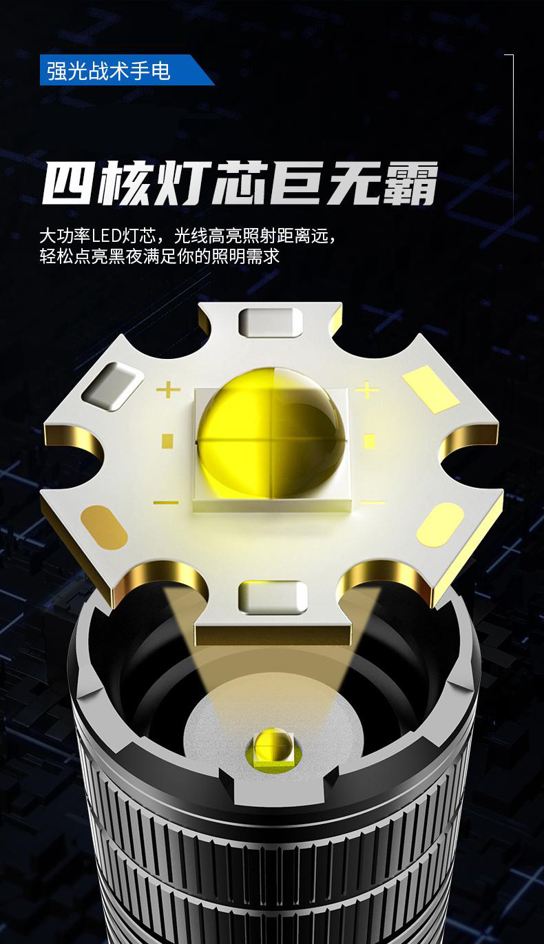 • 백색 레이저 램프 비드-C형 충전-리튬 + 출력 + 전기 디스플레이 내장 3 개