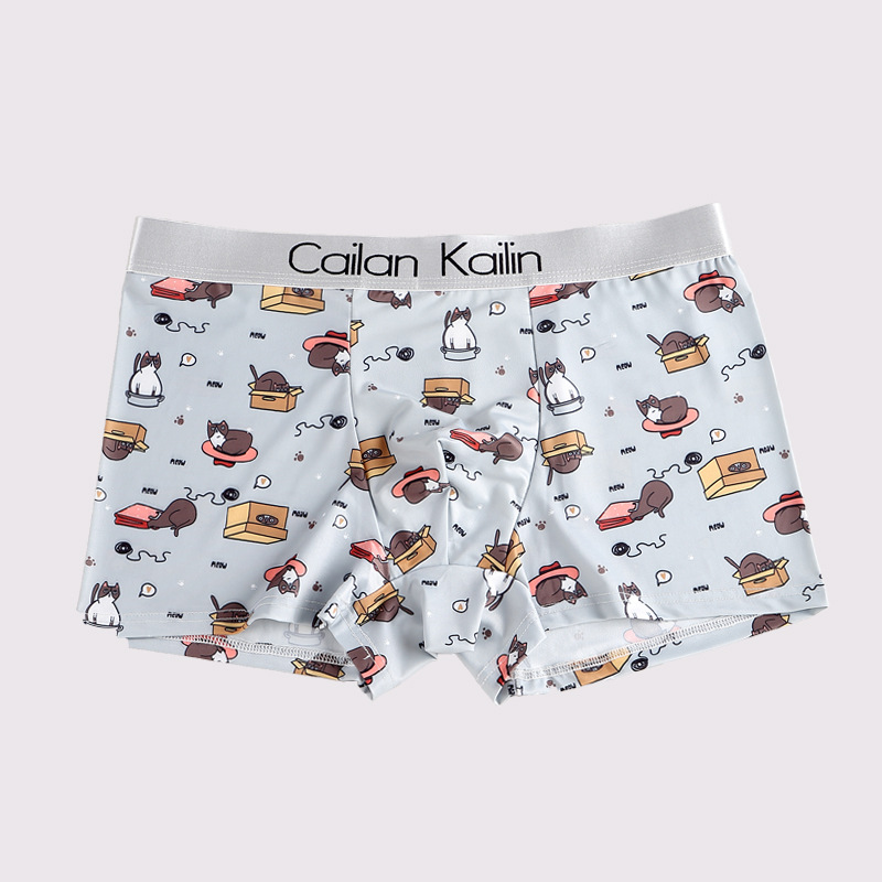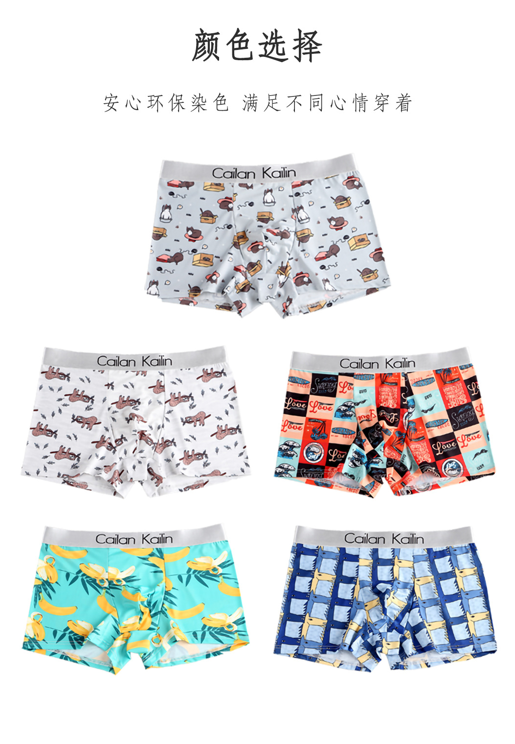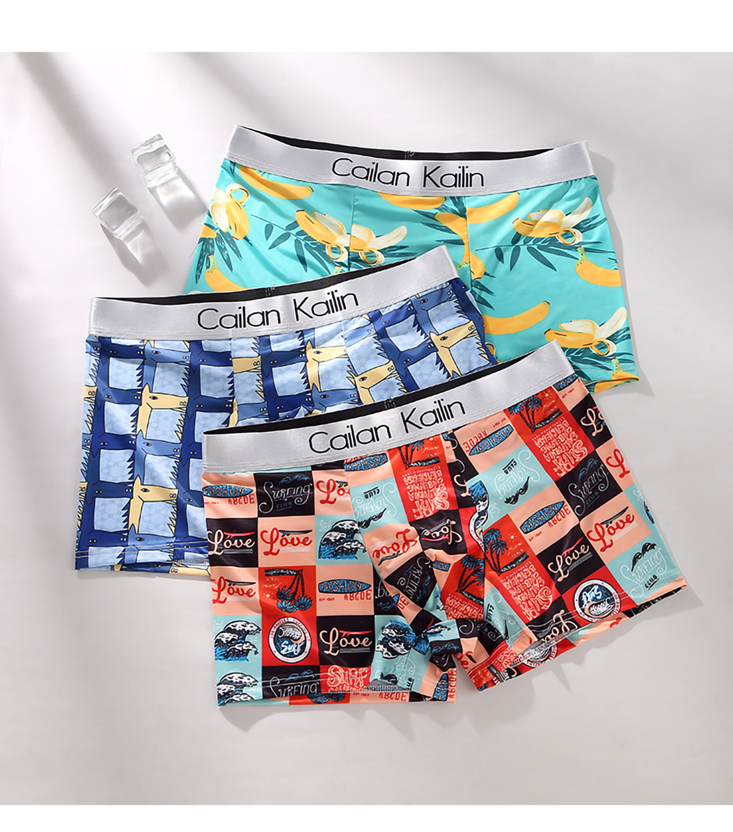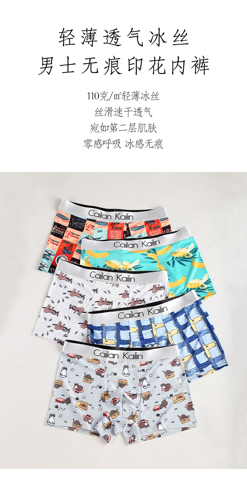 여름 새로운 울트라 씬 아이스 실크 남성 속옷 허리 인쇄 통기성 복서 학생 편안한 남성 반바지 도매스토어 가기