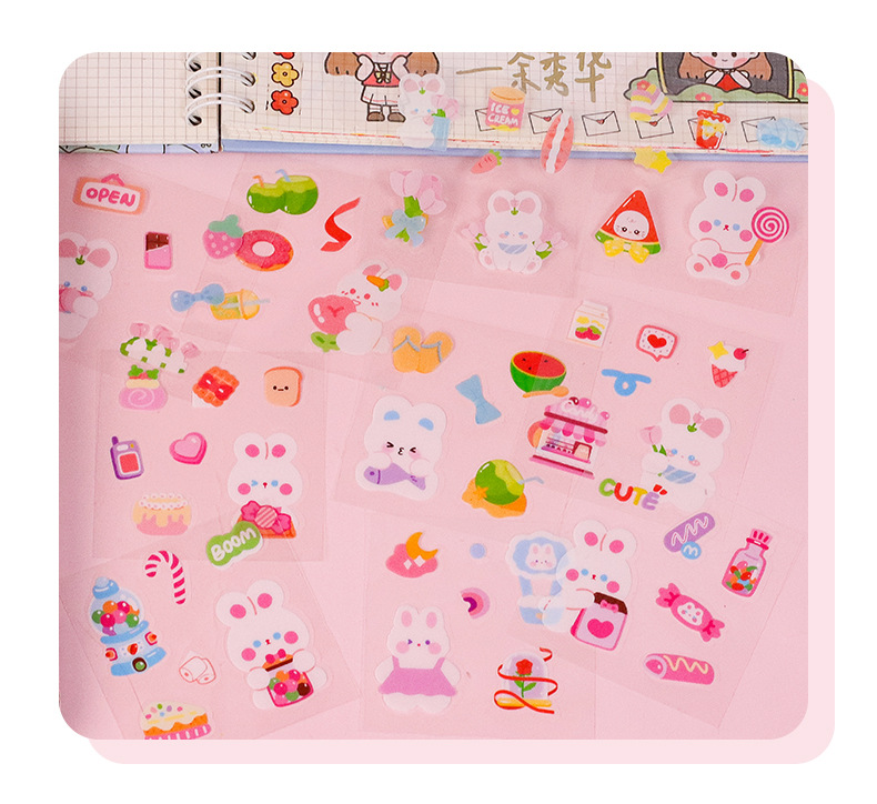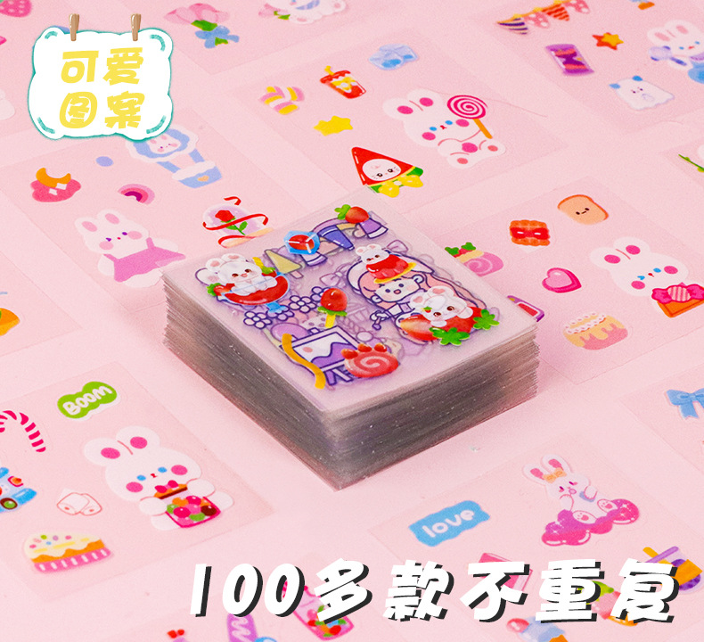 100 반복되지 않는 애완 동물 스티커 만화 귀여운 소녀 DIY 손 계정 스티커 장식 재료 일본어와 한국어 스타일스토어 가기