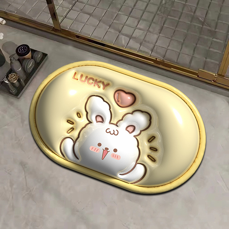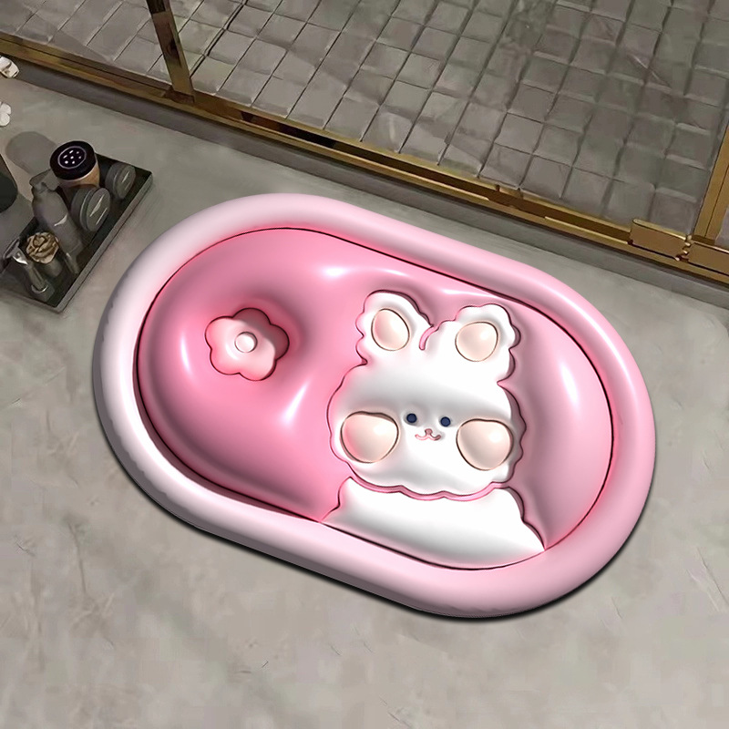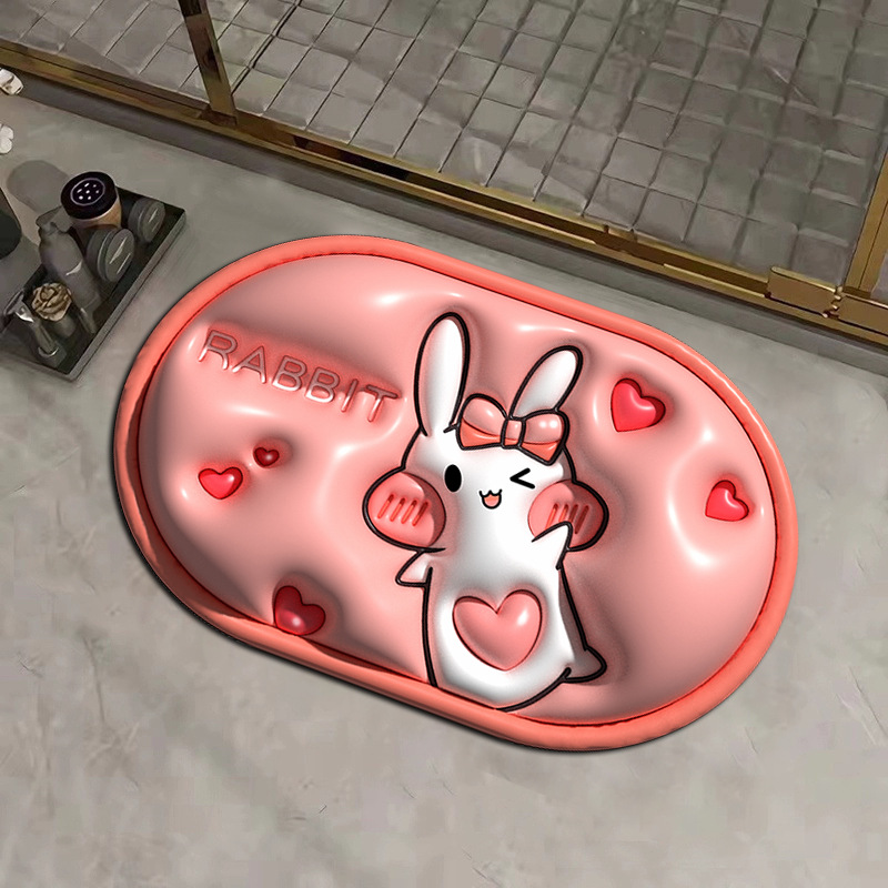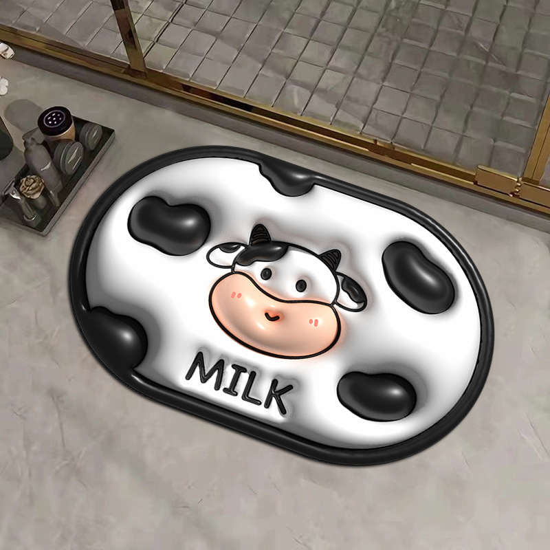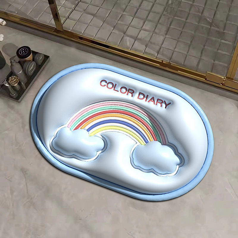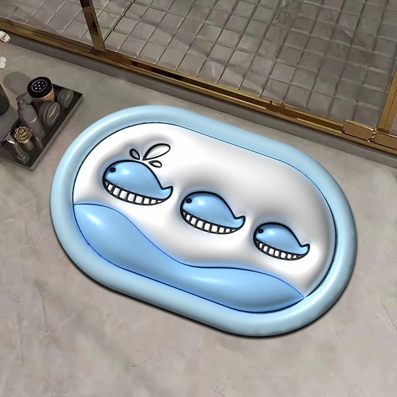 작은 신선한 3D 시각적 확장 규조 진흙 흡수 매트 욕실 매트 화장실 문 내마모성 발 매트 재고 세대 머리