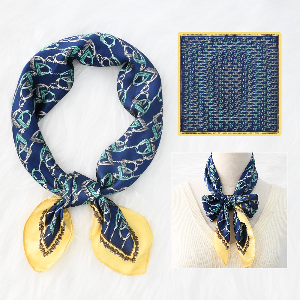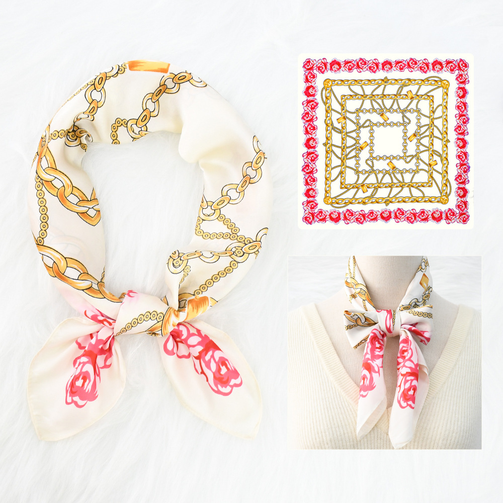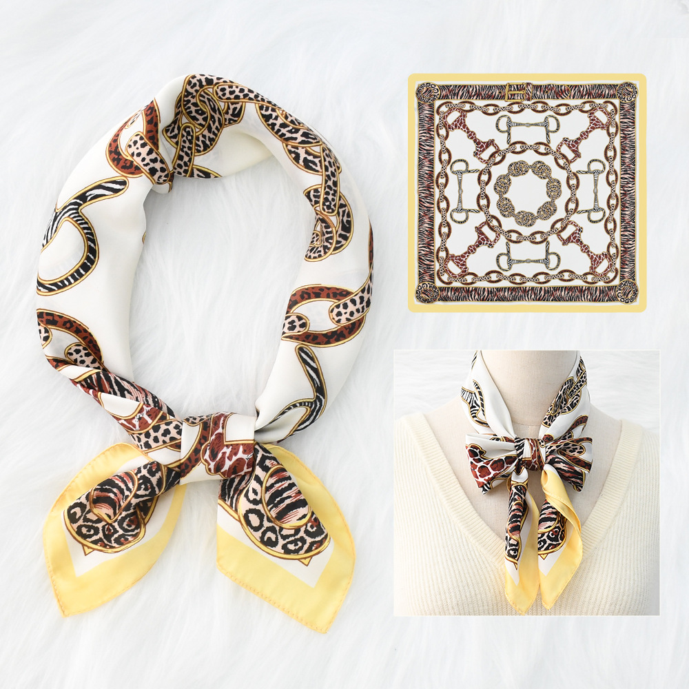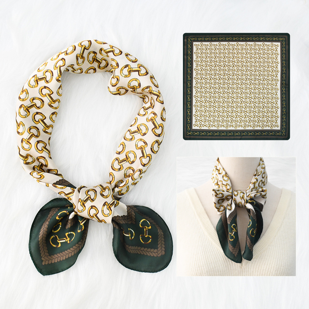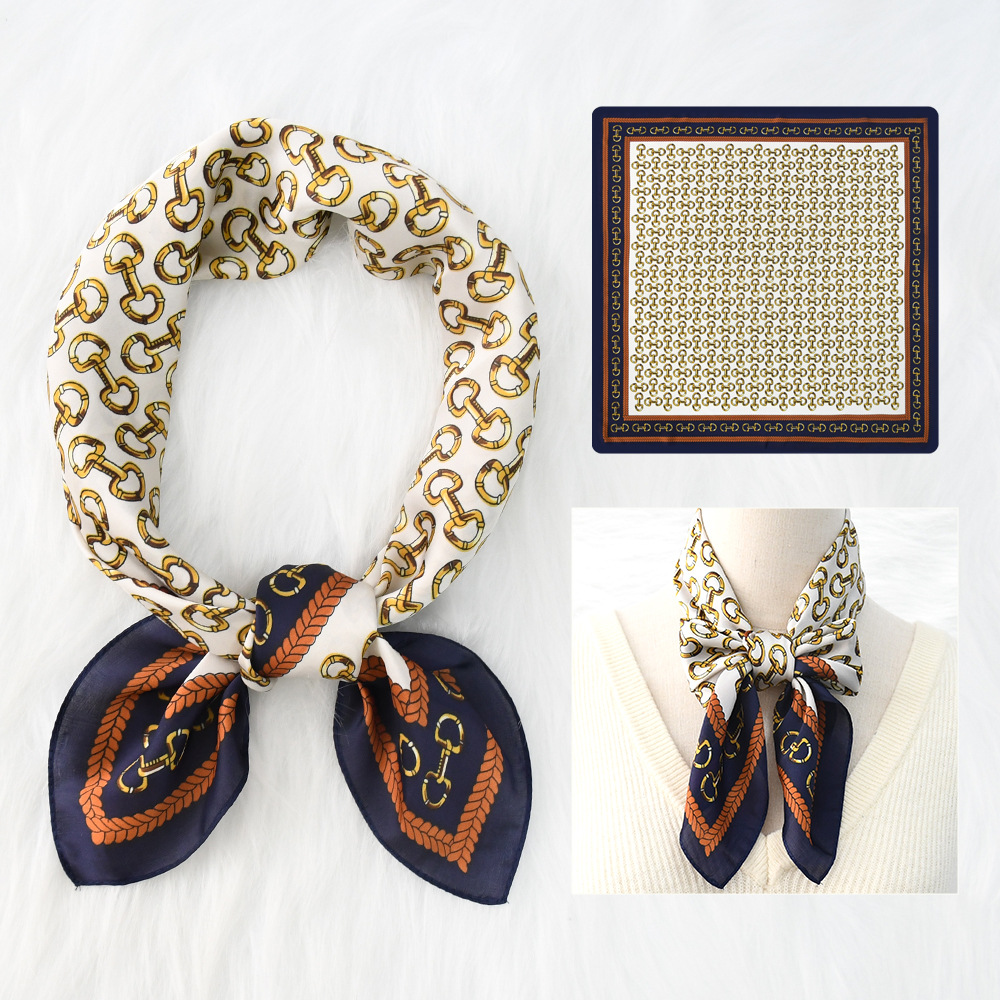 새로운 크로스 보더 70*70 체인 말 복고풍 실크 스카프 심플 라이트 럭셔리 모조 실크 스퀘어 스카프 작은 스카프 도매