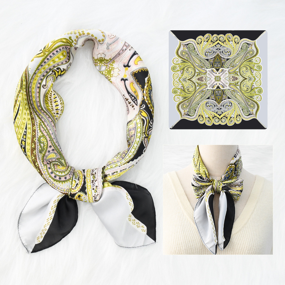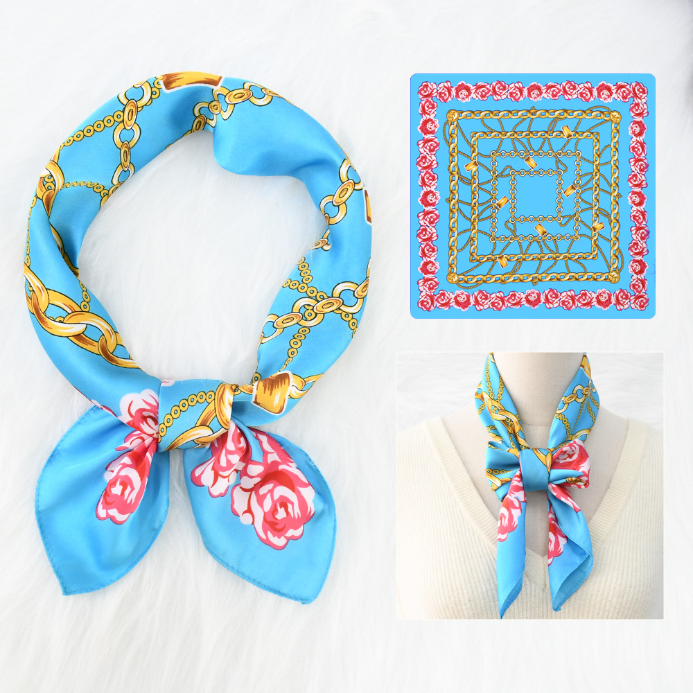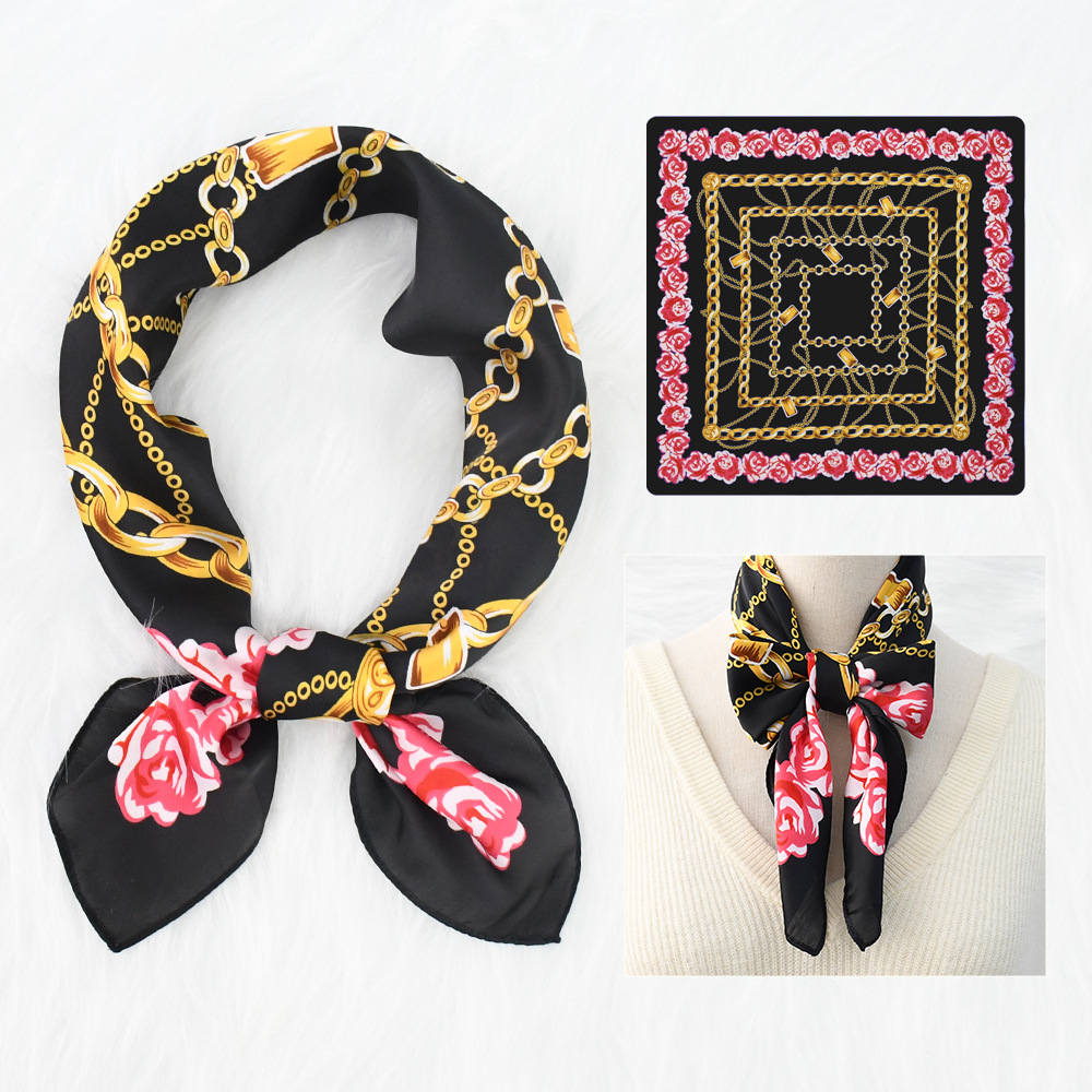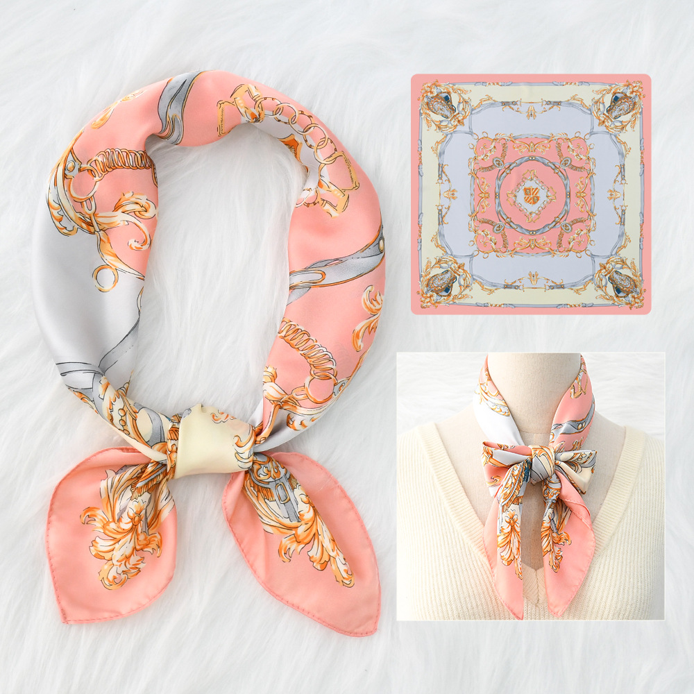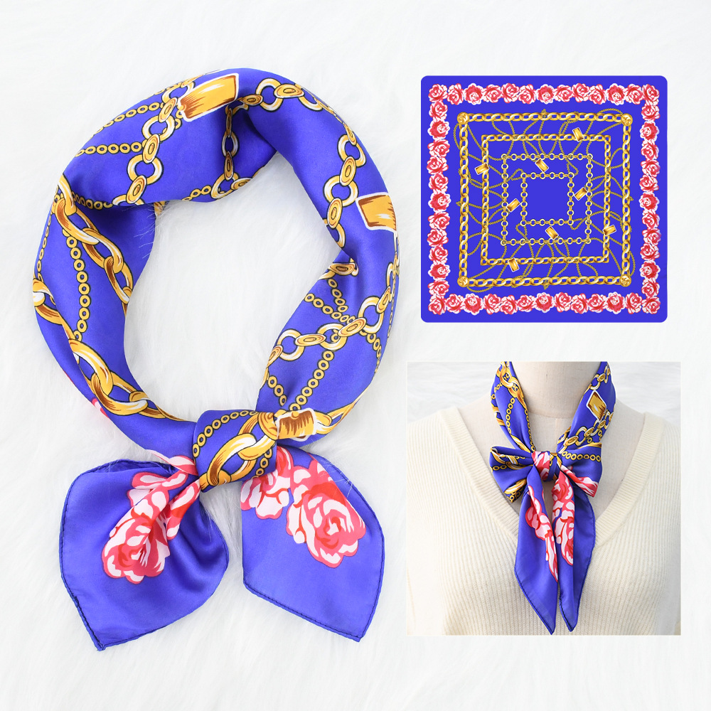 새로운 크로스 보더 70*70 체인 말 복고풍 실크 스카프 심플 라이트 럭셔리 모조 실크 스퀘어 스카프 작은 스카프 도매