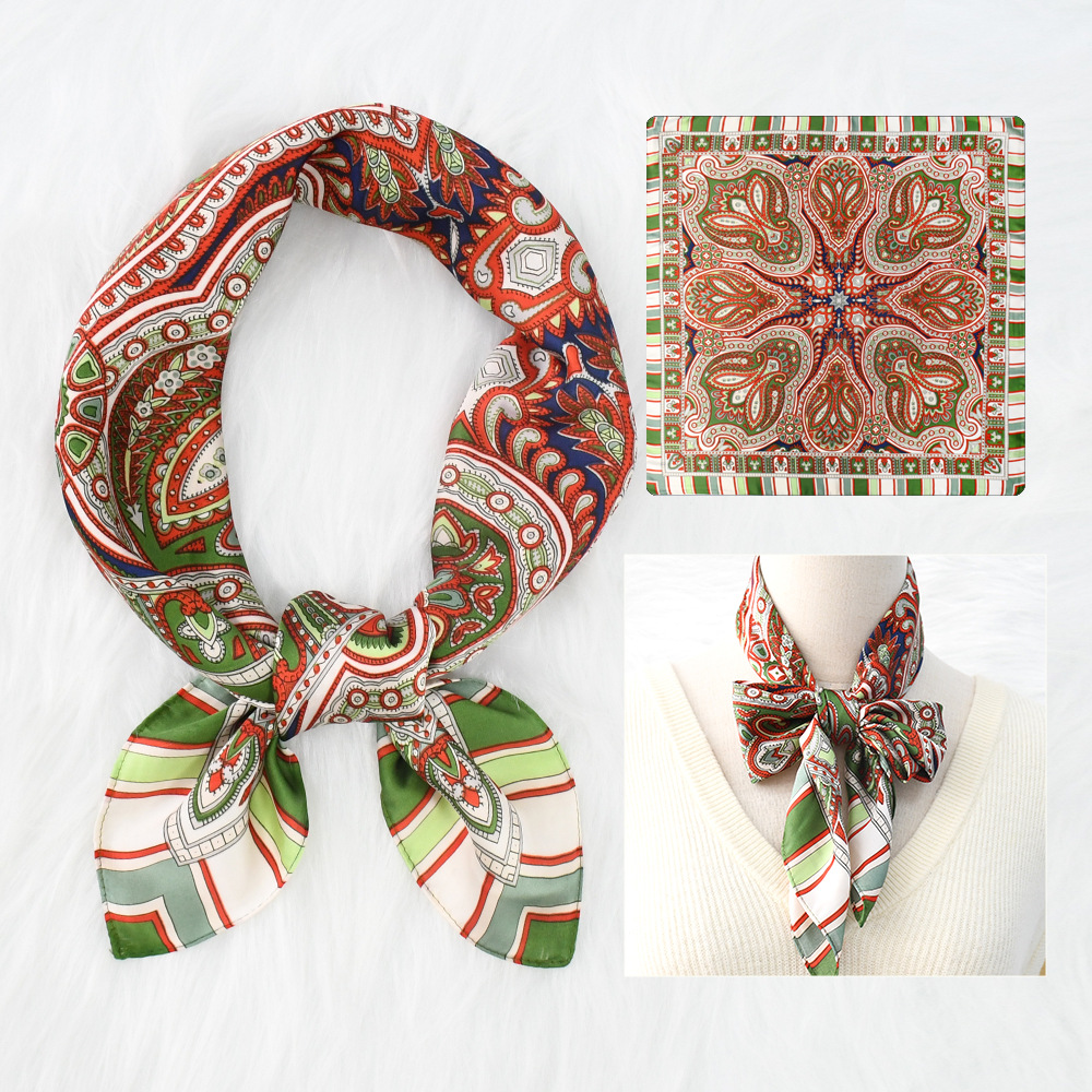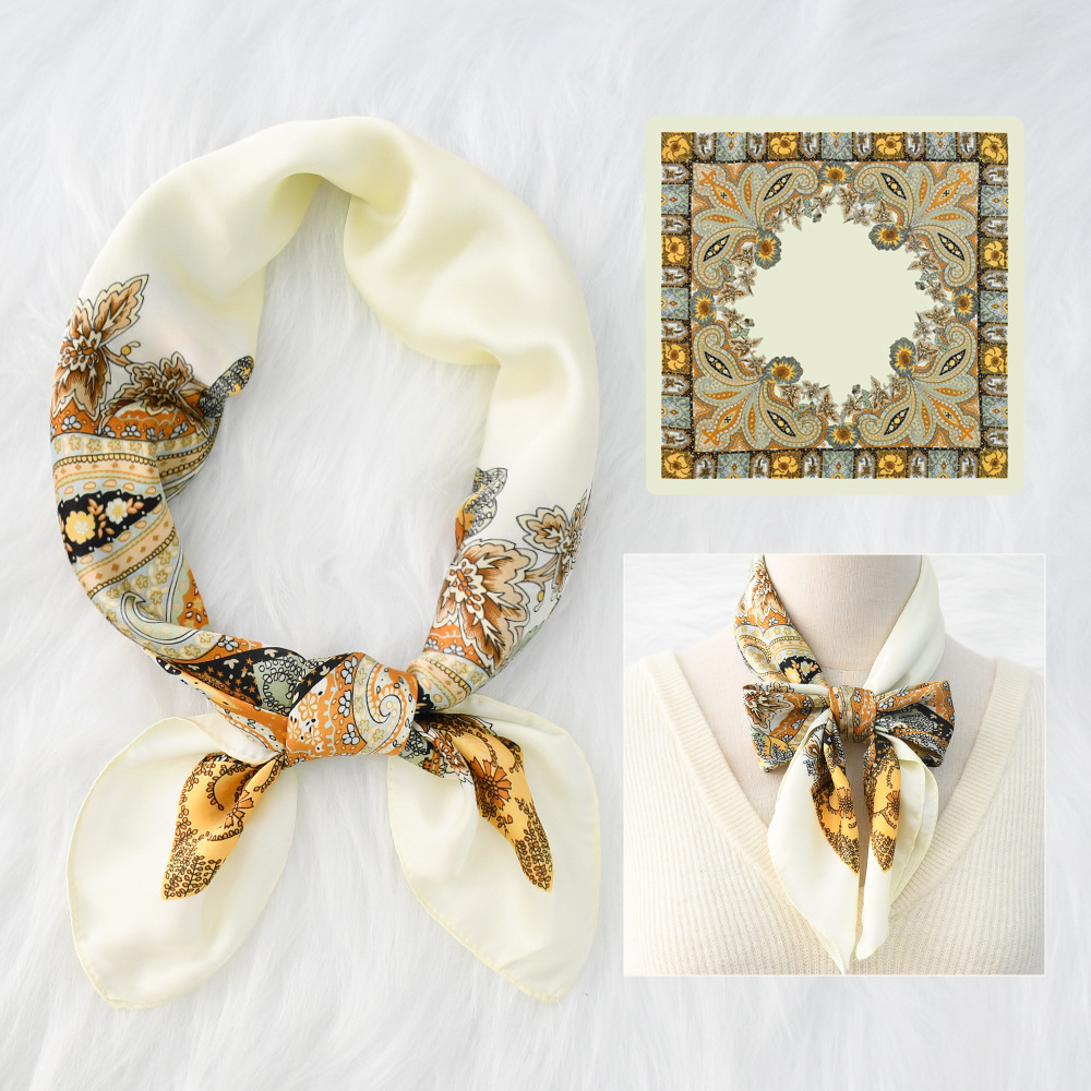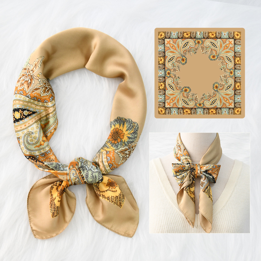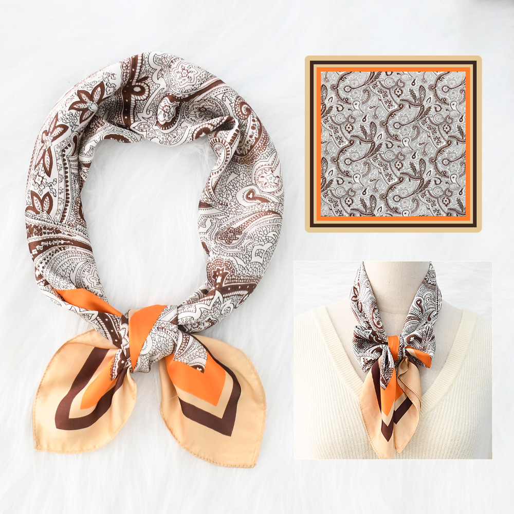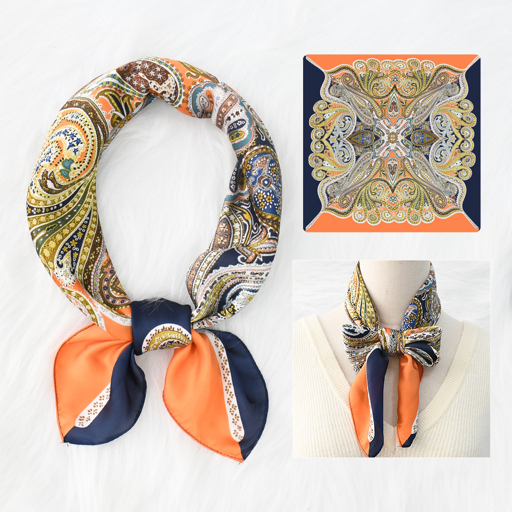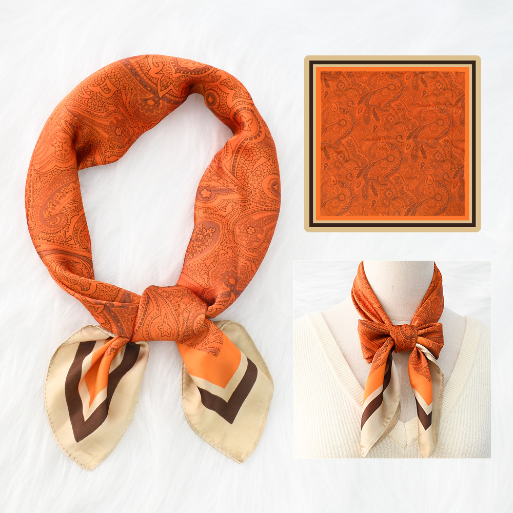 새로운 크로스 보더 70*70 체인 말 복고풍 실크 스카프 심플 라이트 럭셔리 모조 실크 스퀘어 스카프 작은 스카프 도매
