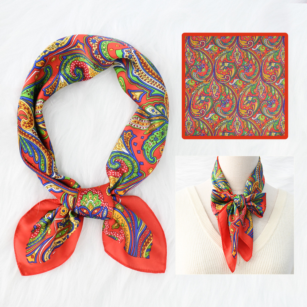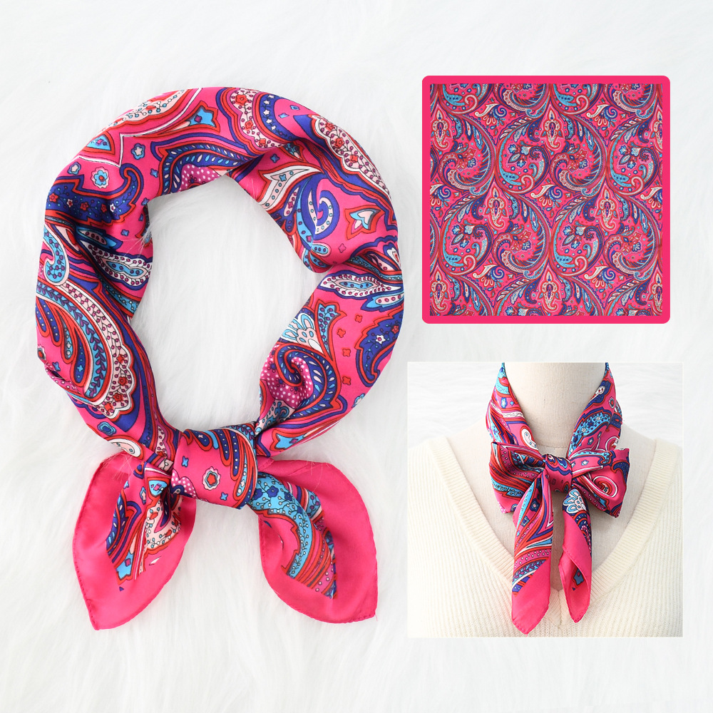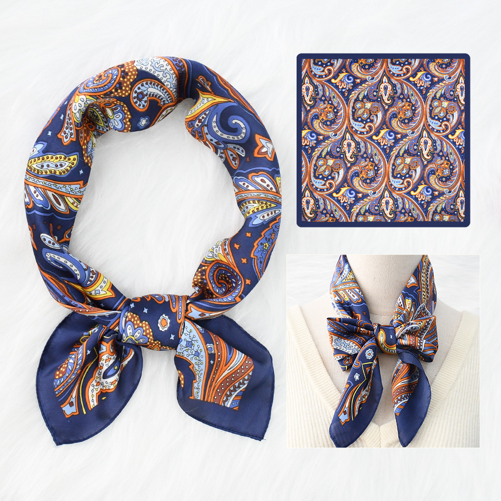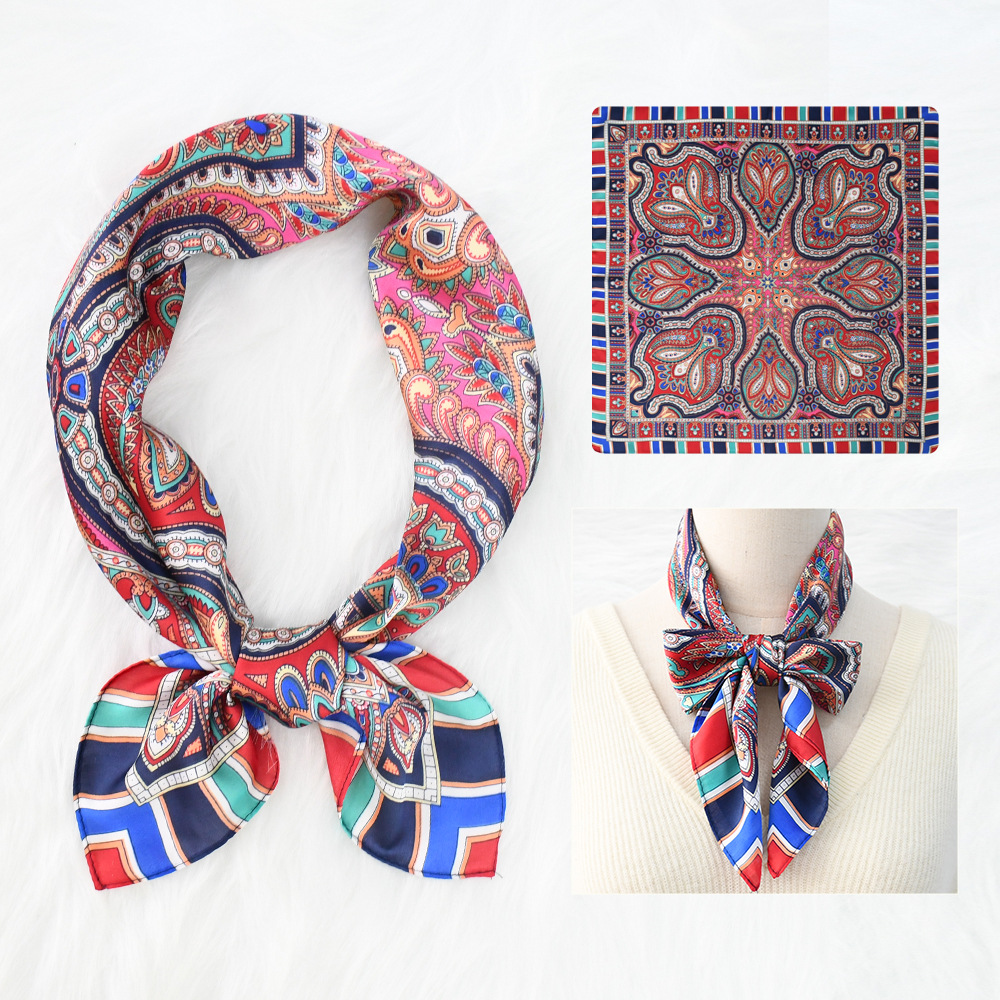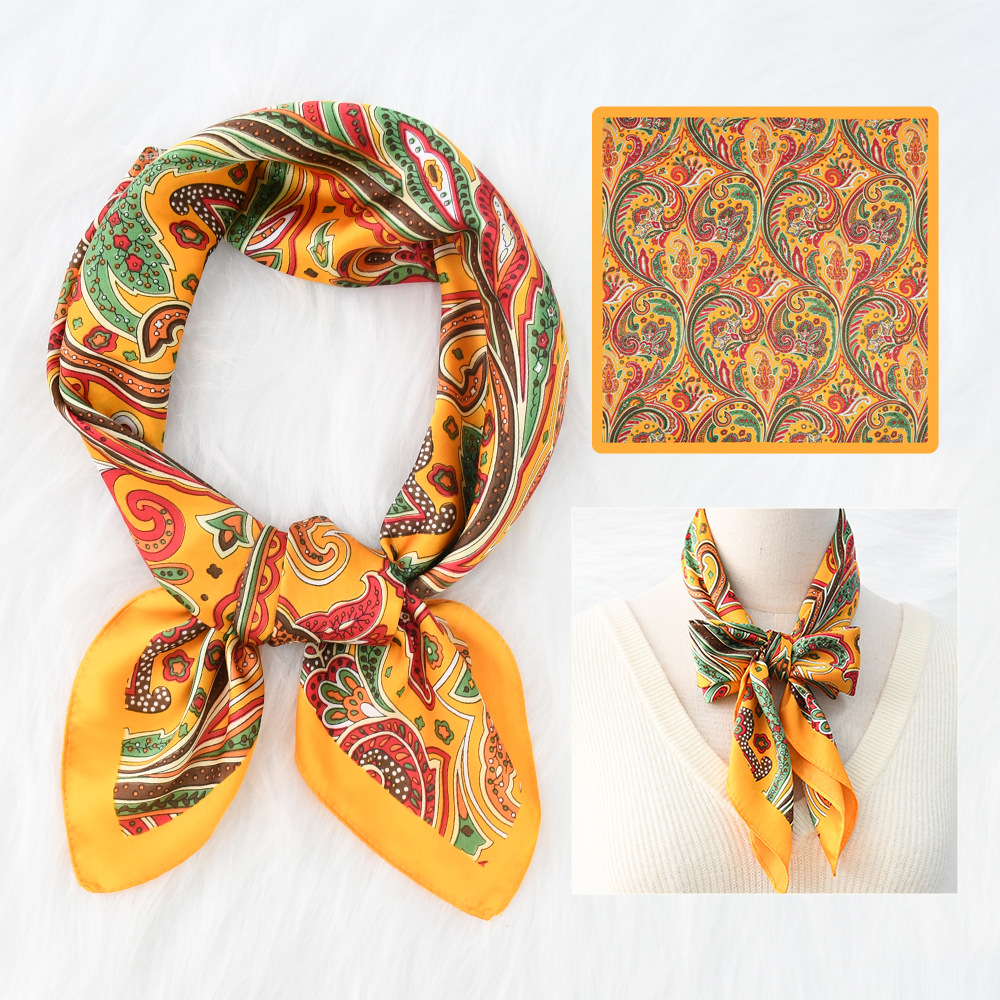 새로운 크로스 보더 70*70 체인 말 복고풍 실크 스카프 심플 라이트 럭셔리 모조 실크 스퀘어 스카프 작은 스카프 도매