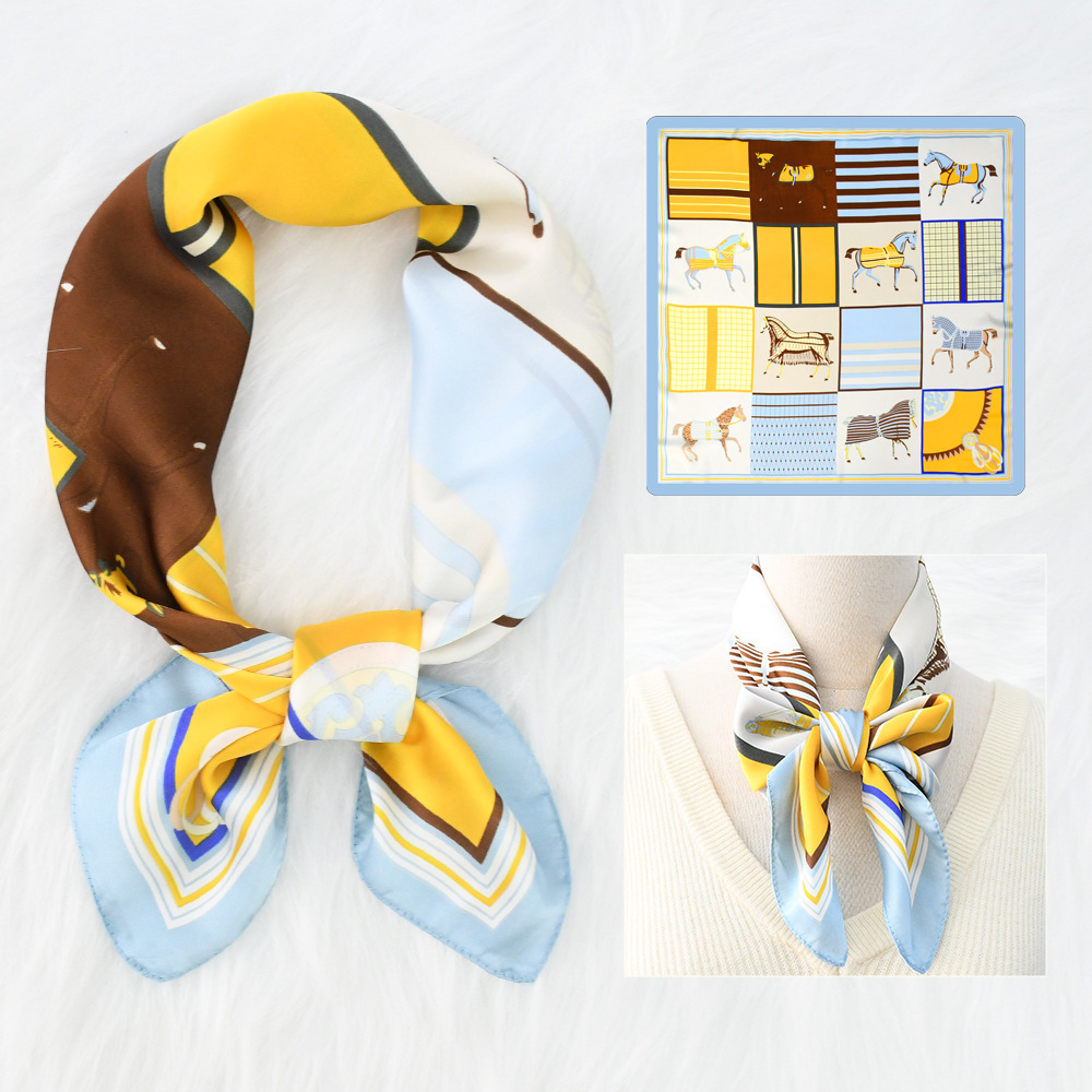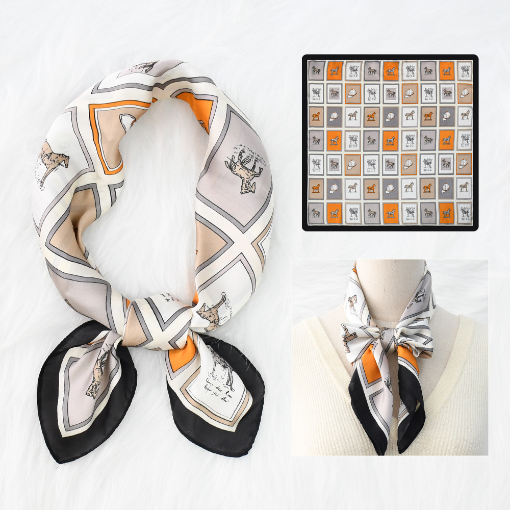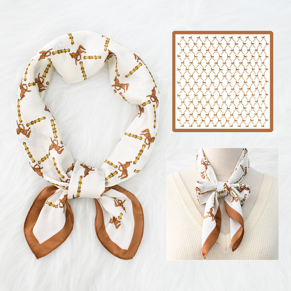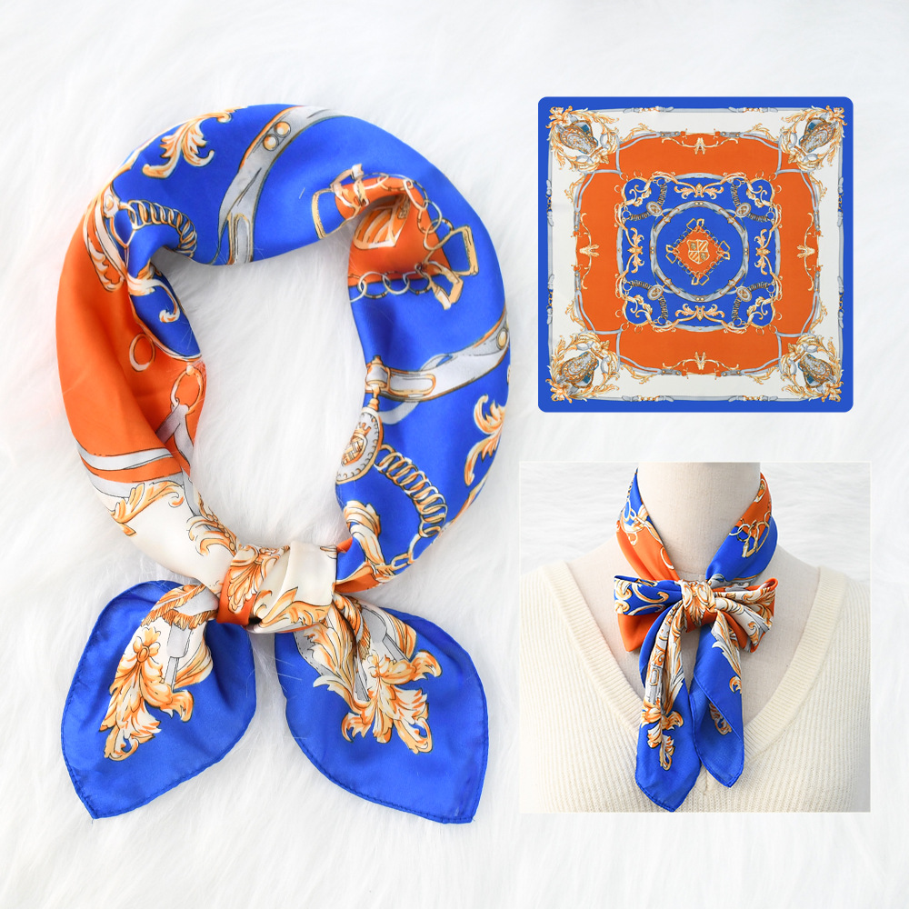 새로운 크로스 보더 70*70 체인 말 복고풍 실크 스카프 심플 라이트 럭셔리 모조 실크 스퀘어 스카프 작은 스카프 도매스토어 가기