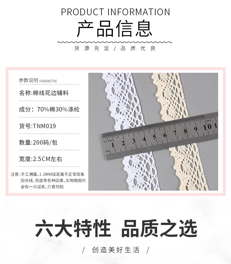 • TNM019*2.8cm 면 레이스 (200야드부터 주문 가능)*흰색