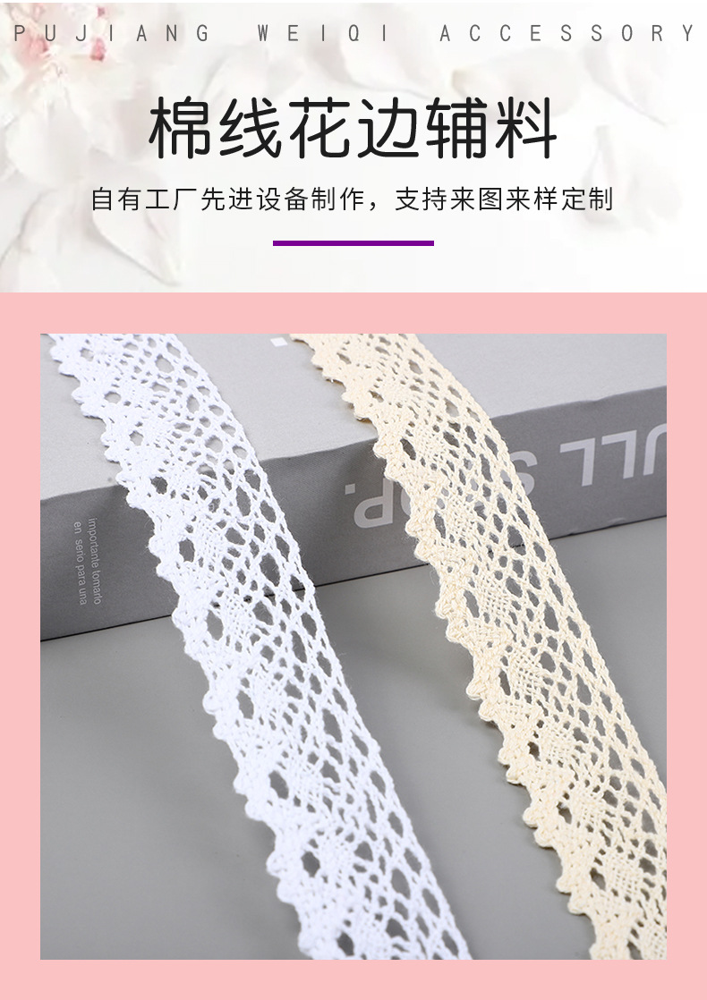 레이스 2.8cm 레이스 홈텍스타일 의류 부자재 면사 레이스 작은 해바라기 면사 뜨개질 레이스 019