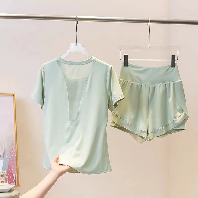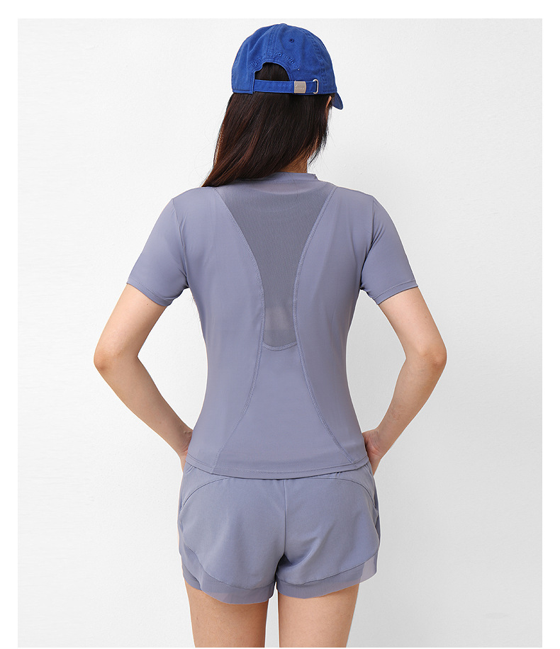 여성용 요가복 세트 러닝 트레이닝 타이트 스포츠 탑 메쉬 속건 피트니스 의류 투피스 디자인 고탄력