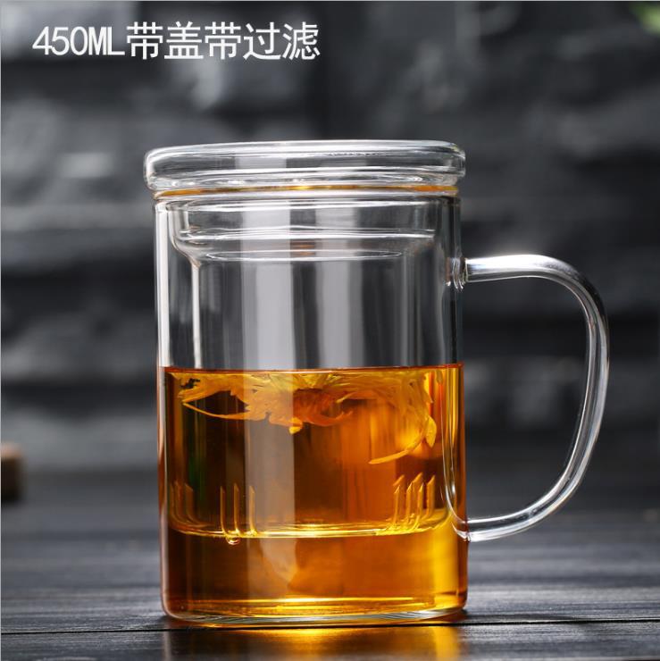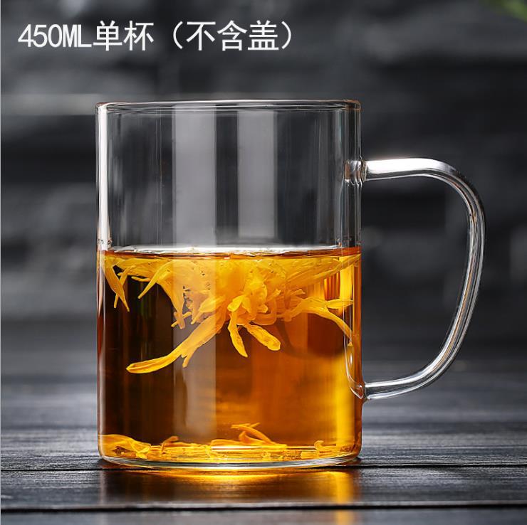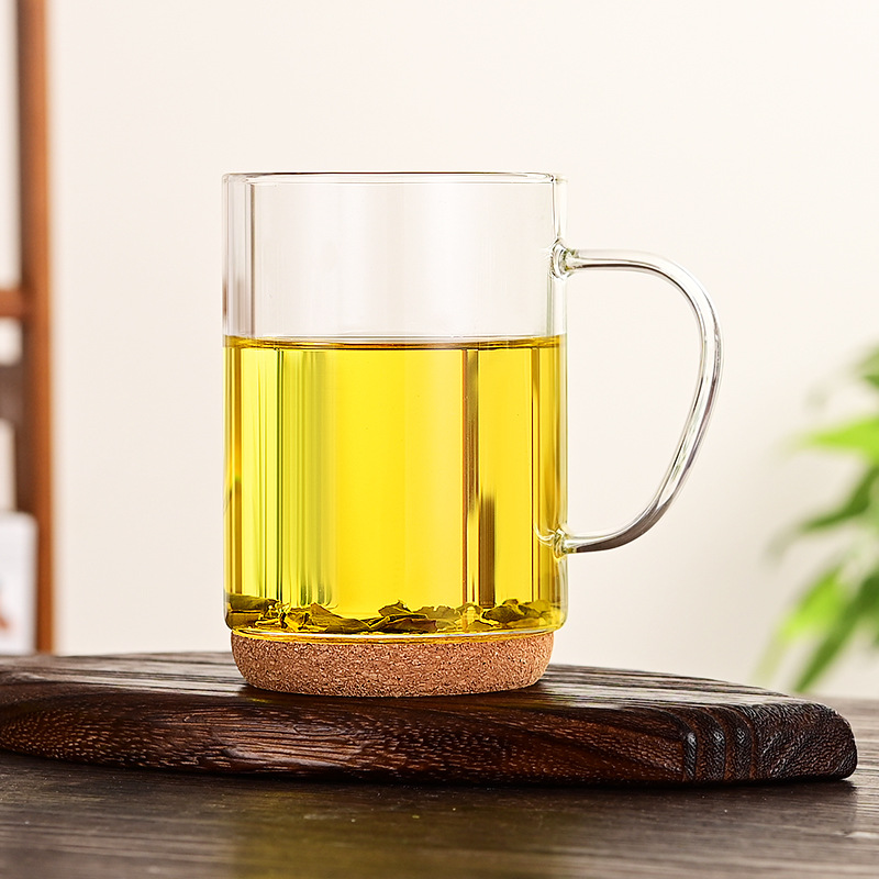 유리 찻잔 사무실 차 물 분리 3피스 세트 가정용 나무 받침대 꽃차 티컵 고붕규산 유리 손잡이 포함
